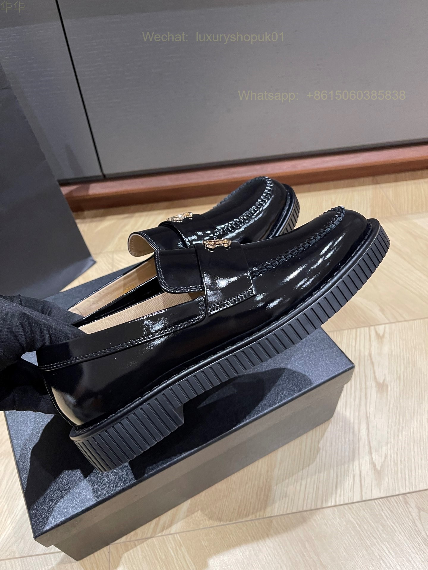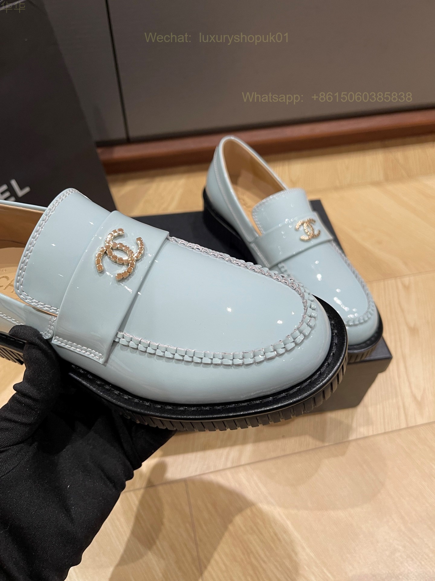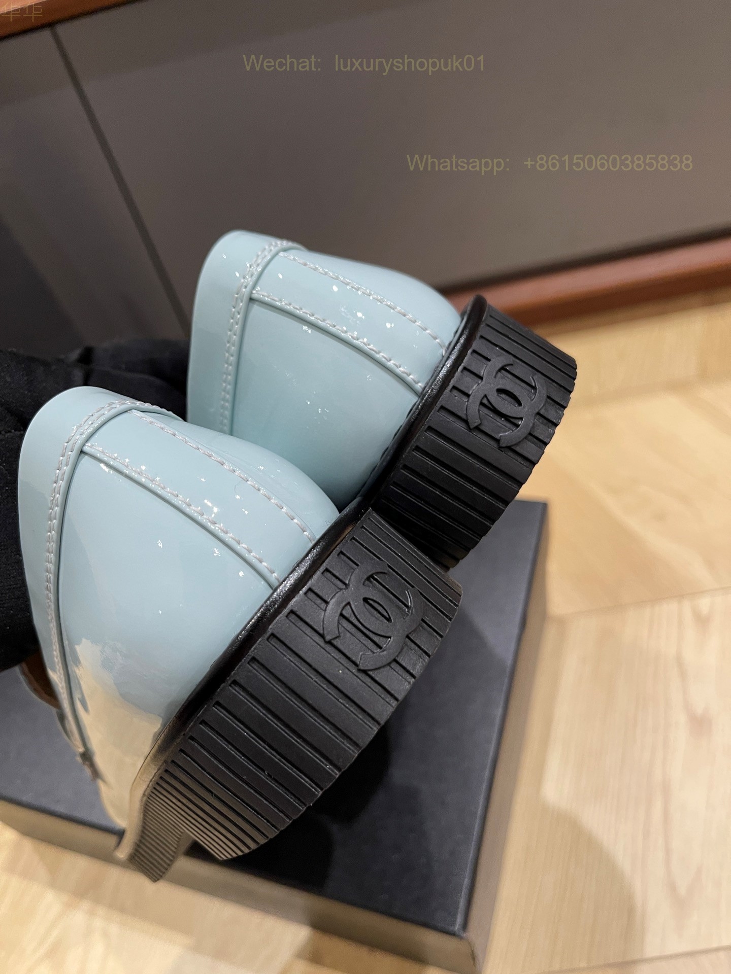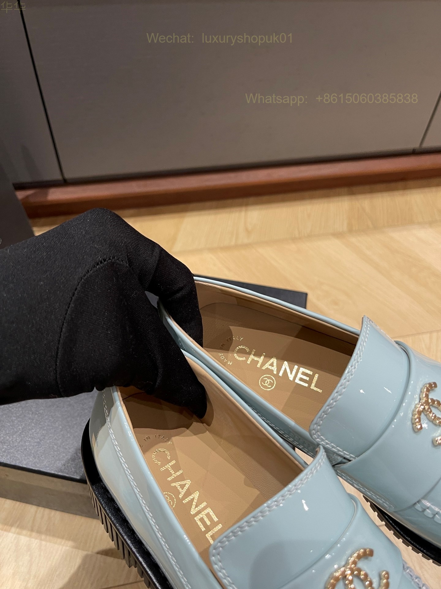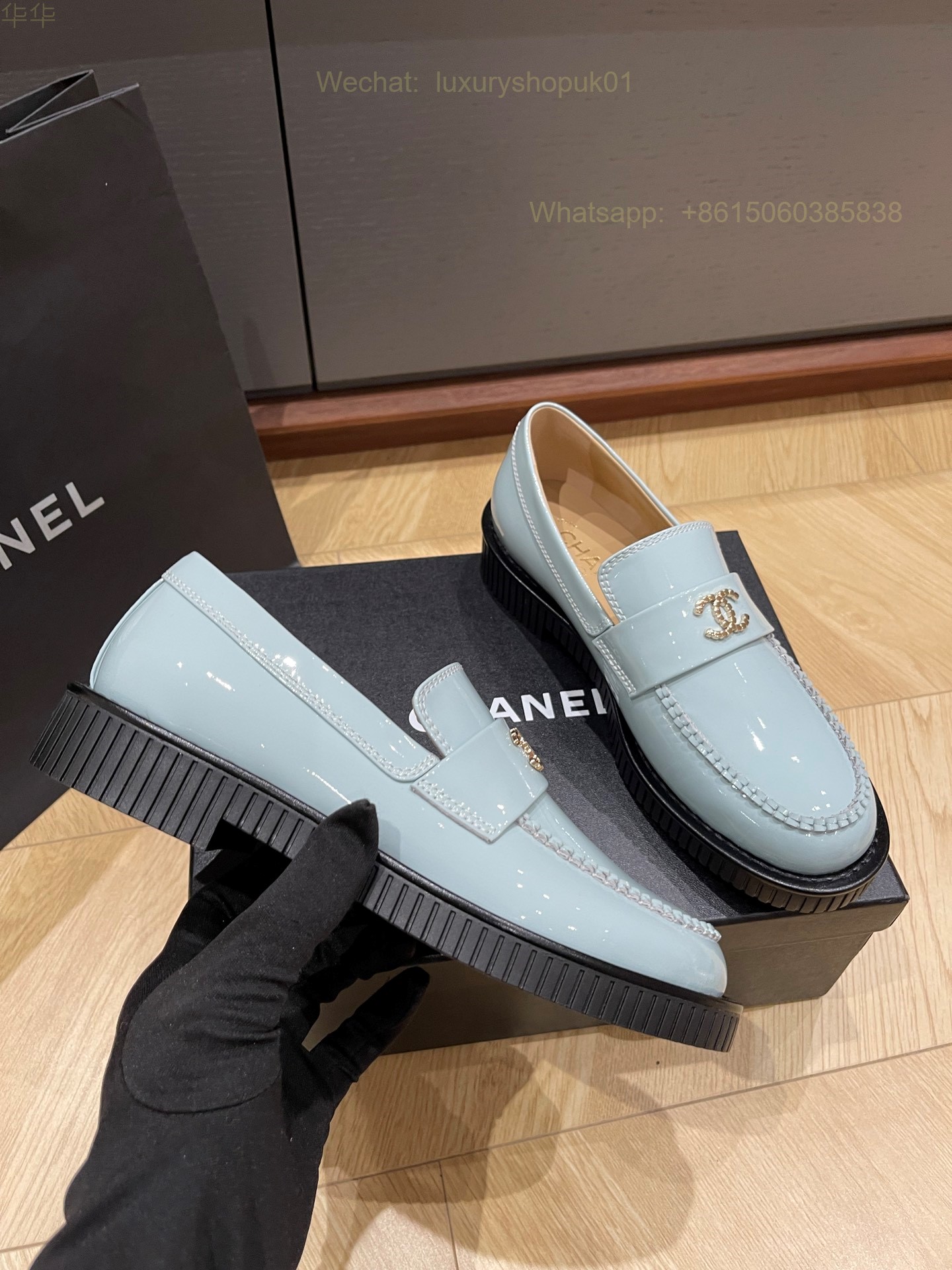 Women Chanel Loafers Patent Leather CC Logo Flats Shoes