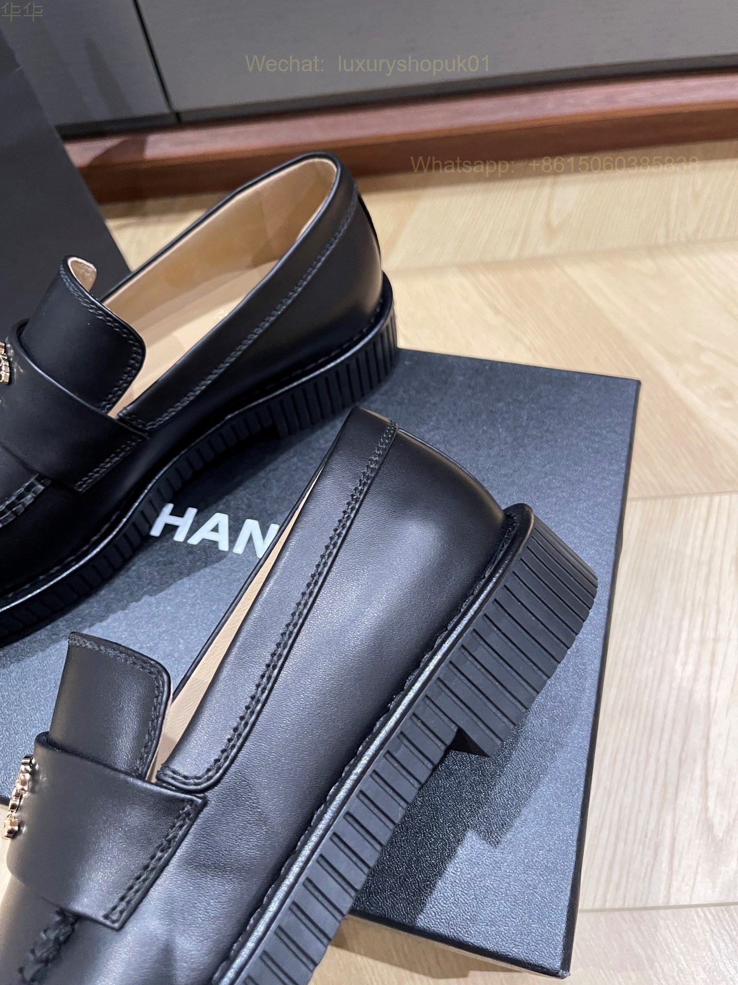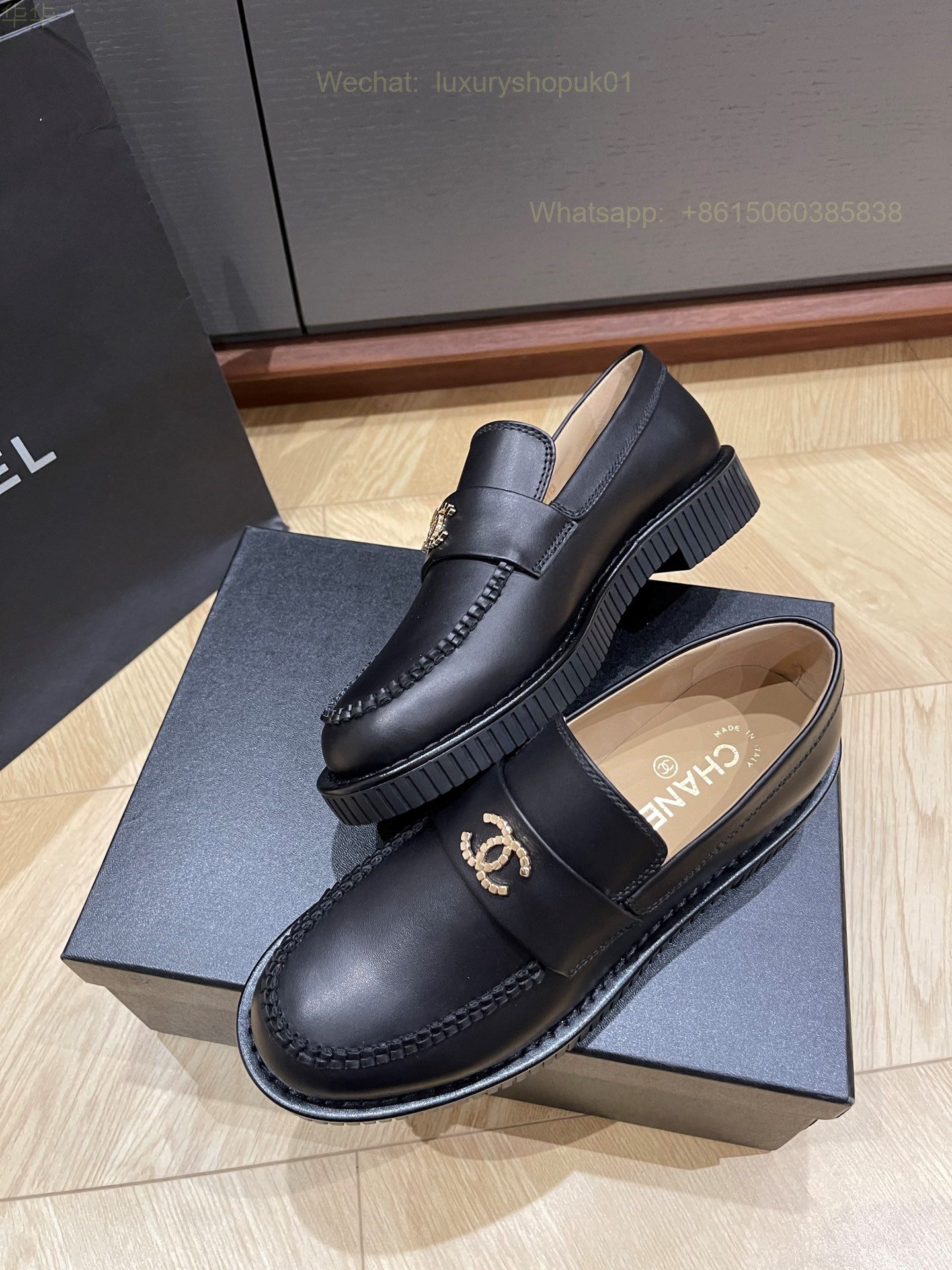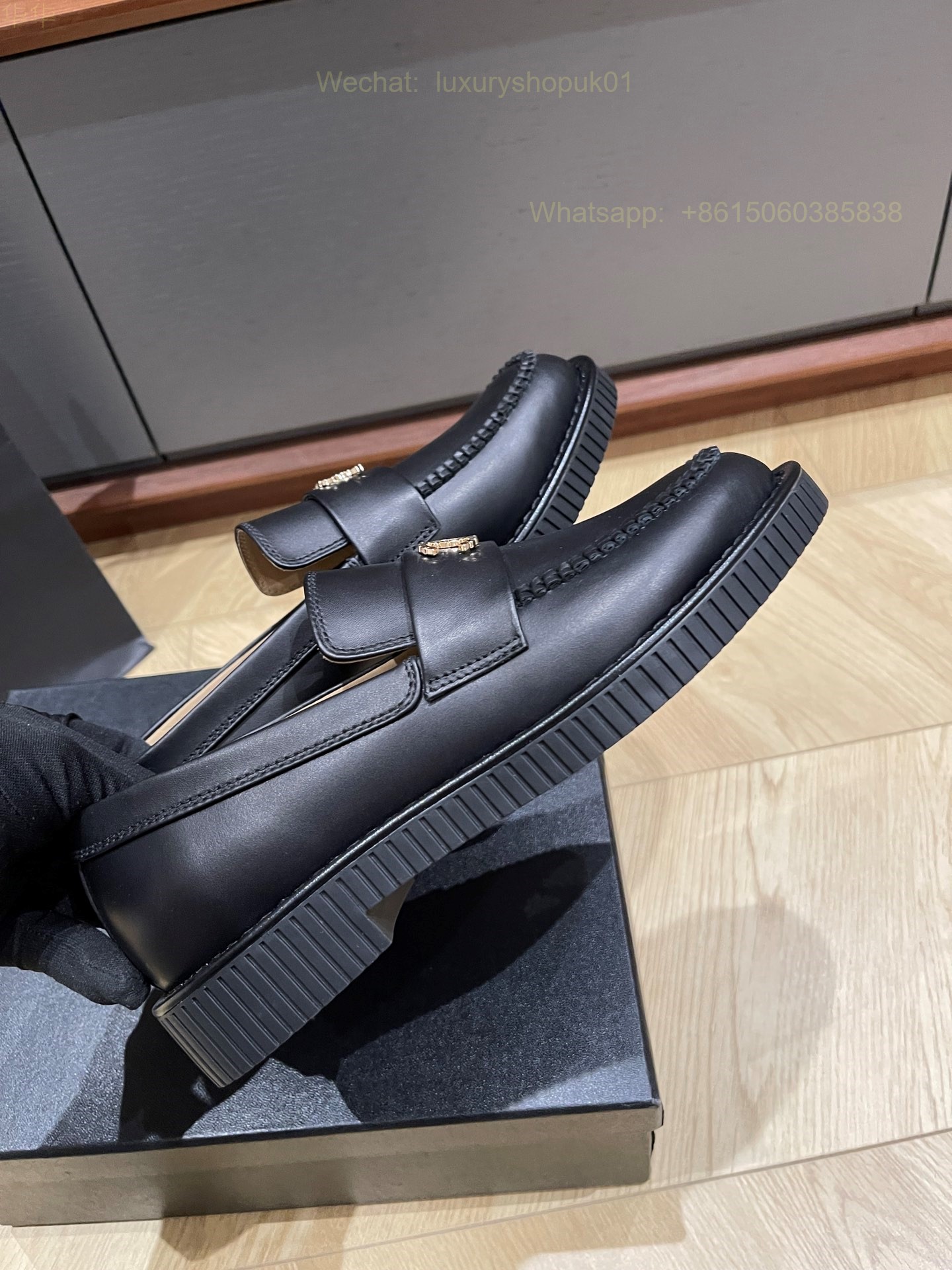 Women Chanel Loafers Leather CC Logo Flats Shoes