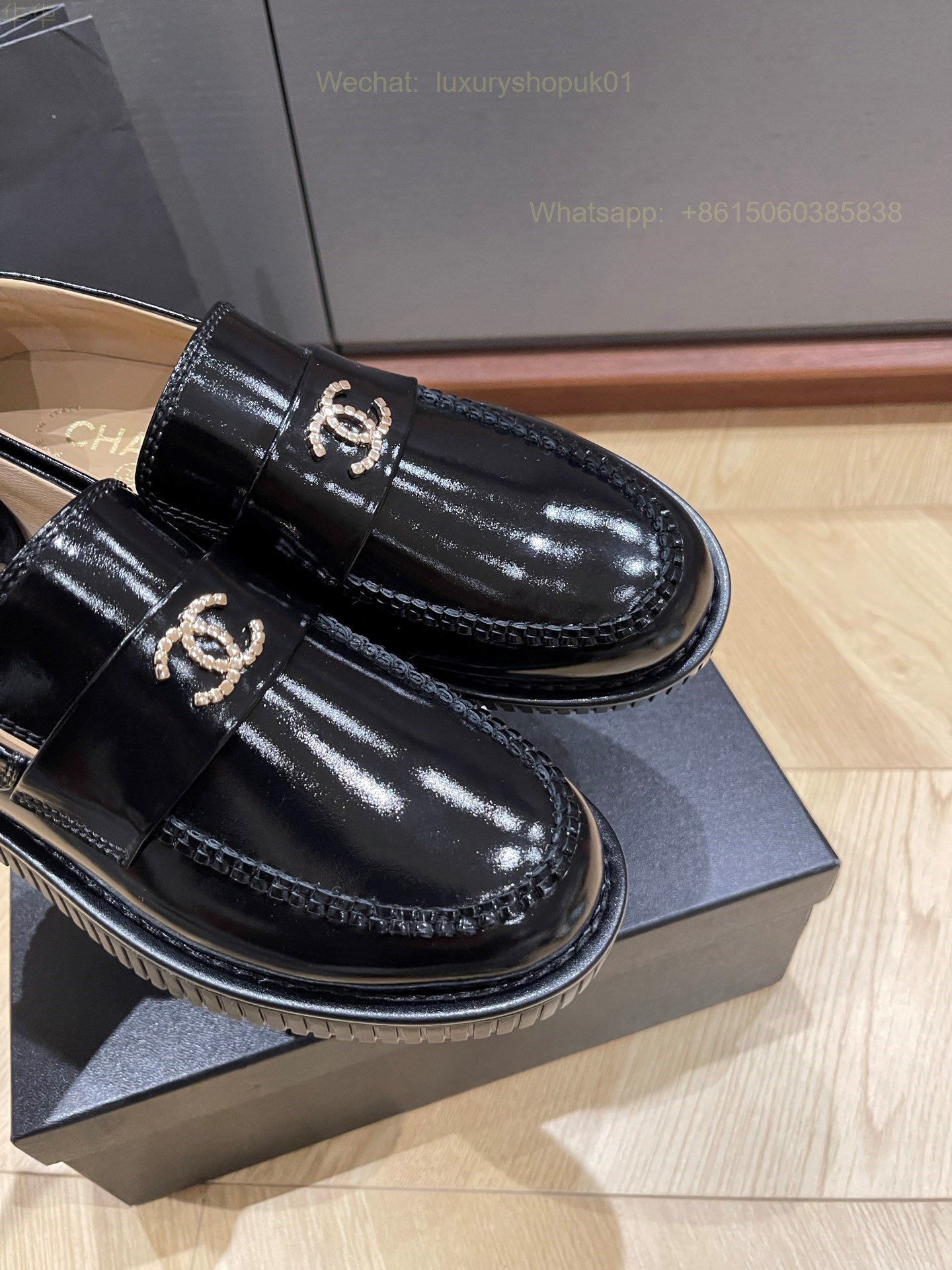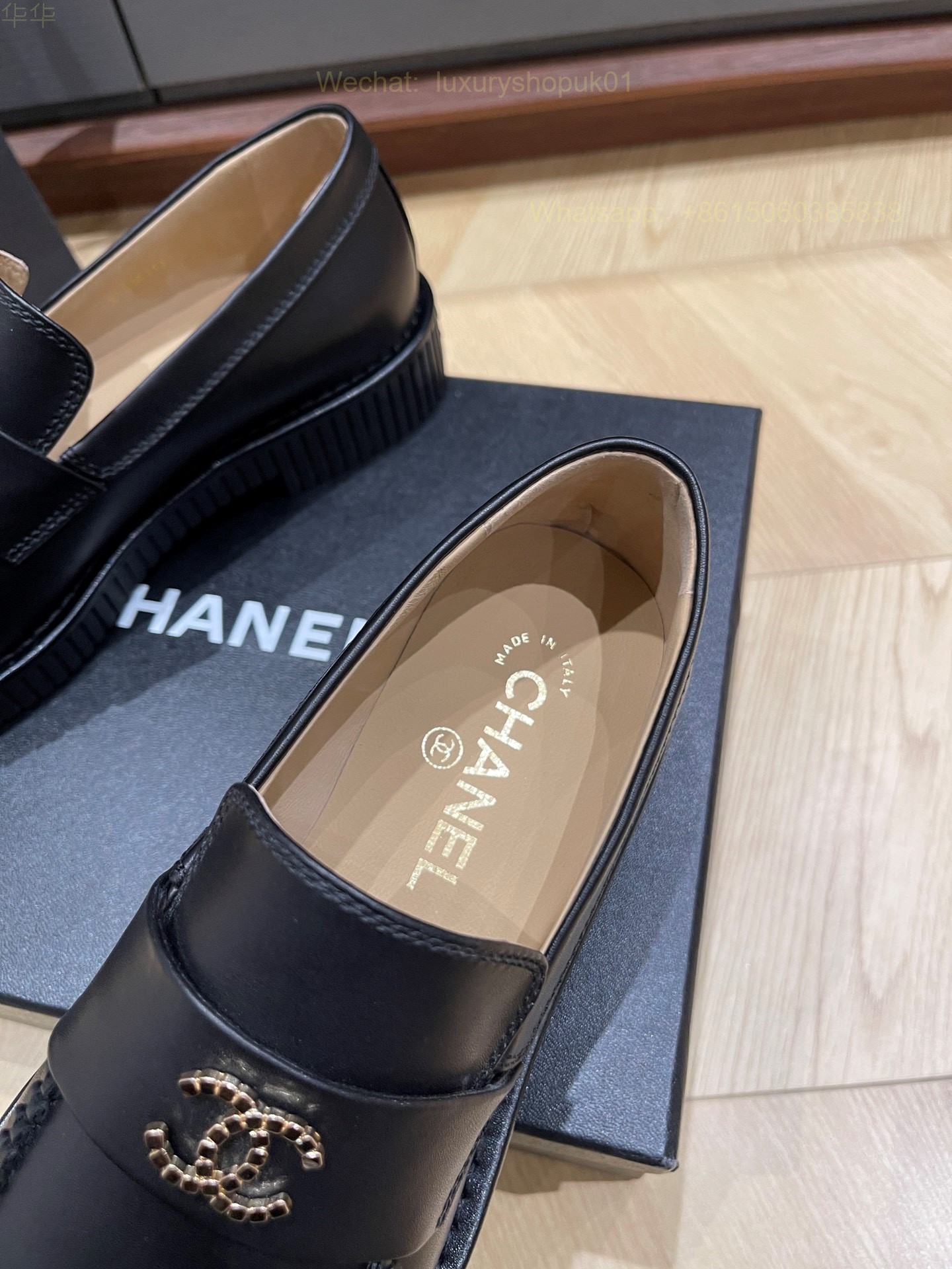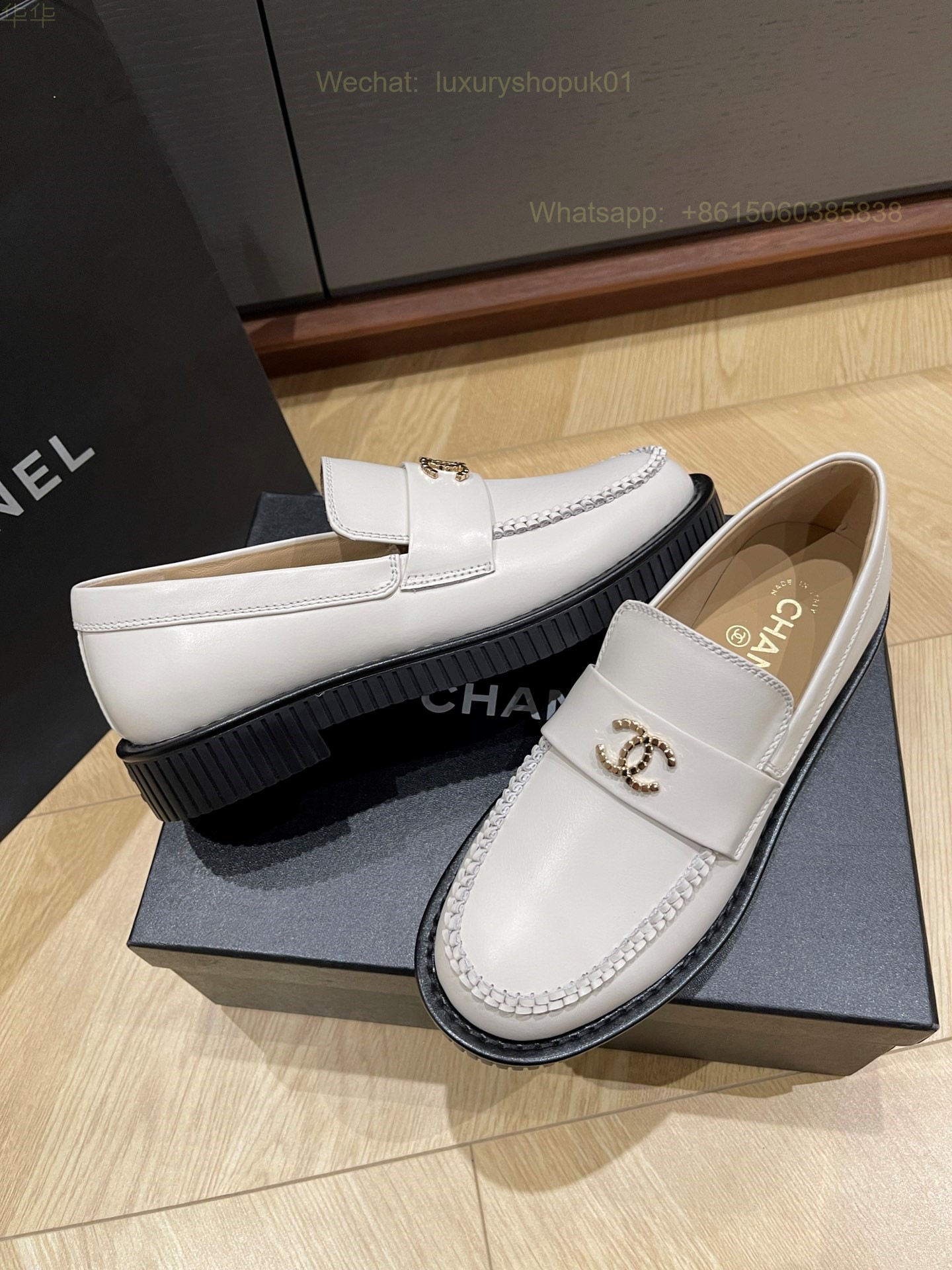 Women Chanel Loafers Leather CC Logo Flats Shoes