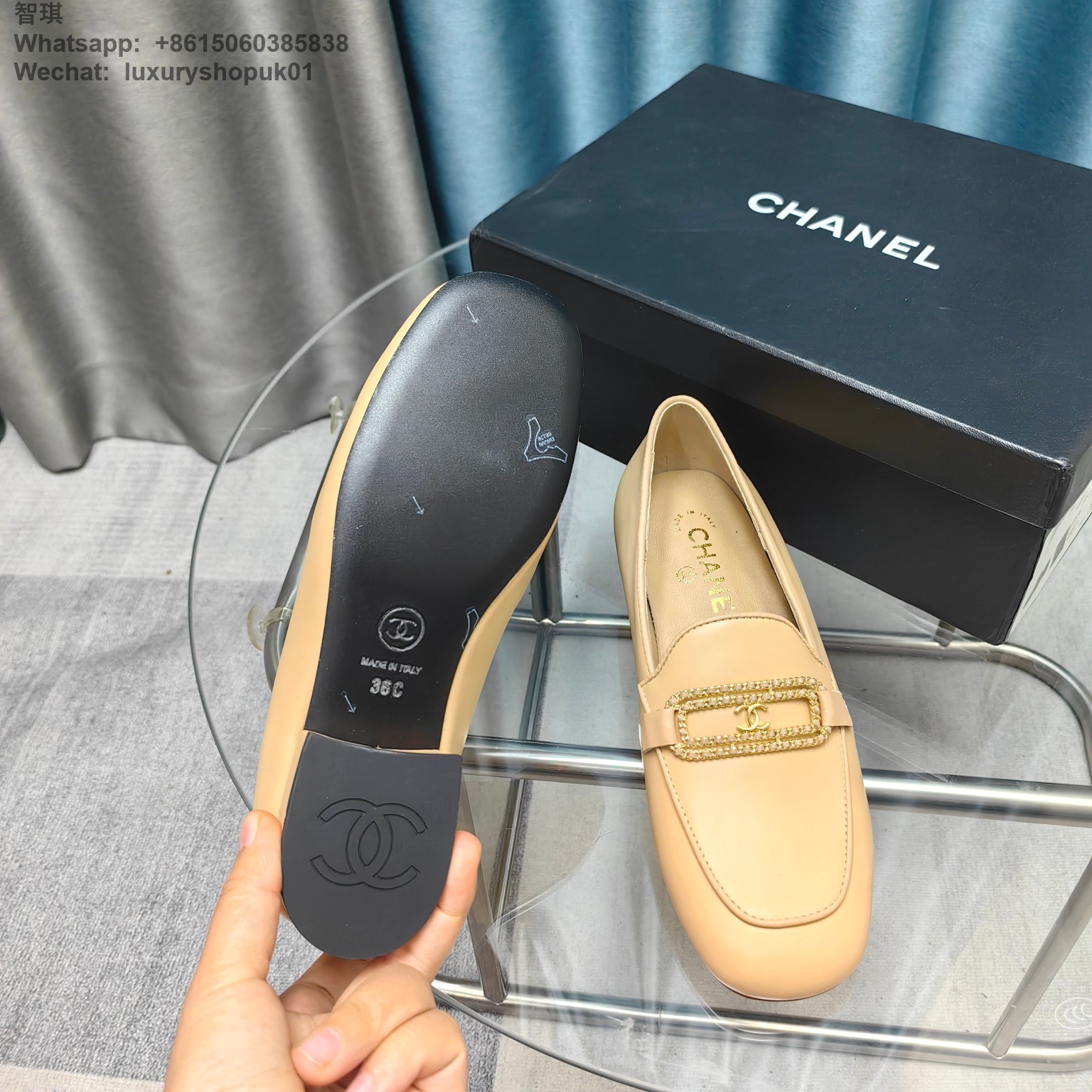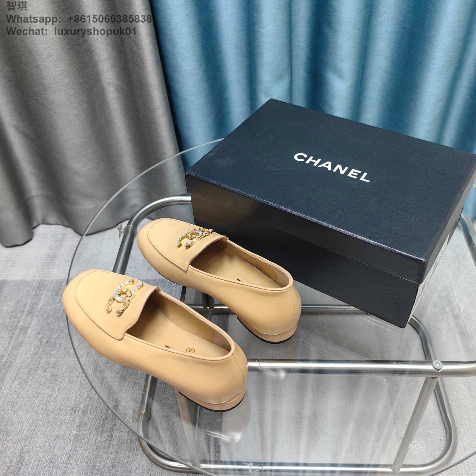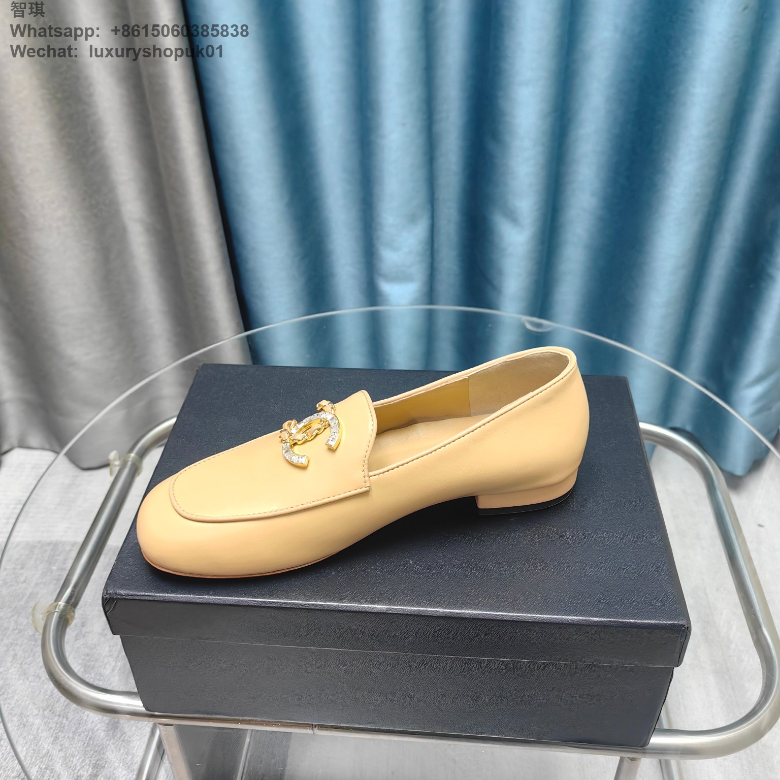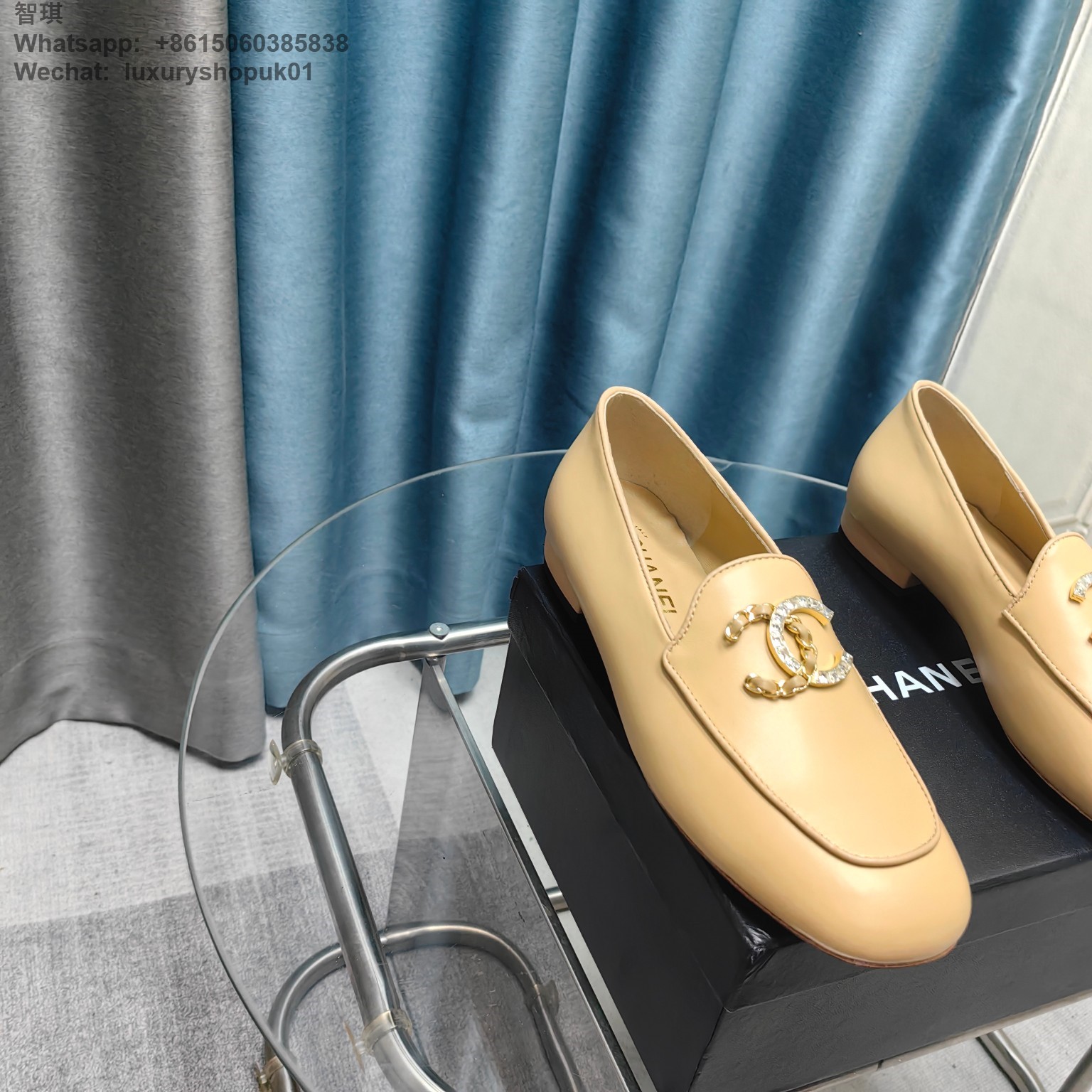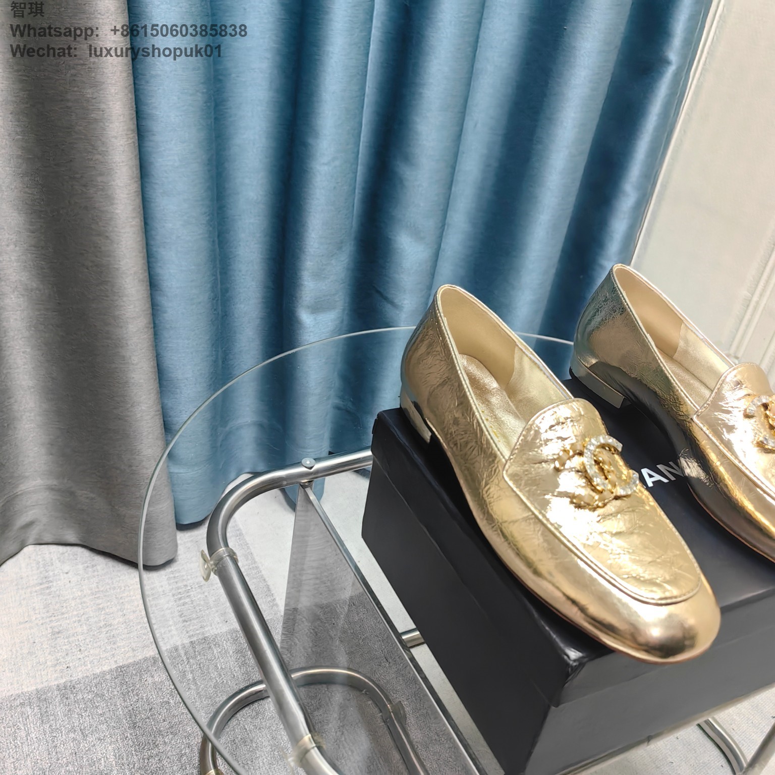 Women Chanel Crystals Diamond Loafers Leather CC Logo Flats Shoes