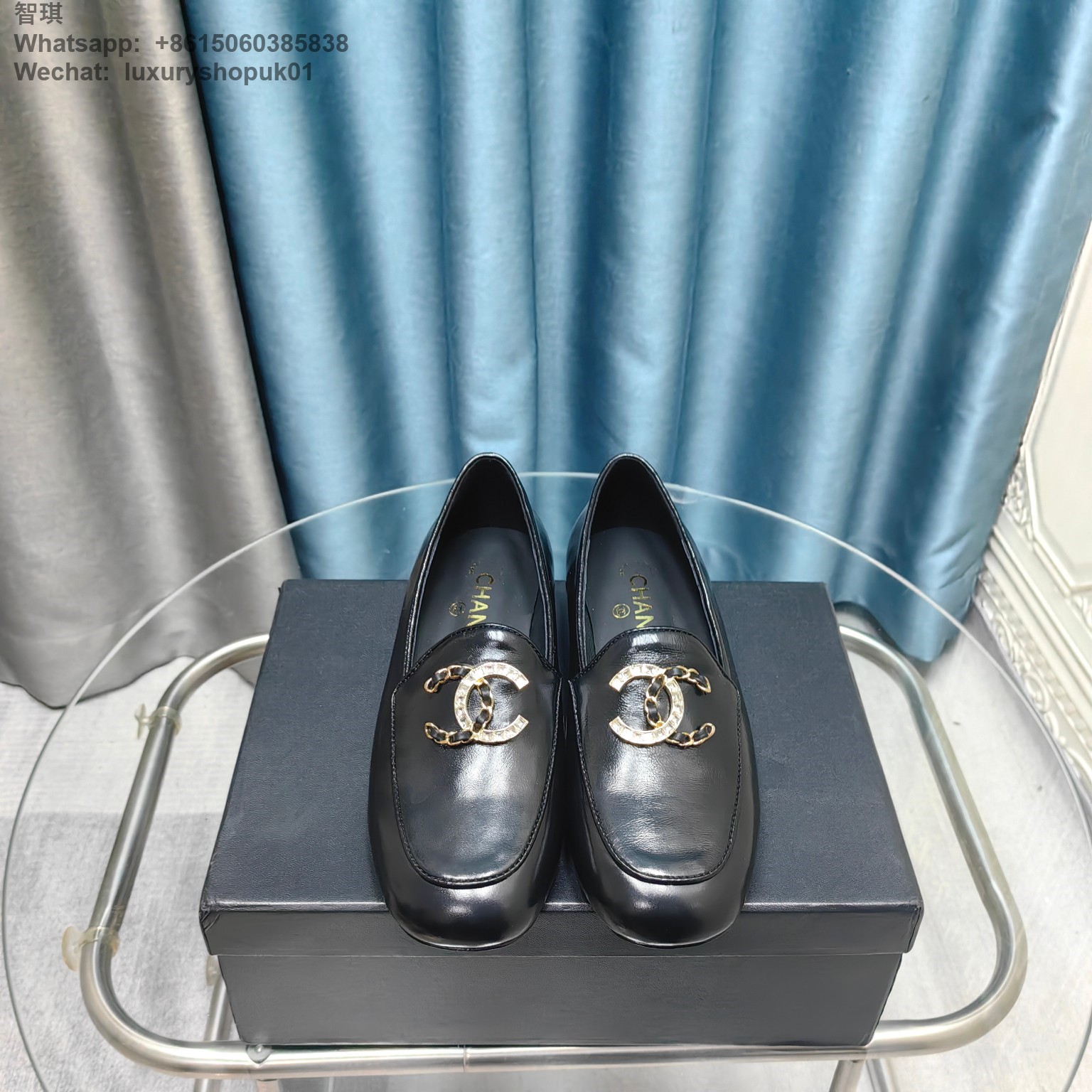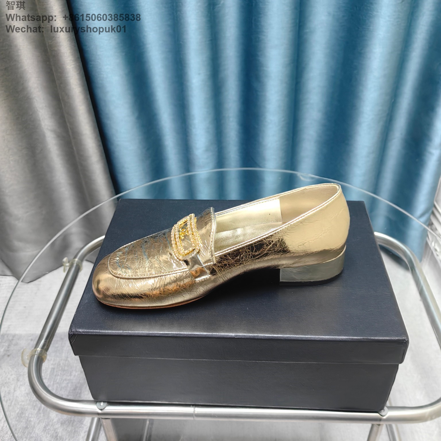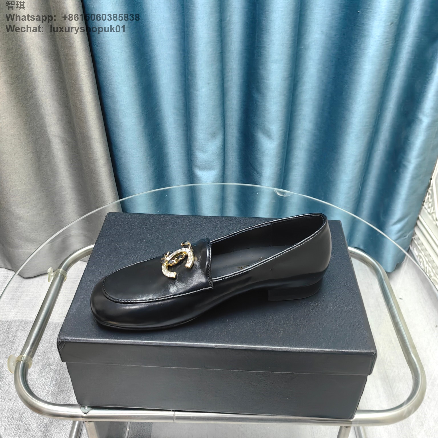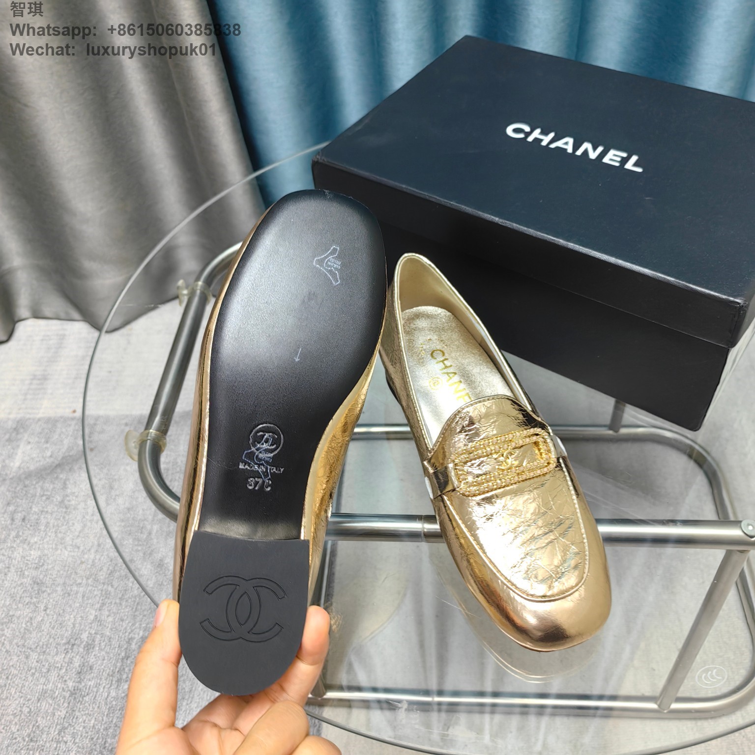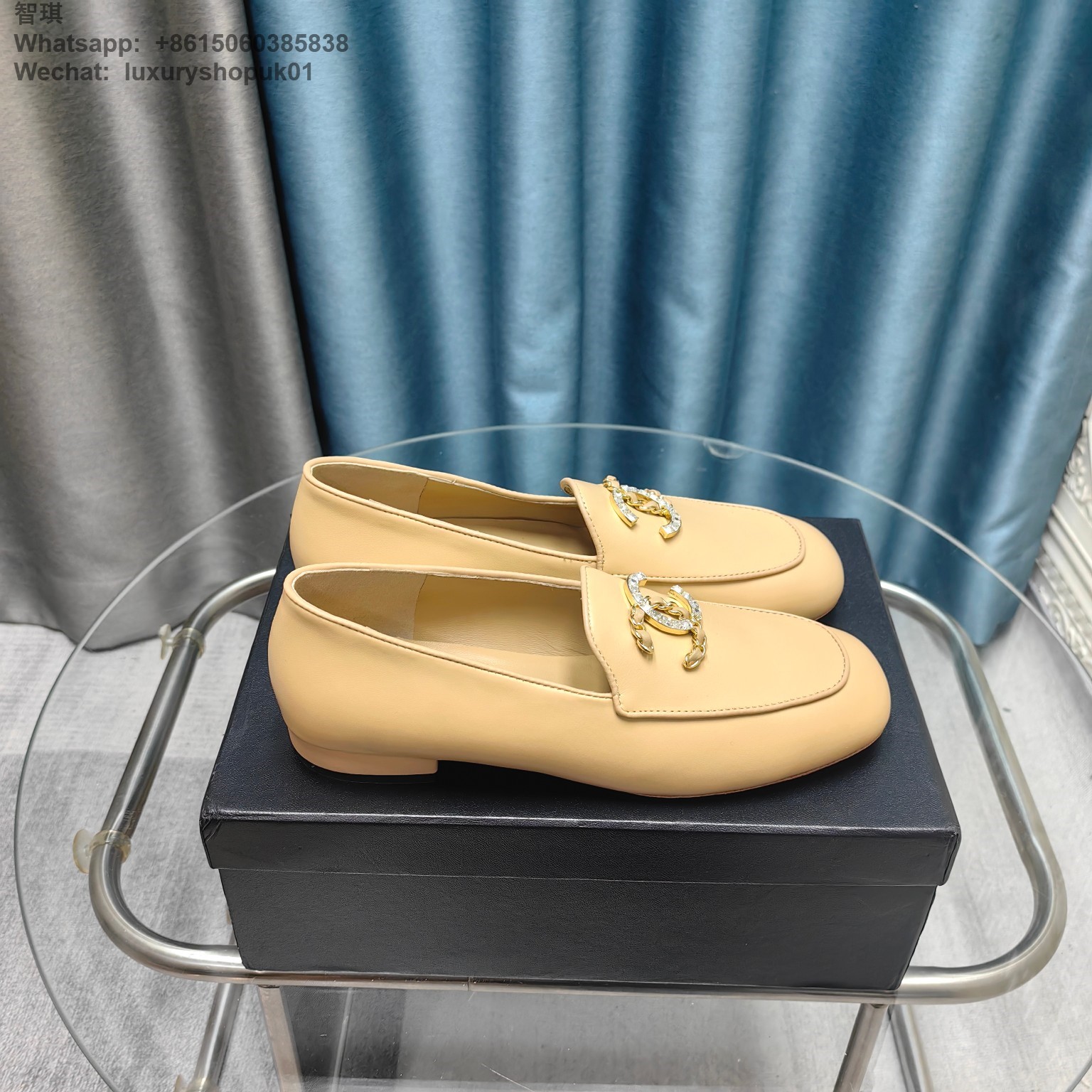 Women Chanel Crystals Diamond Loafers Leather CC Logo Flats Shoes