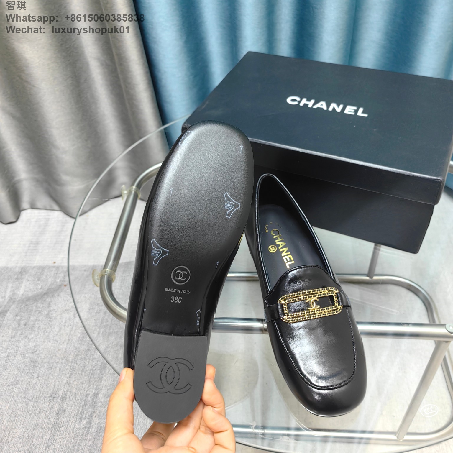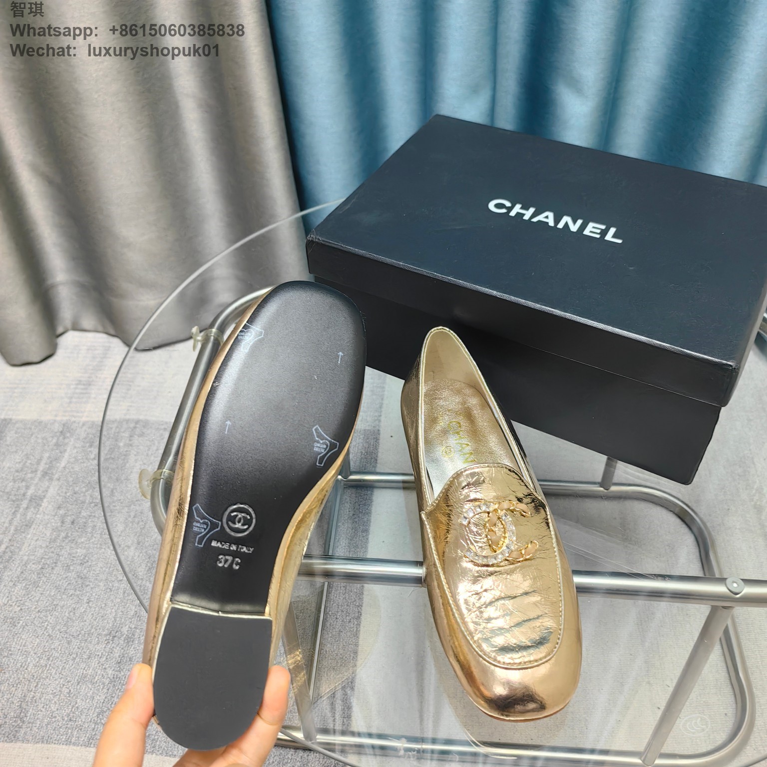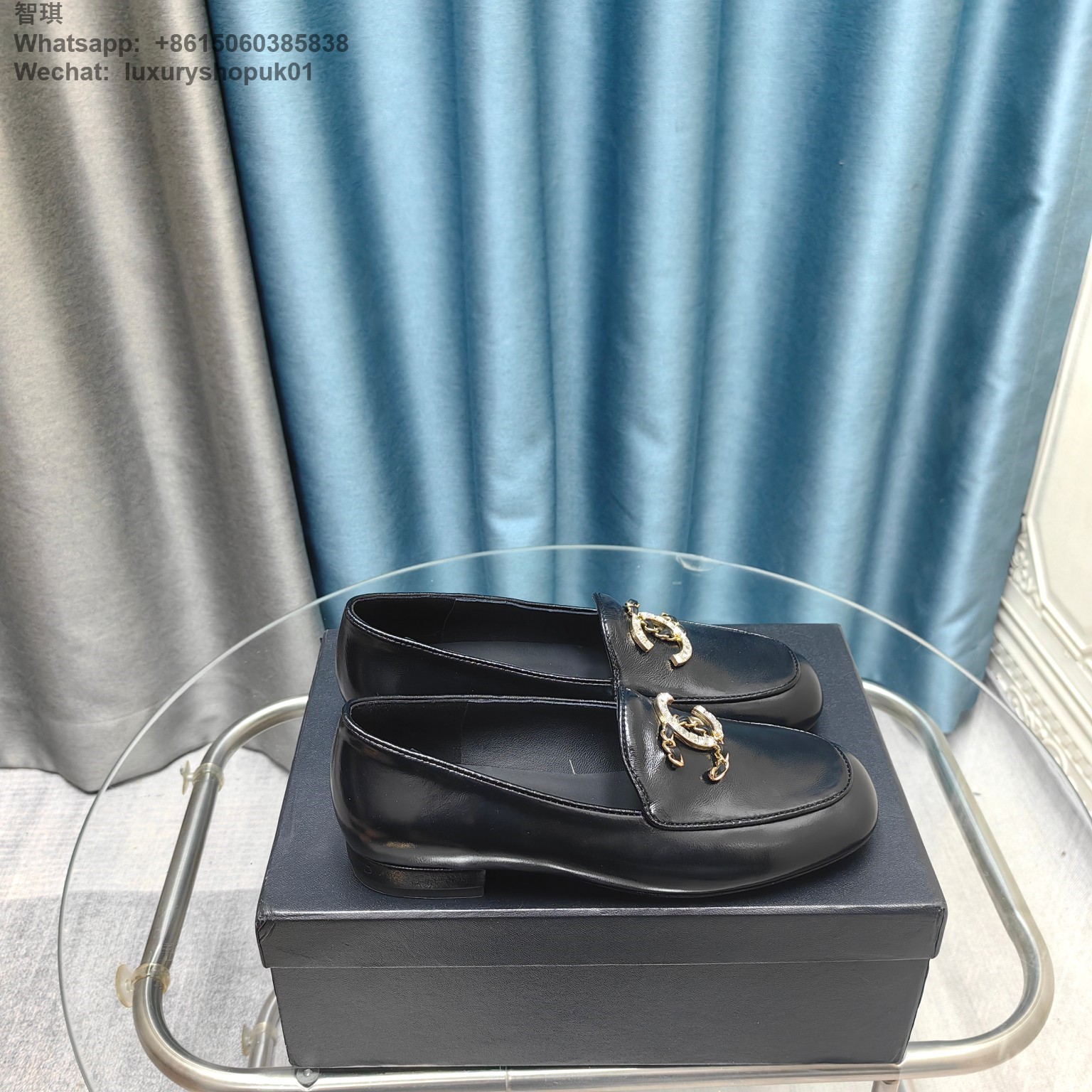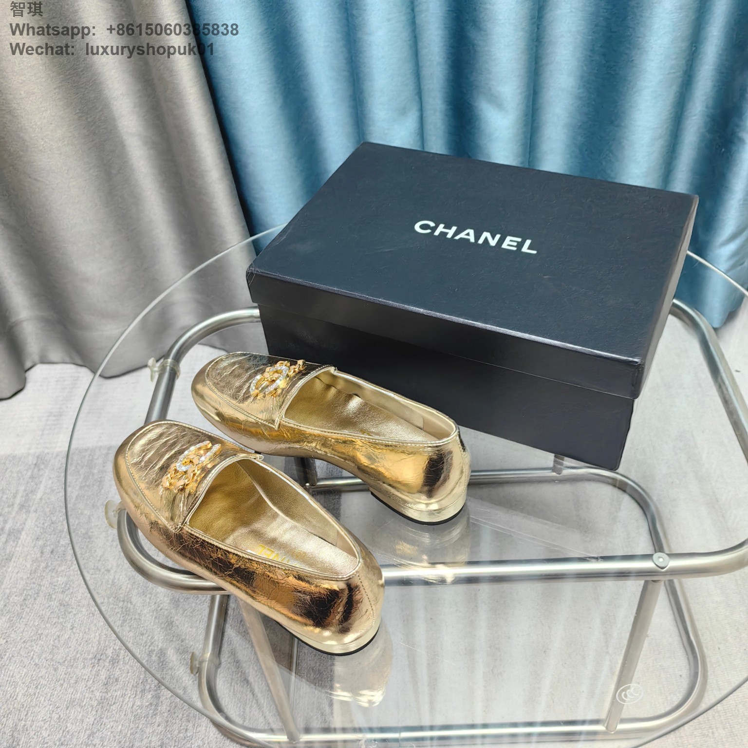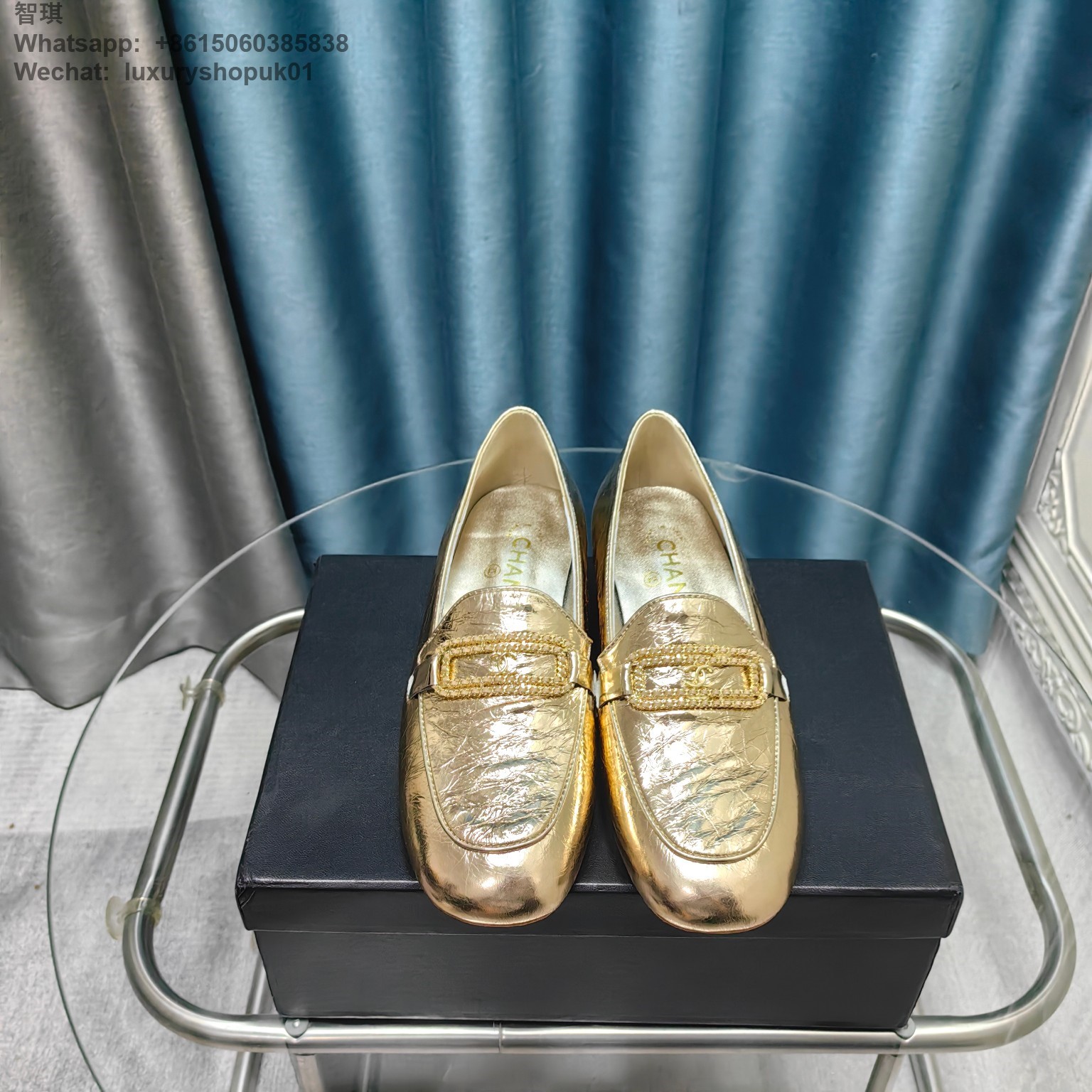 Women Chanel Crystals Diamond Loafers Leather CC Logo Flats Shoes