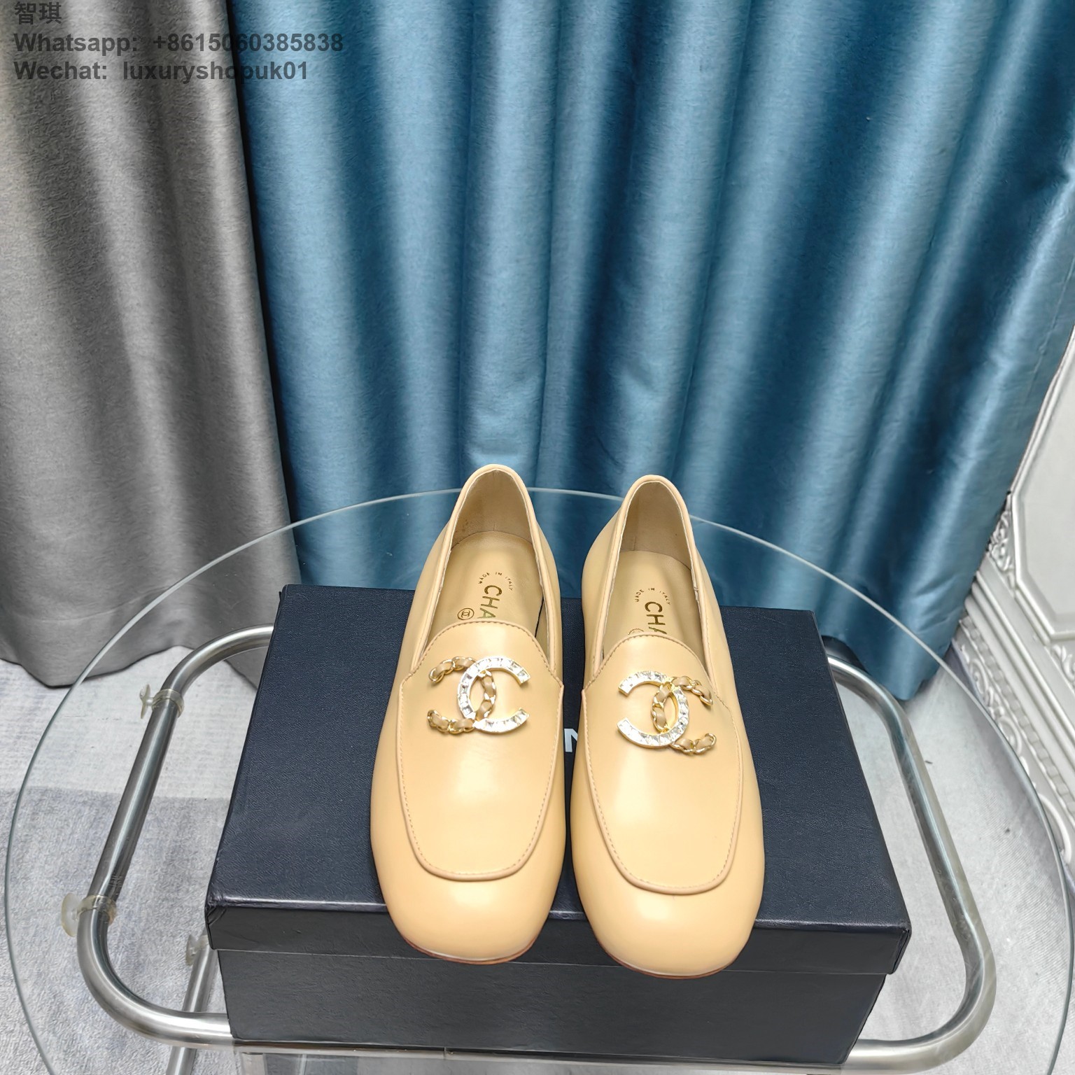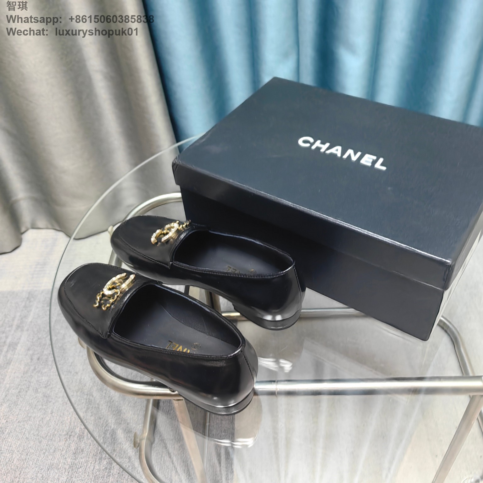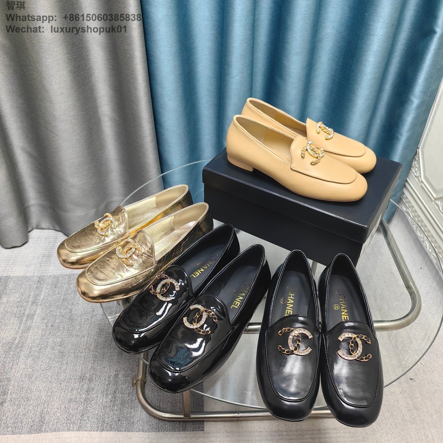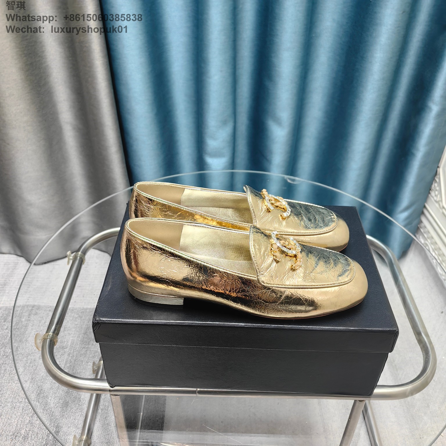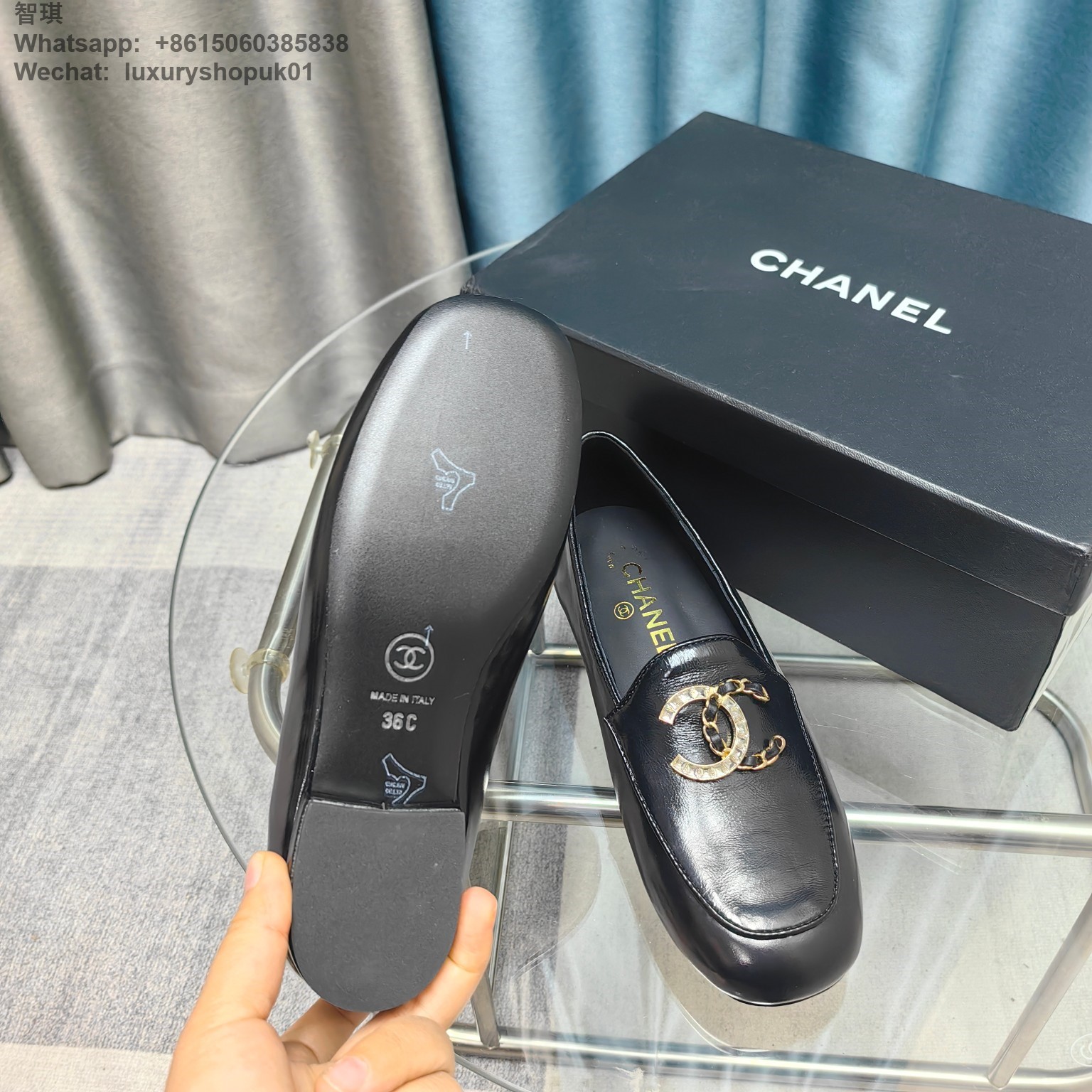 Women Chanel Crystals Diamond Loafers Leather CC Logo Flats Shoes