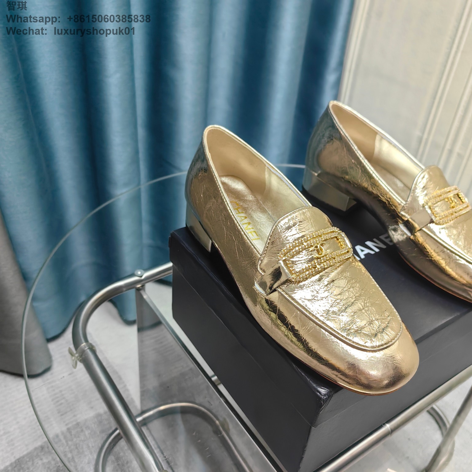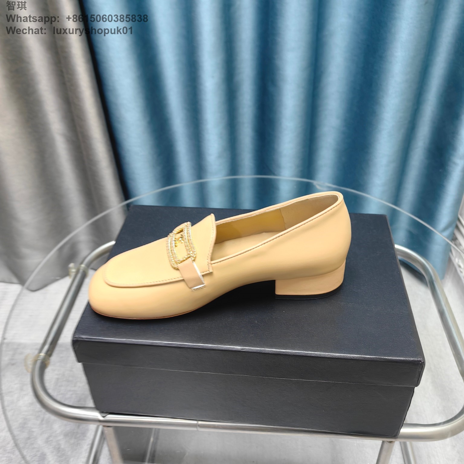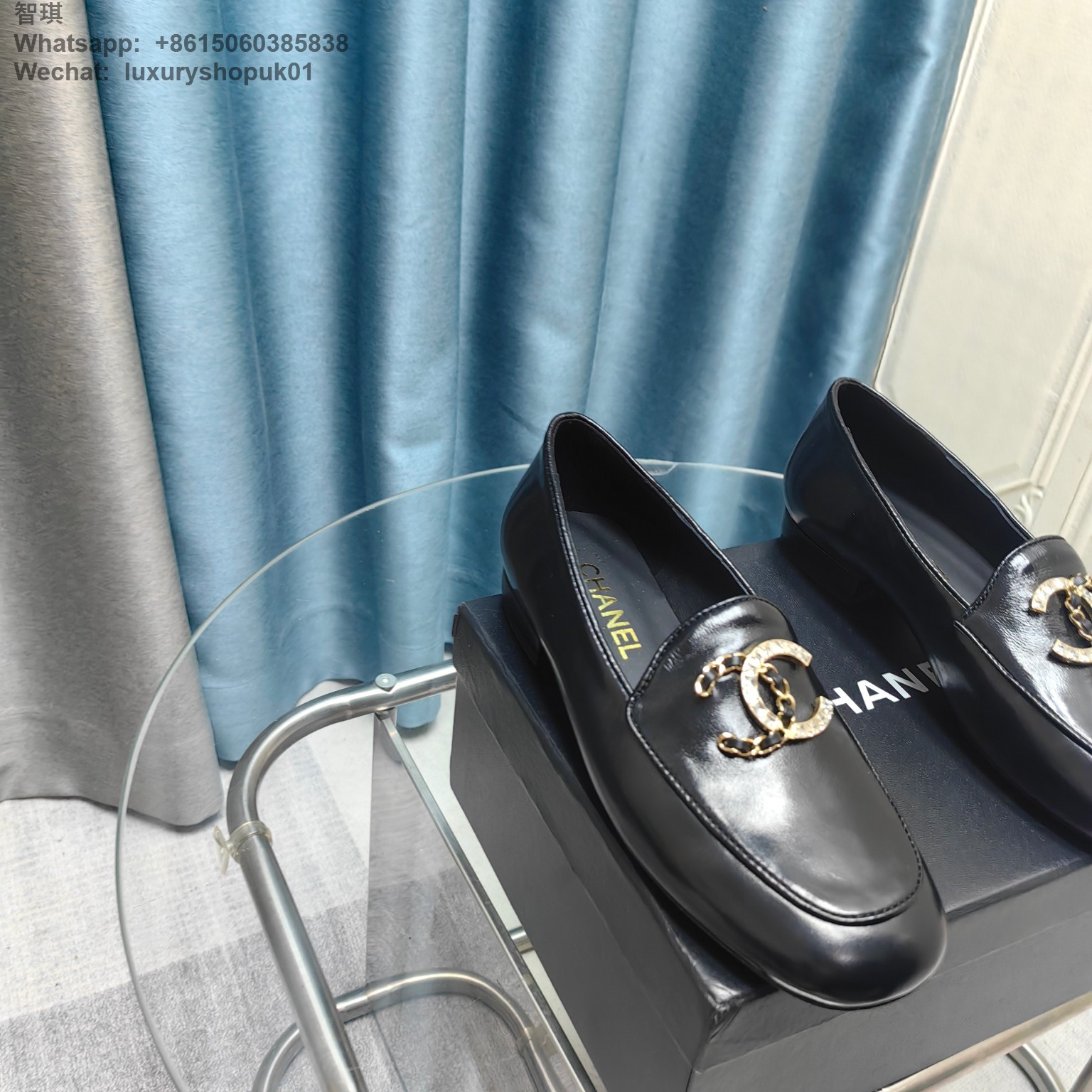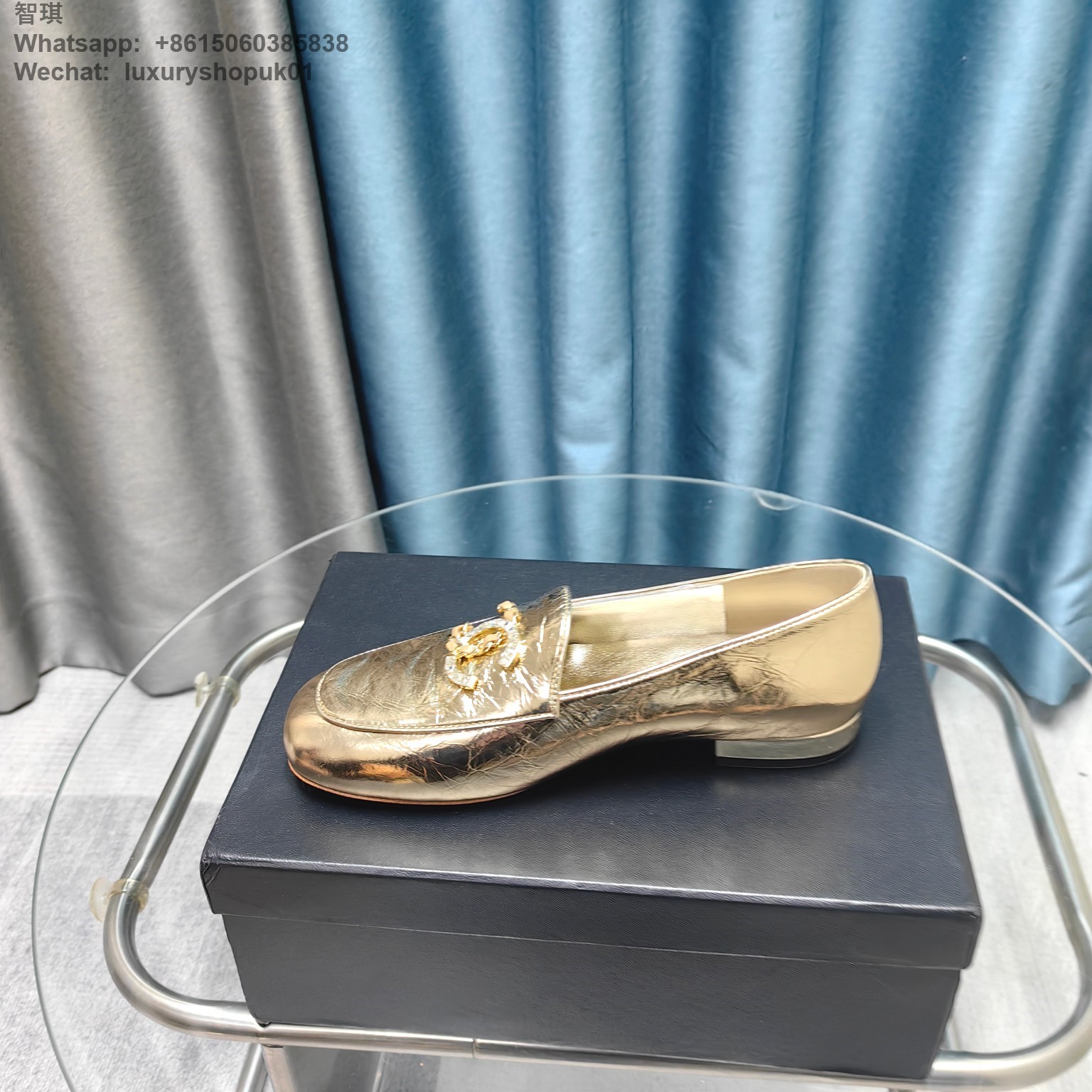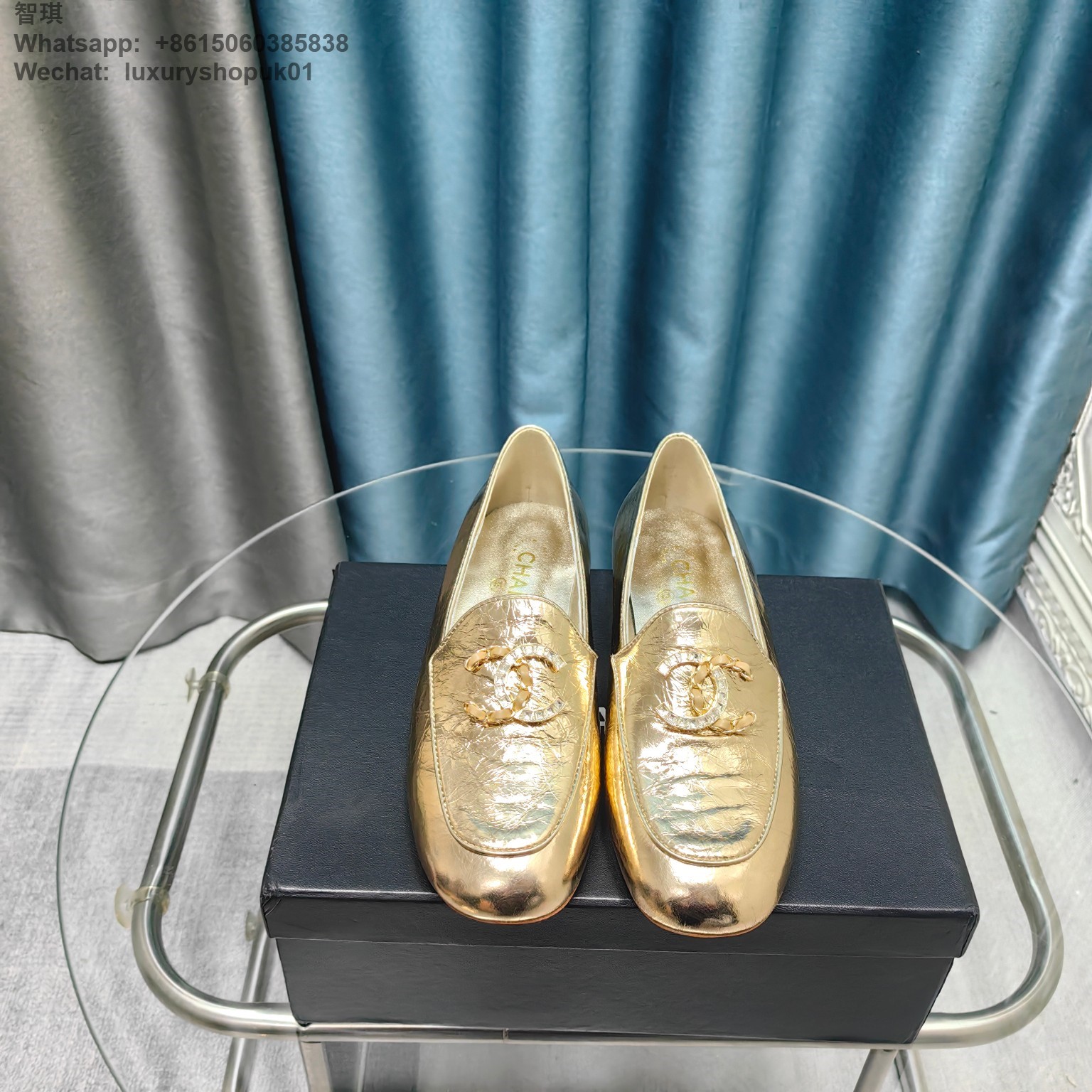 Women Chanel Crystals Diamond Loafers Leather CC Logo Flats Shoes