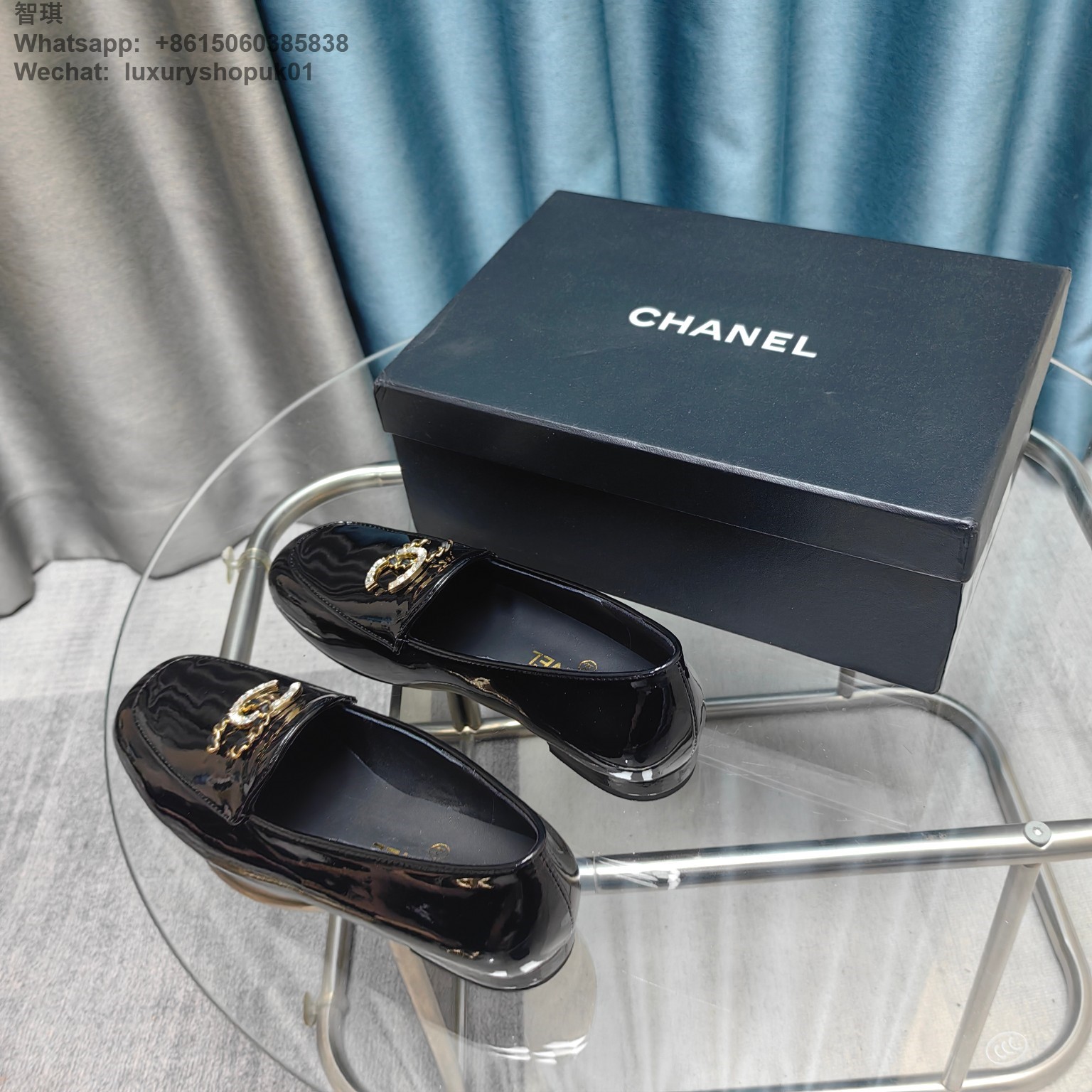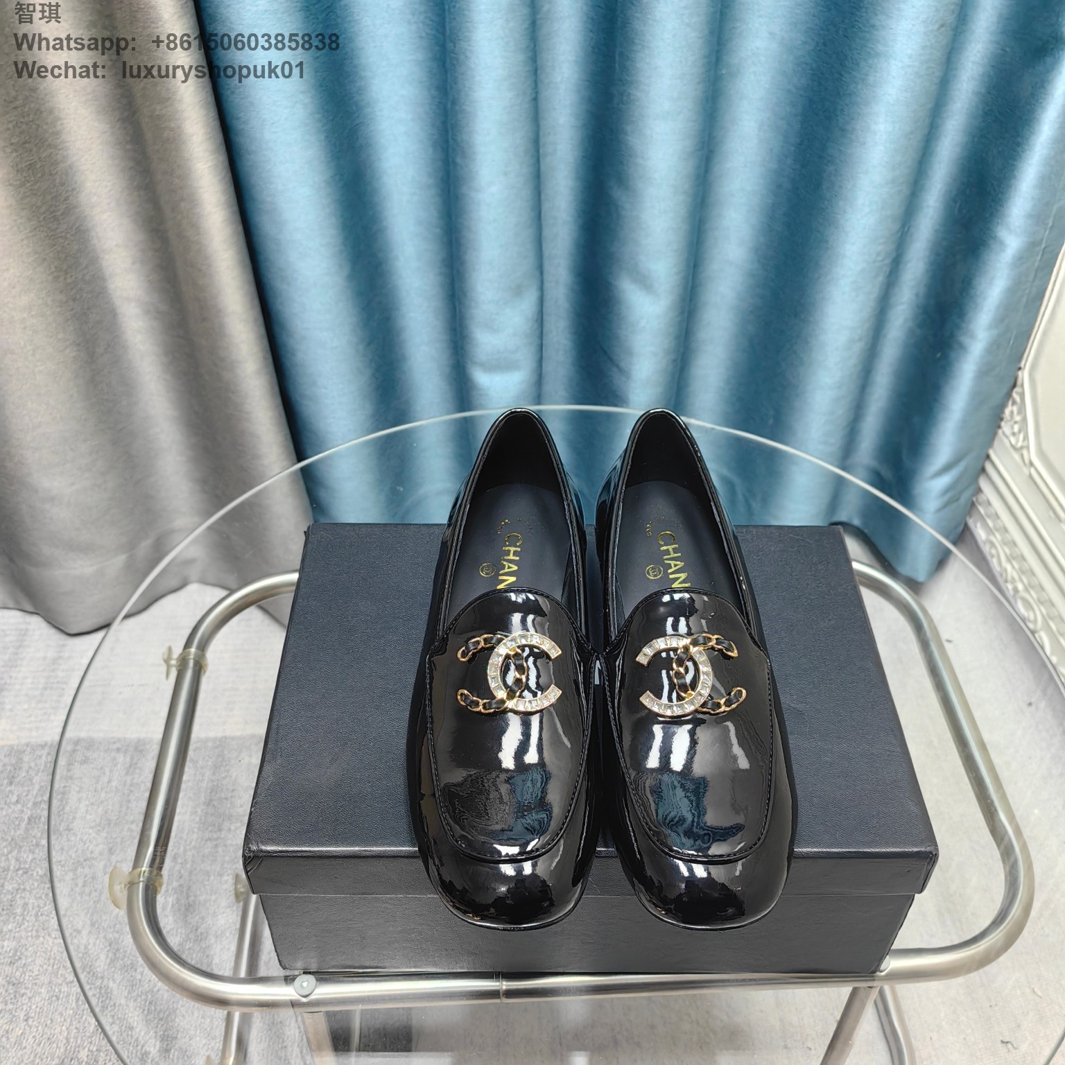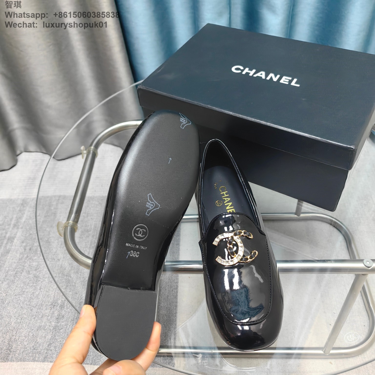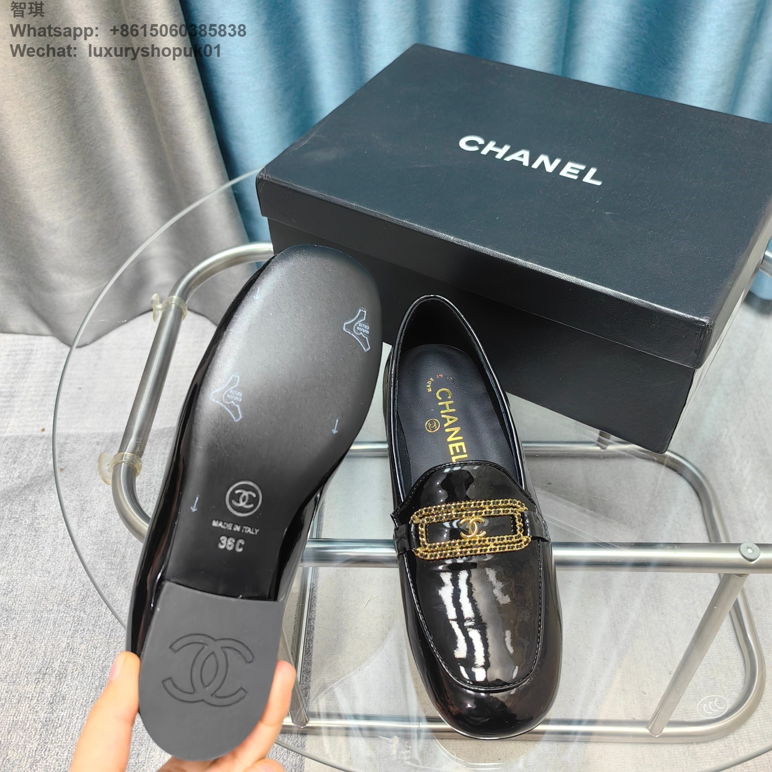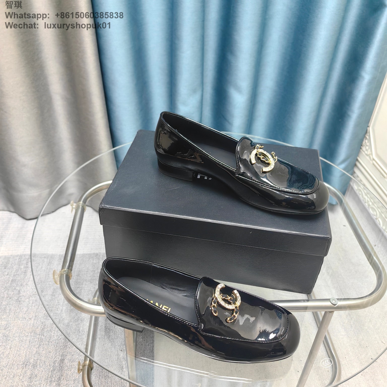 Women Chanel Chain Loafers Patent Leather CC Logo Flats Shoes
