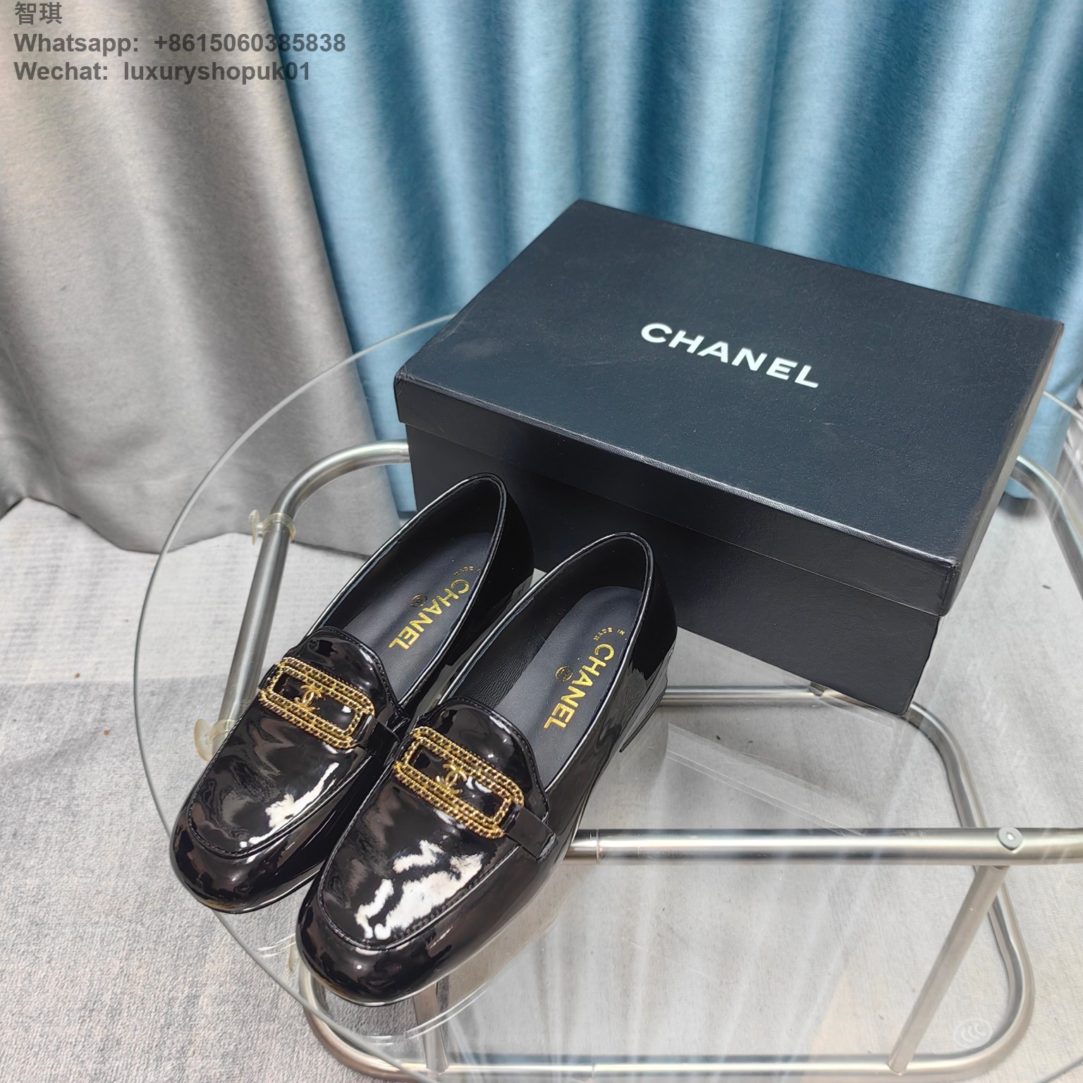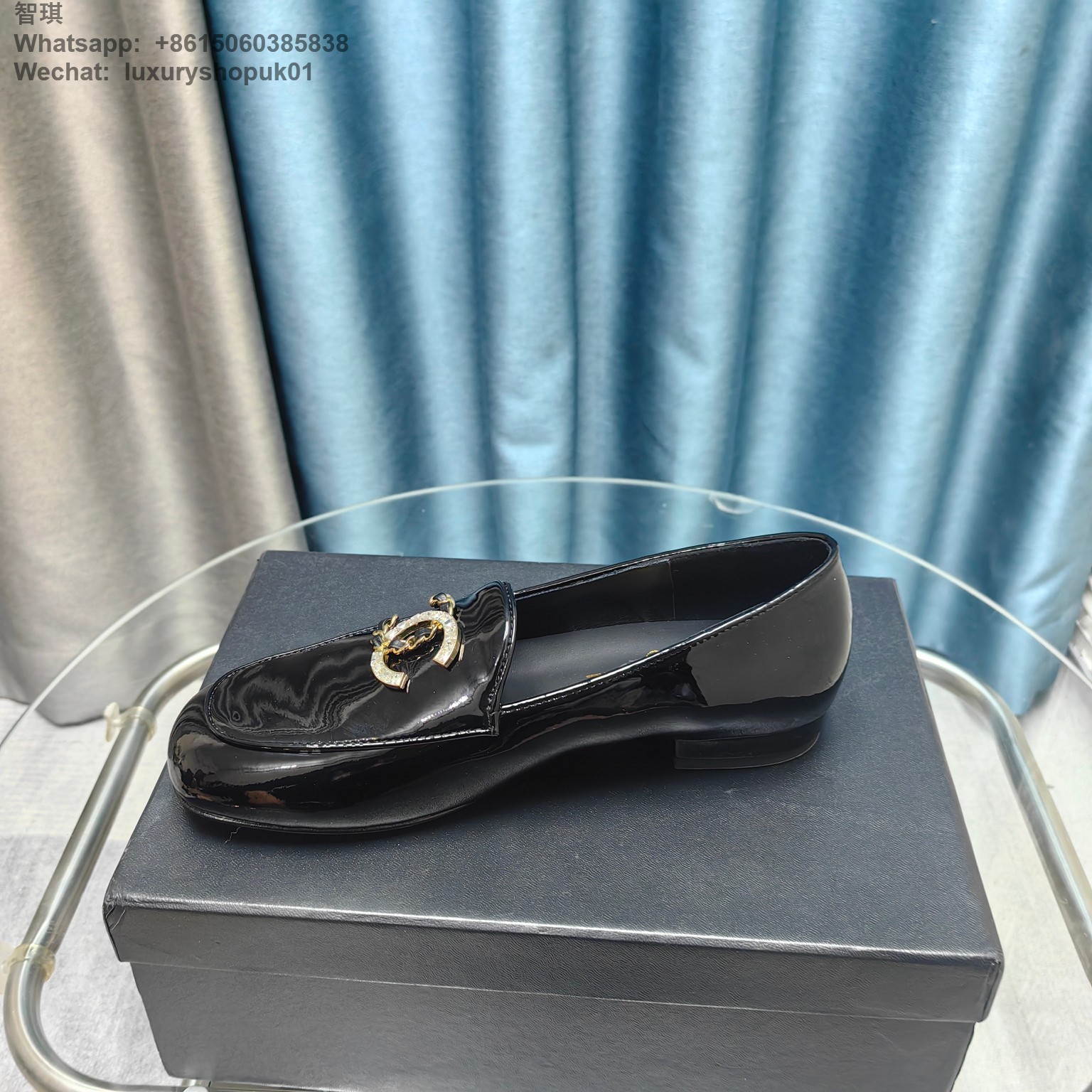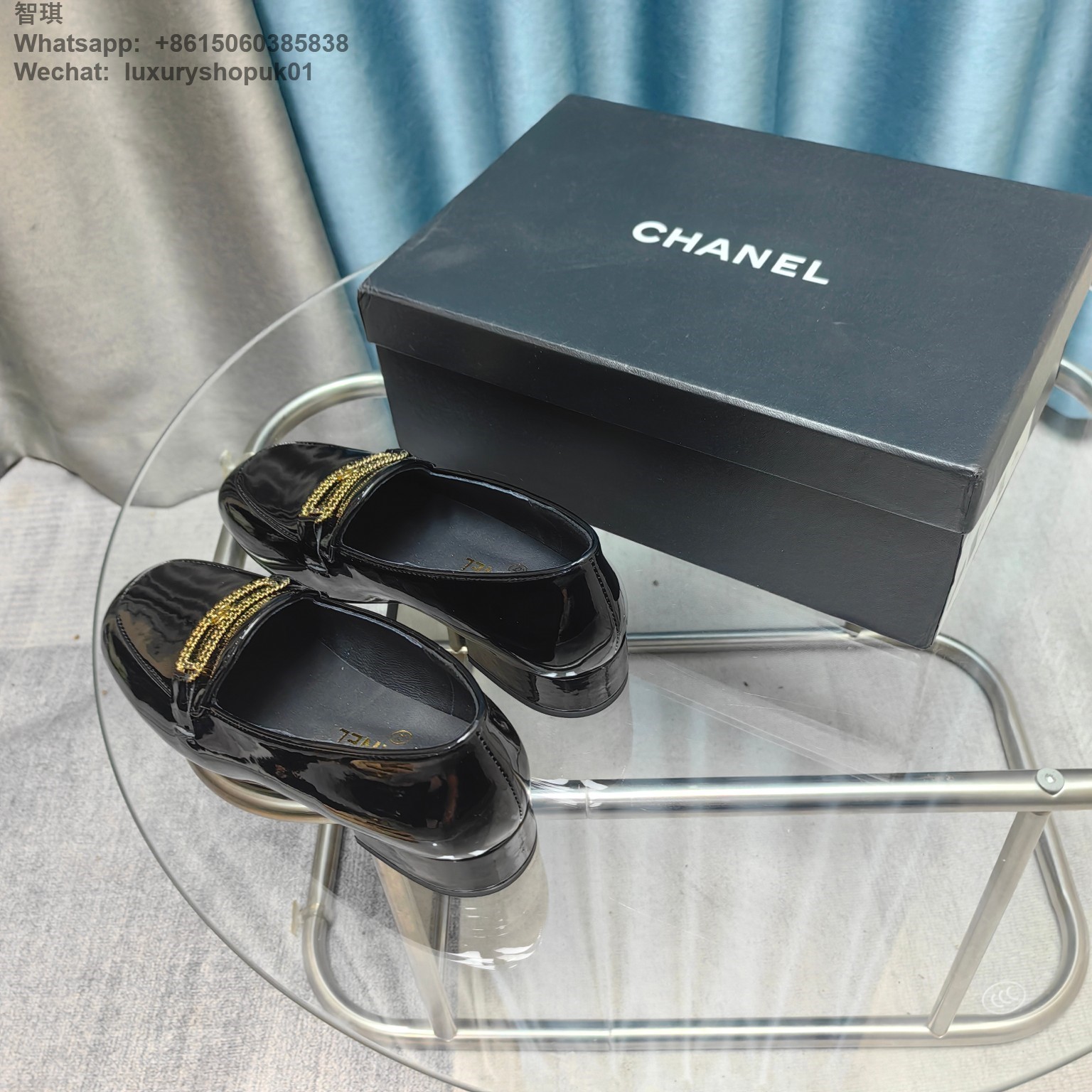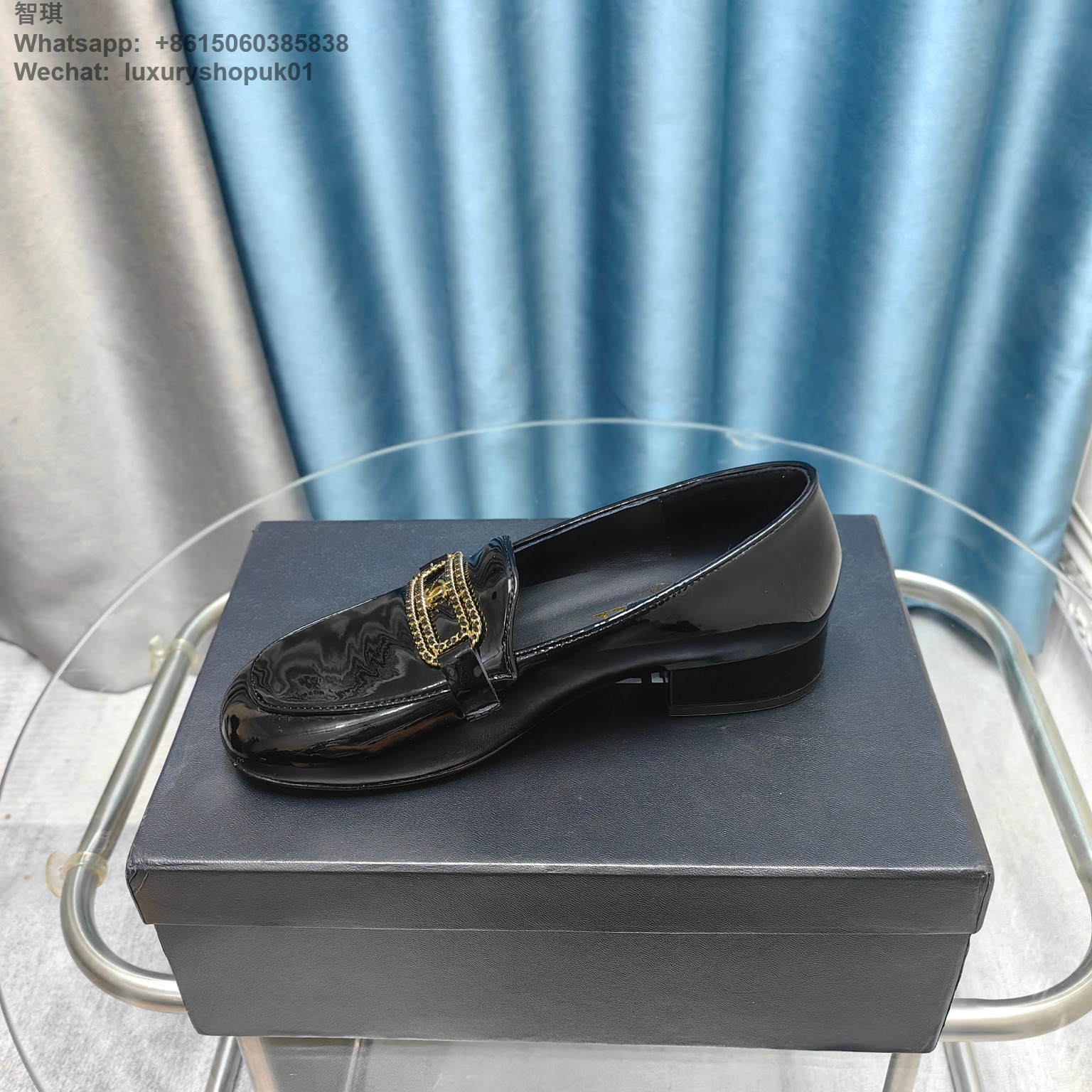 Women Chanel Chain Loafers Patent Leather CC Logo Flats Shoes