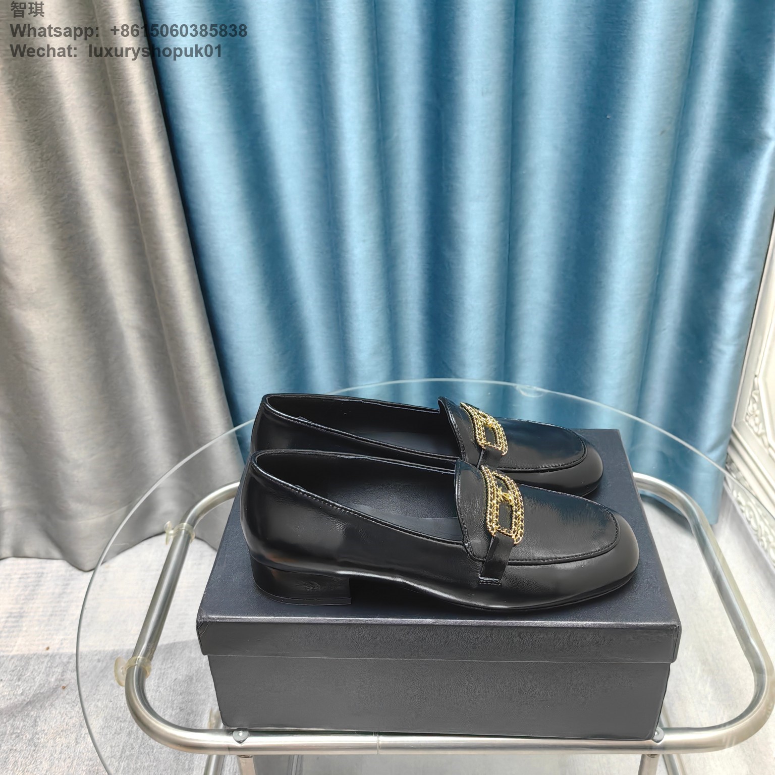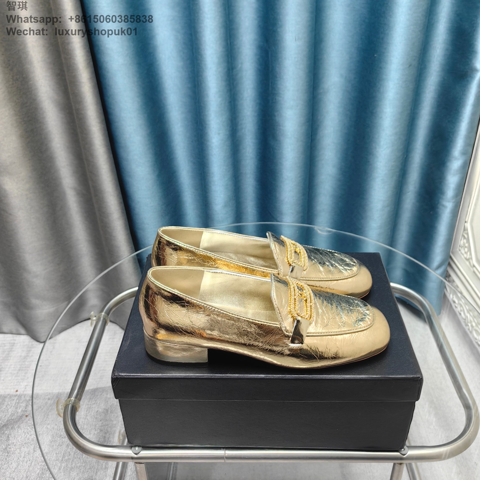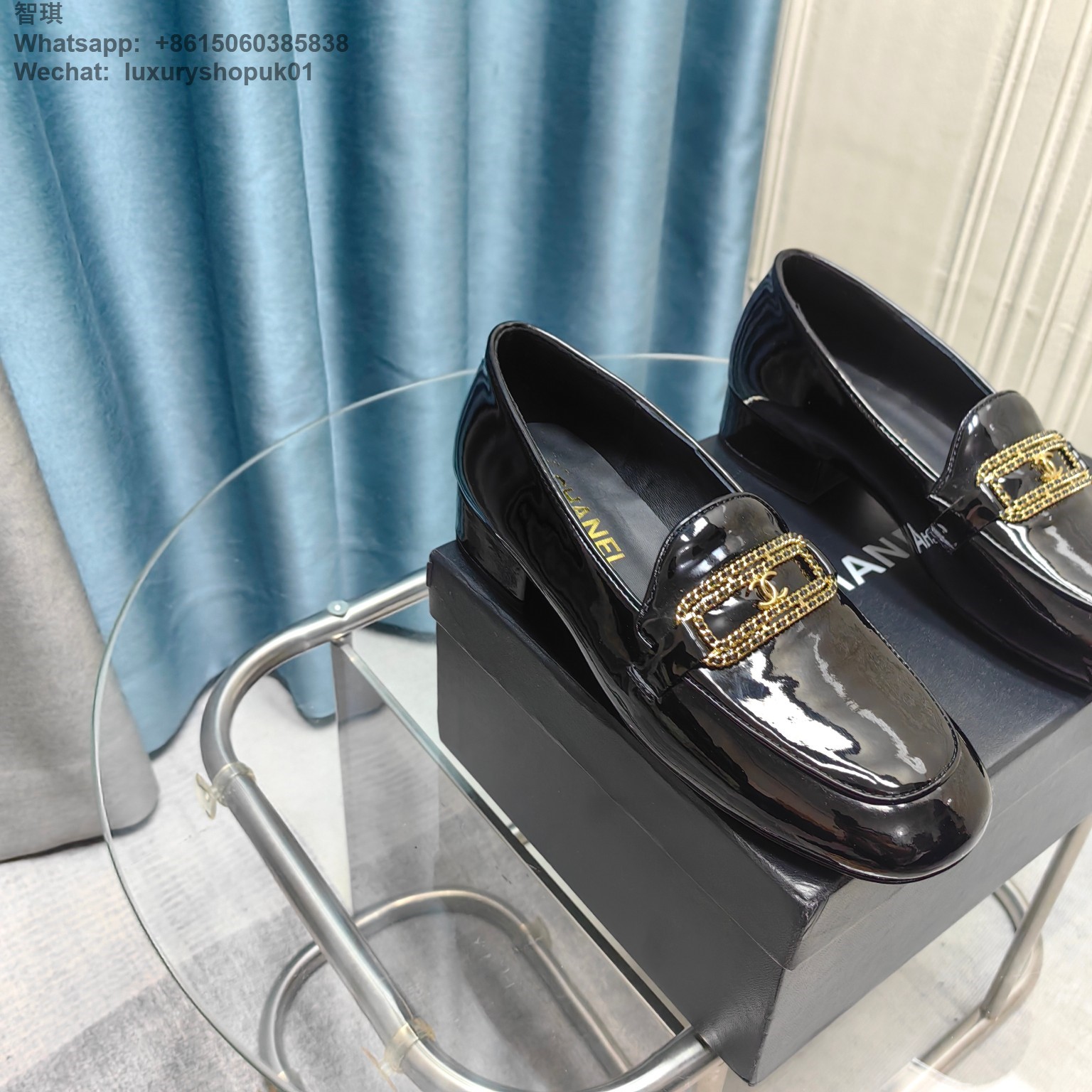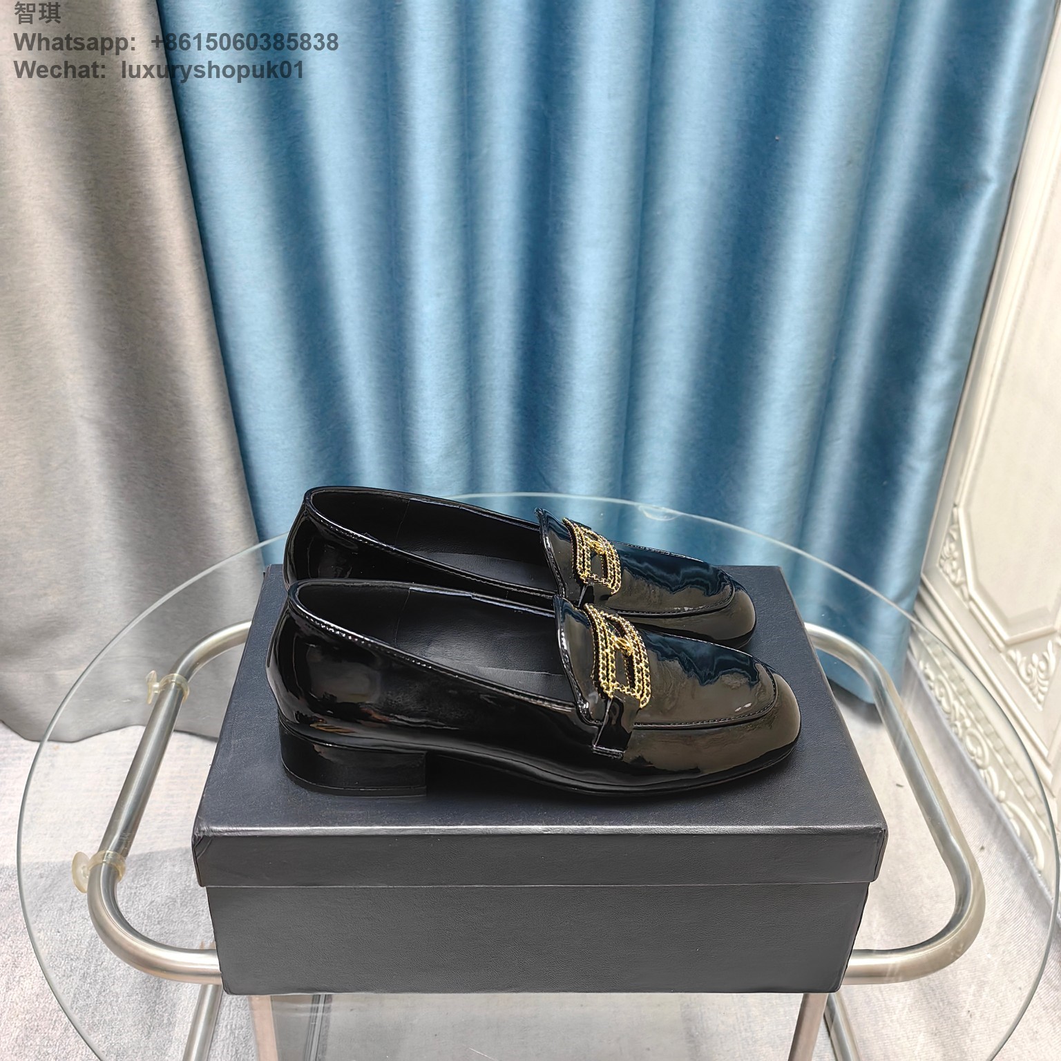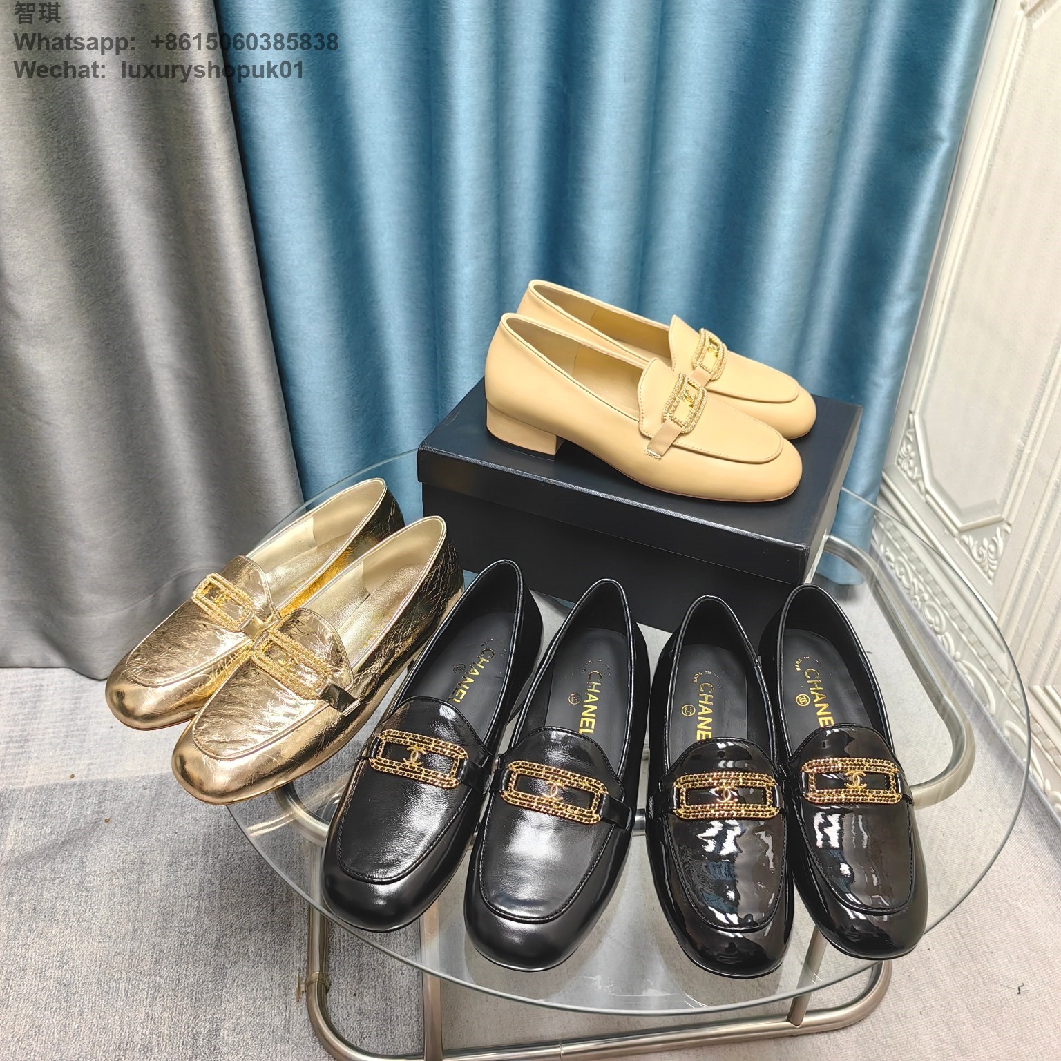Women Chanel Chain Loafers Patent Leather CC Logo Flats Shoes