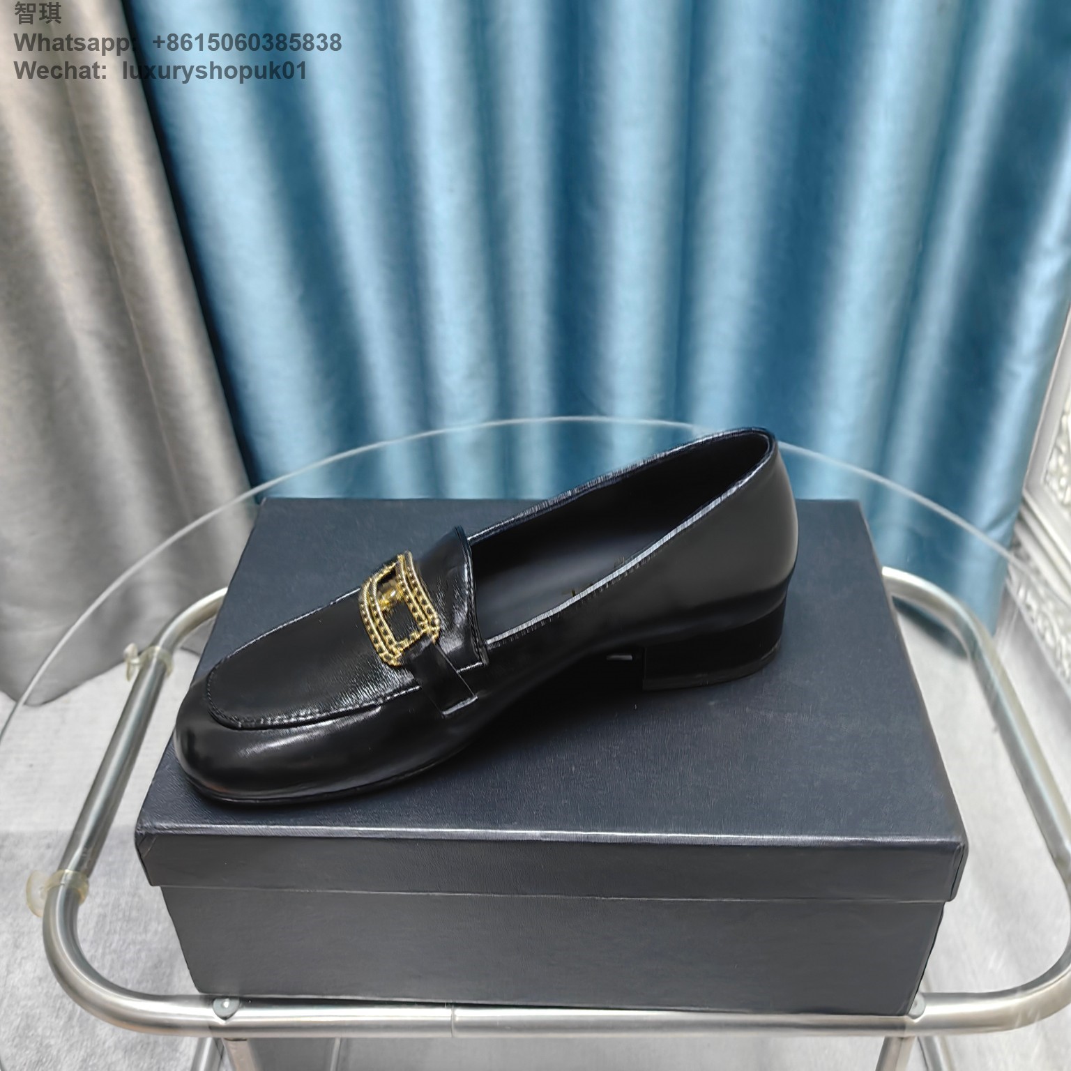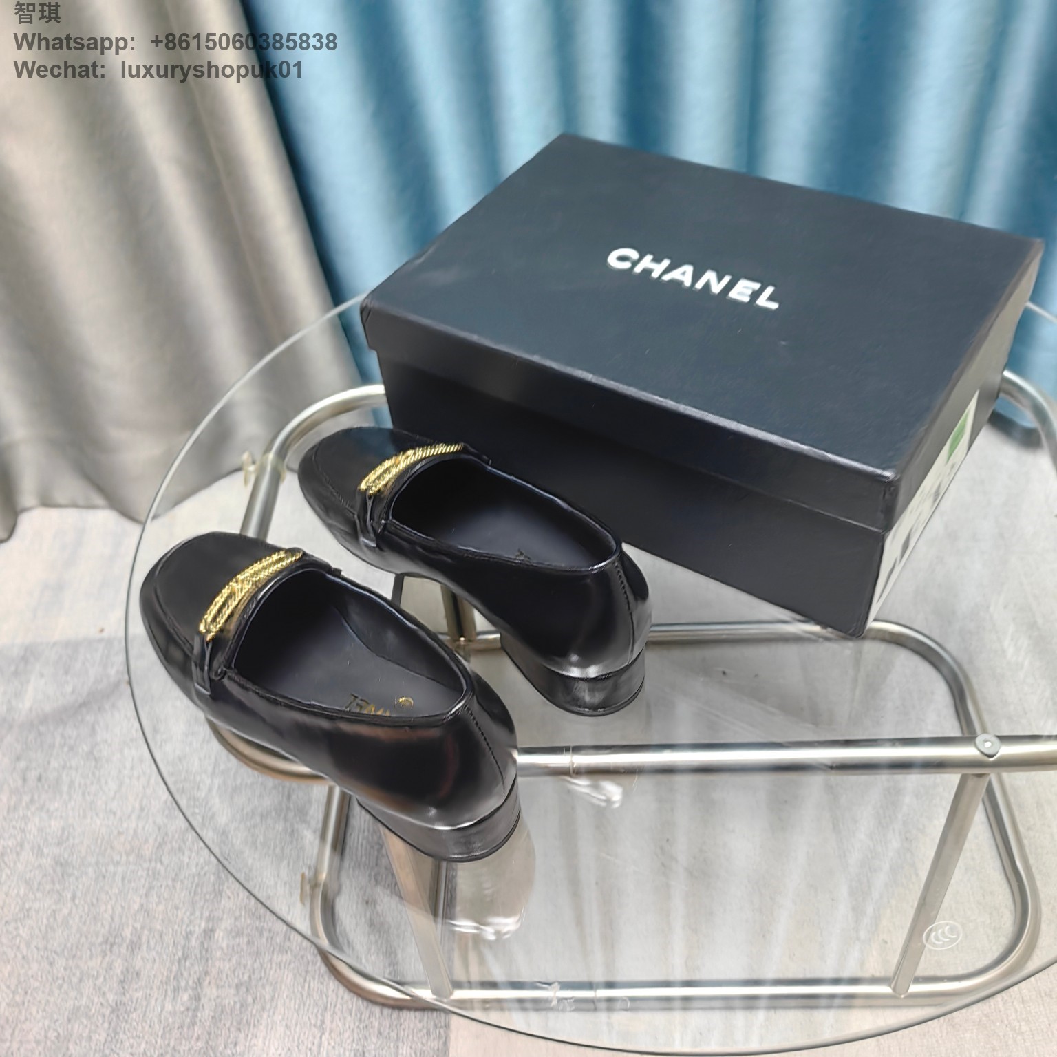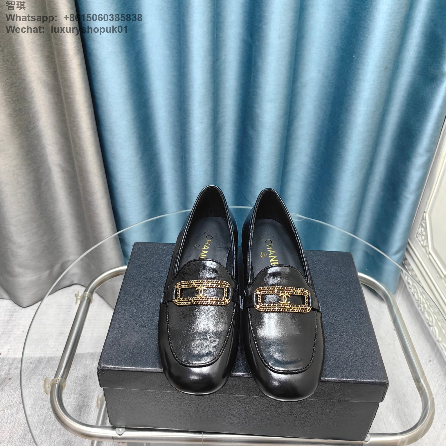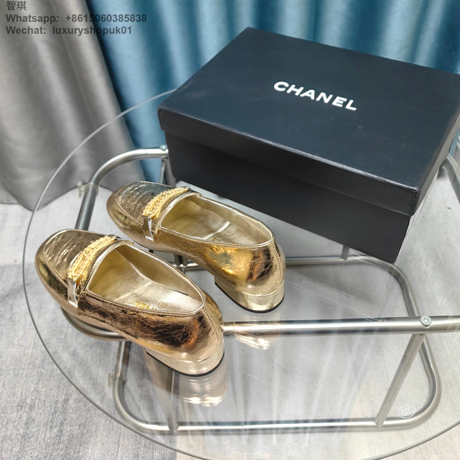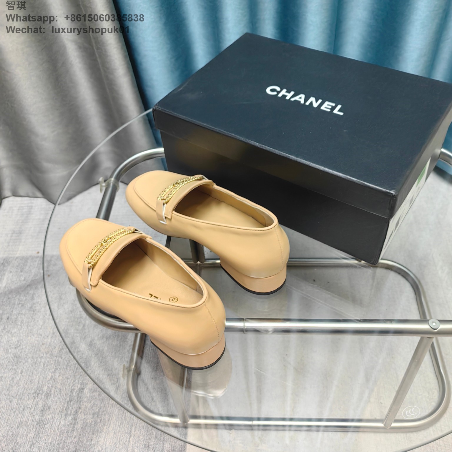 Women Chanel Chain Loafers Patent Leather CC Logo Flats Shoes