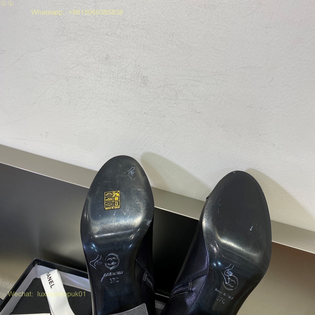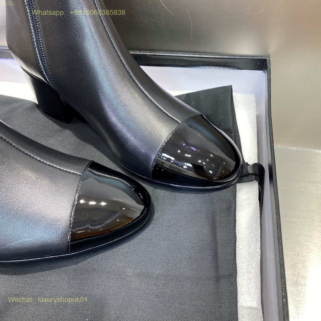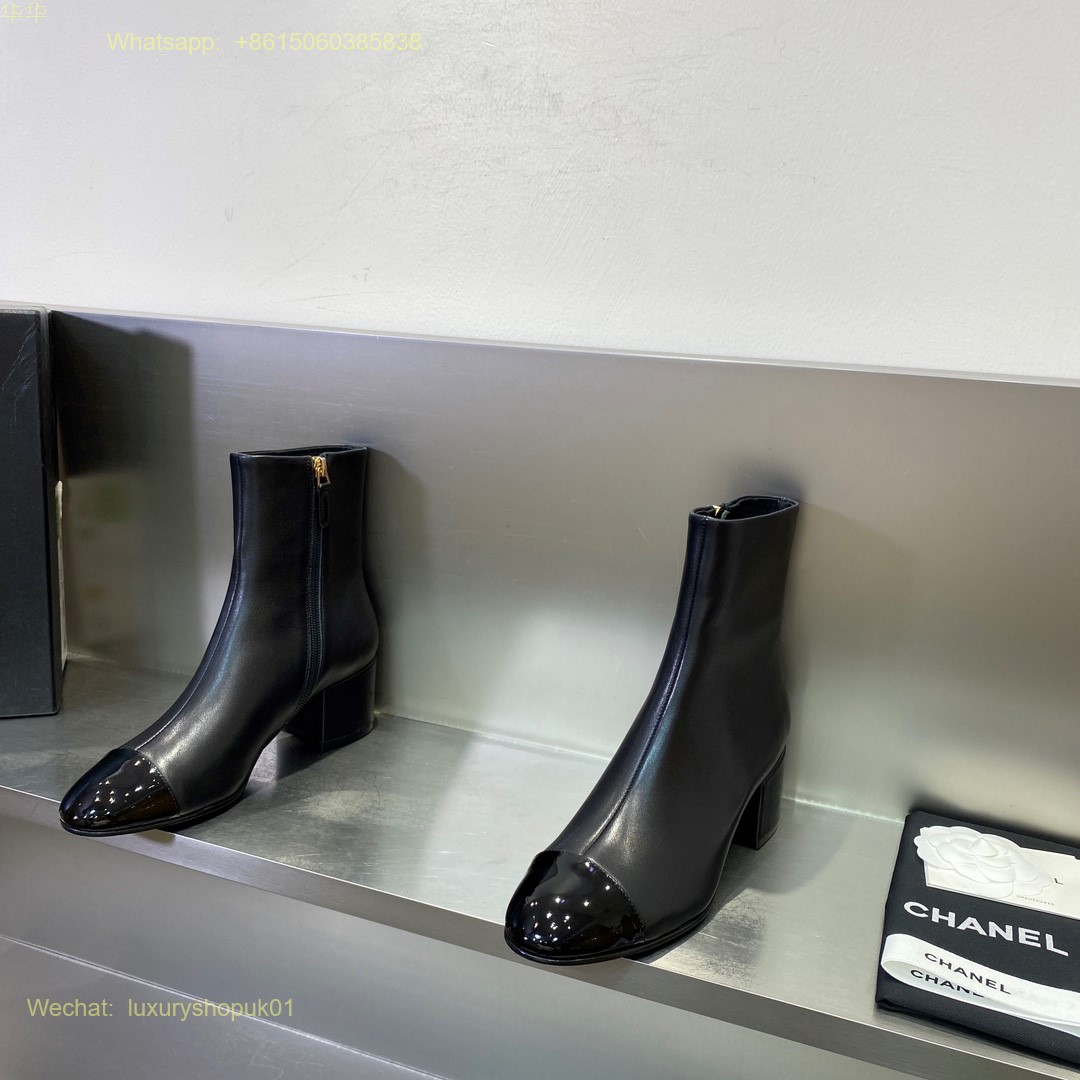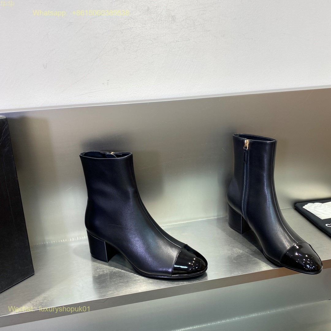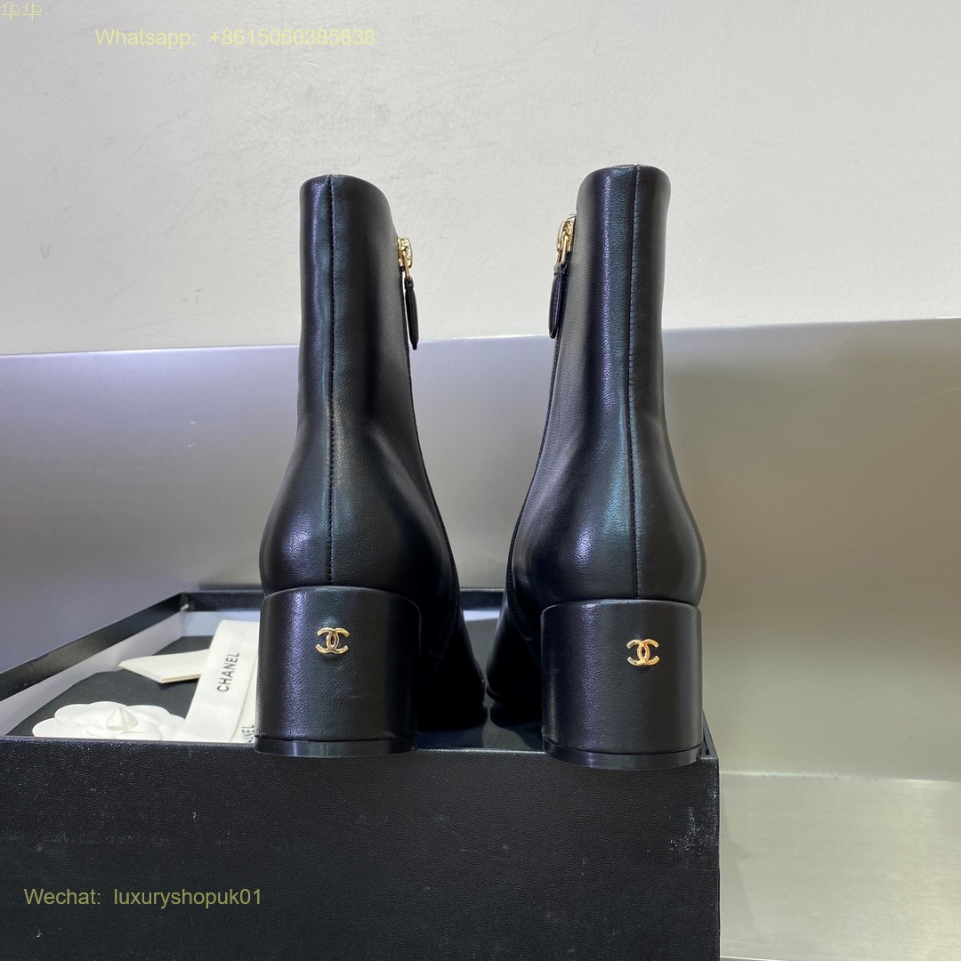 Chanel pearl block heels cap toe ankle boot Women Shoes
