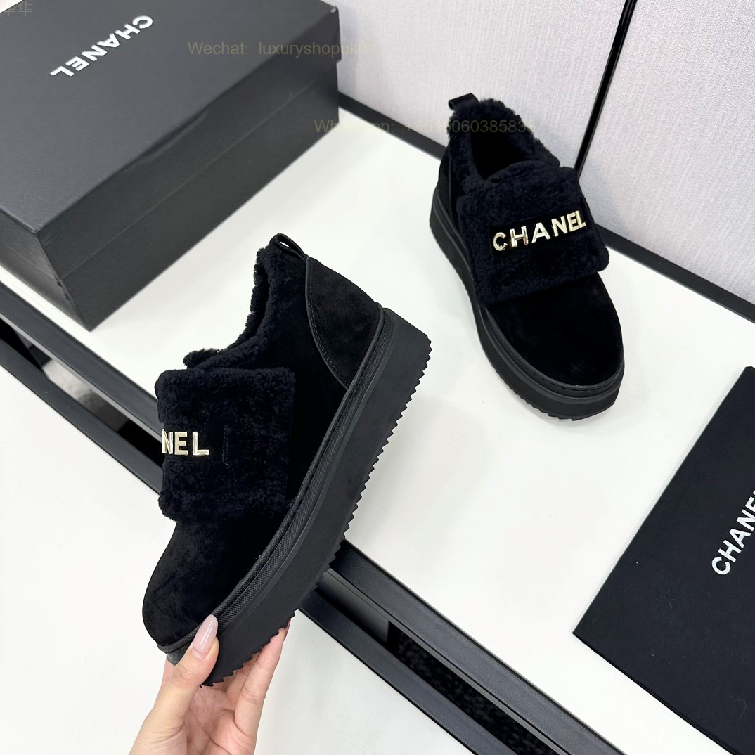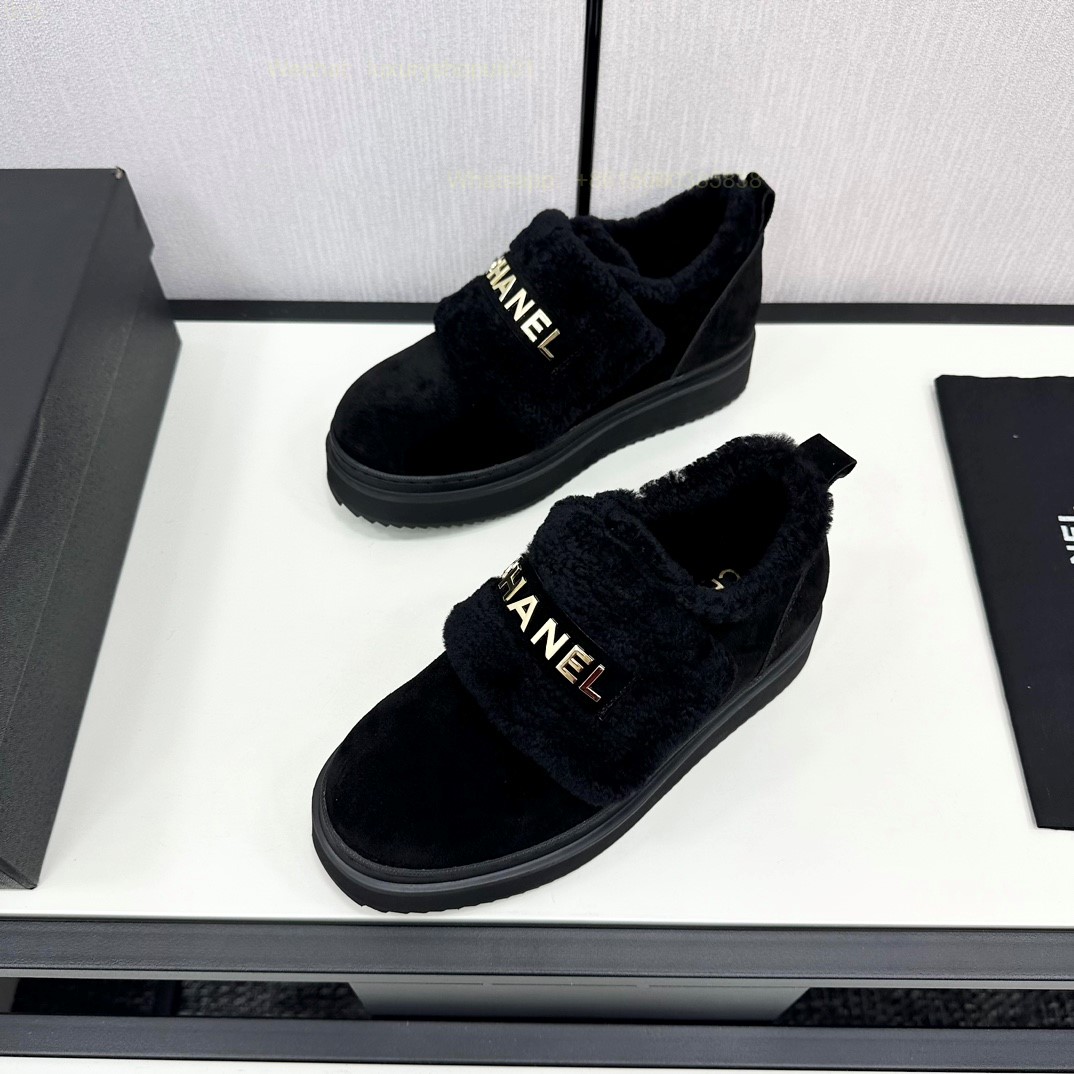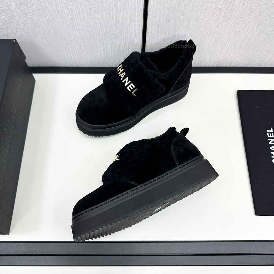 Chanel Fur Shearling Boots Flat Women Snow Shoes