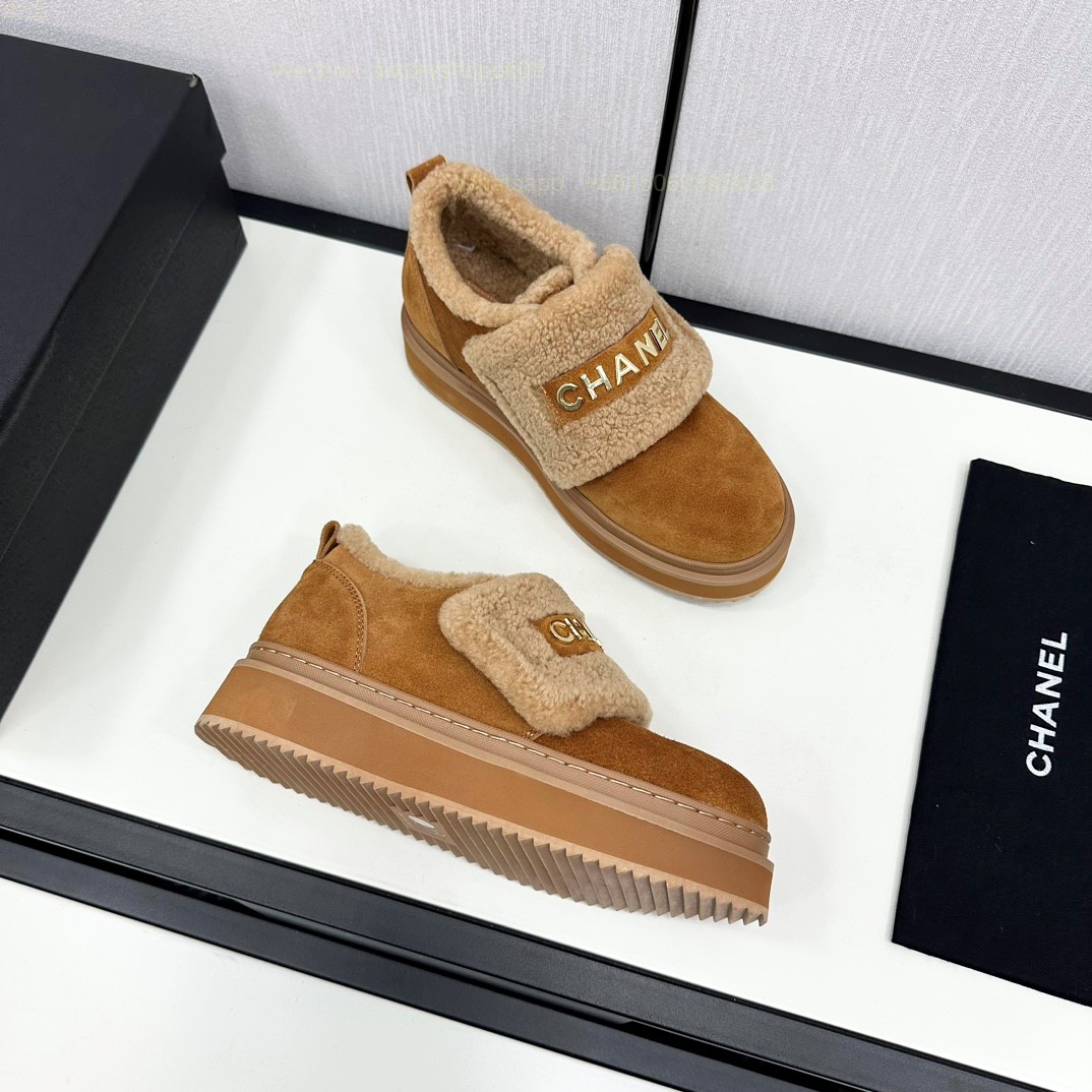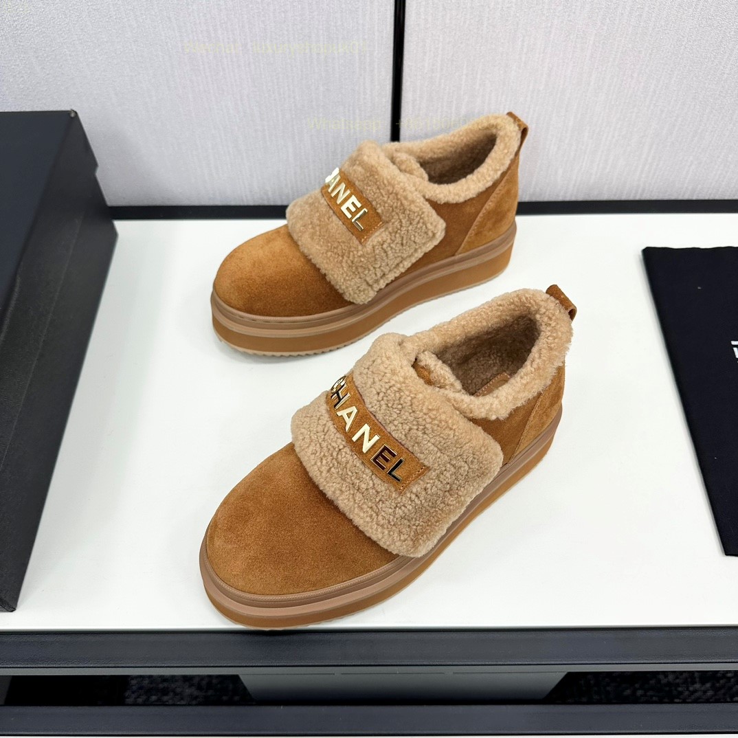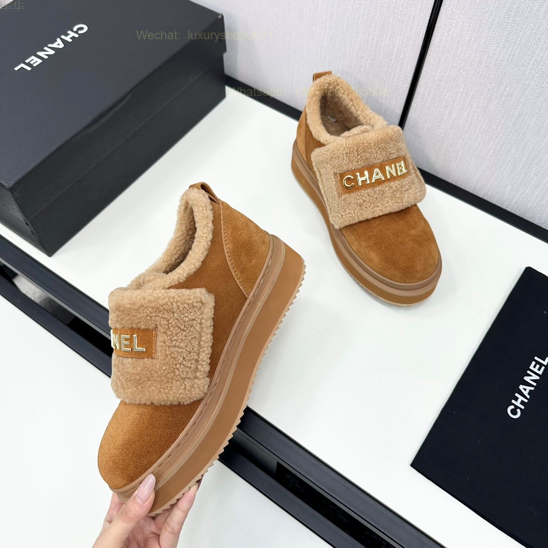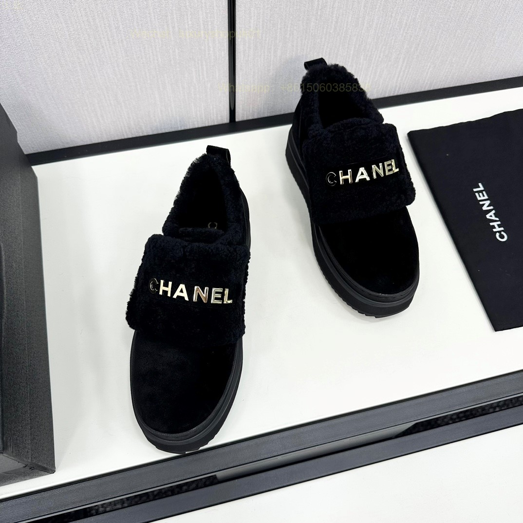 Chanel Fur Shearling Boots Flat Women Snow Shoes
