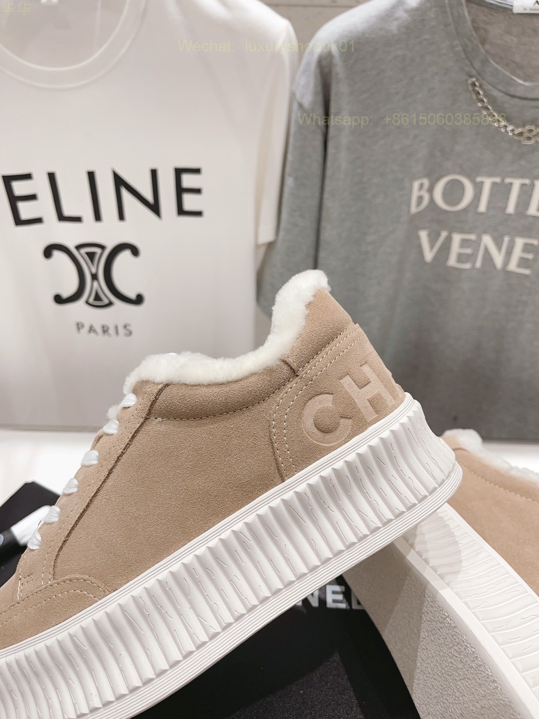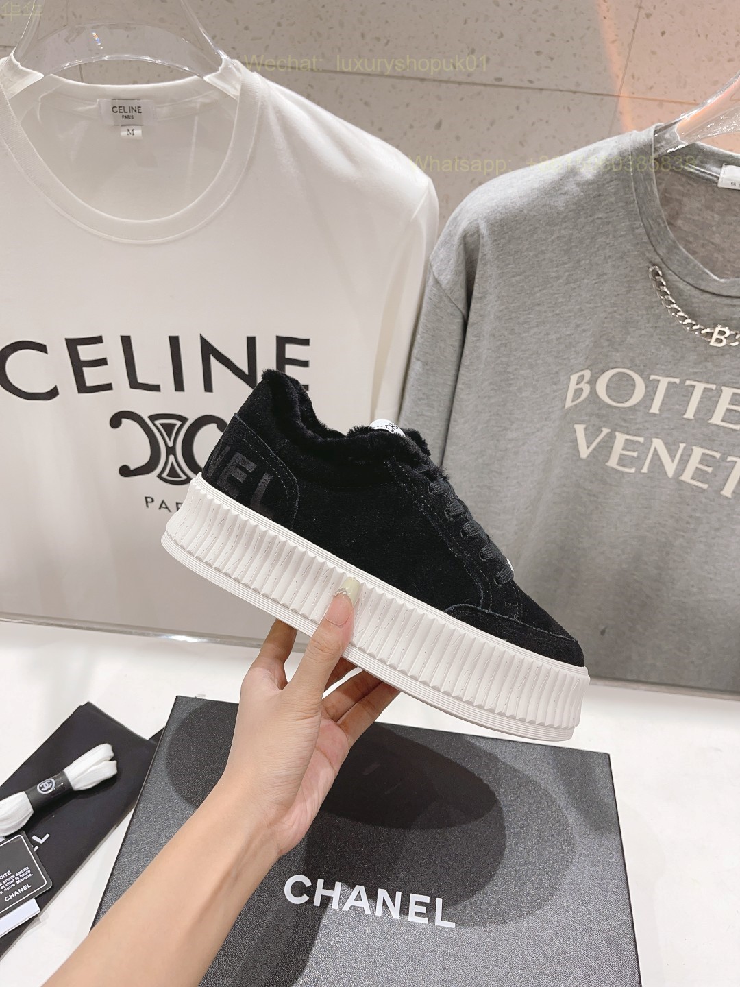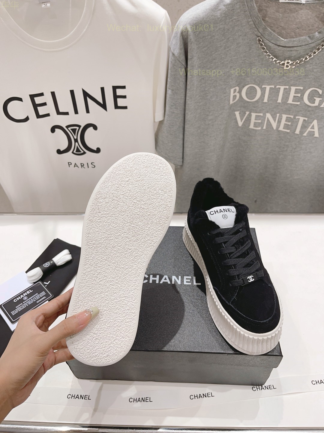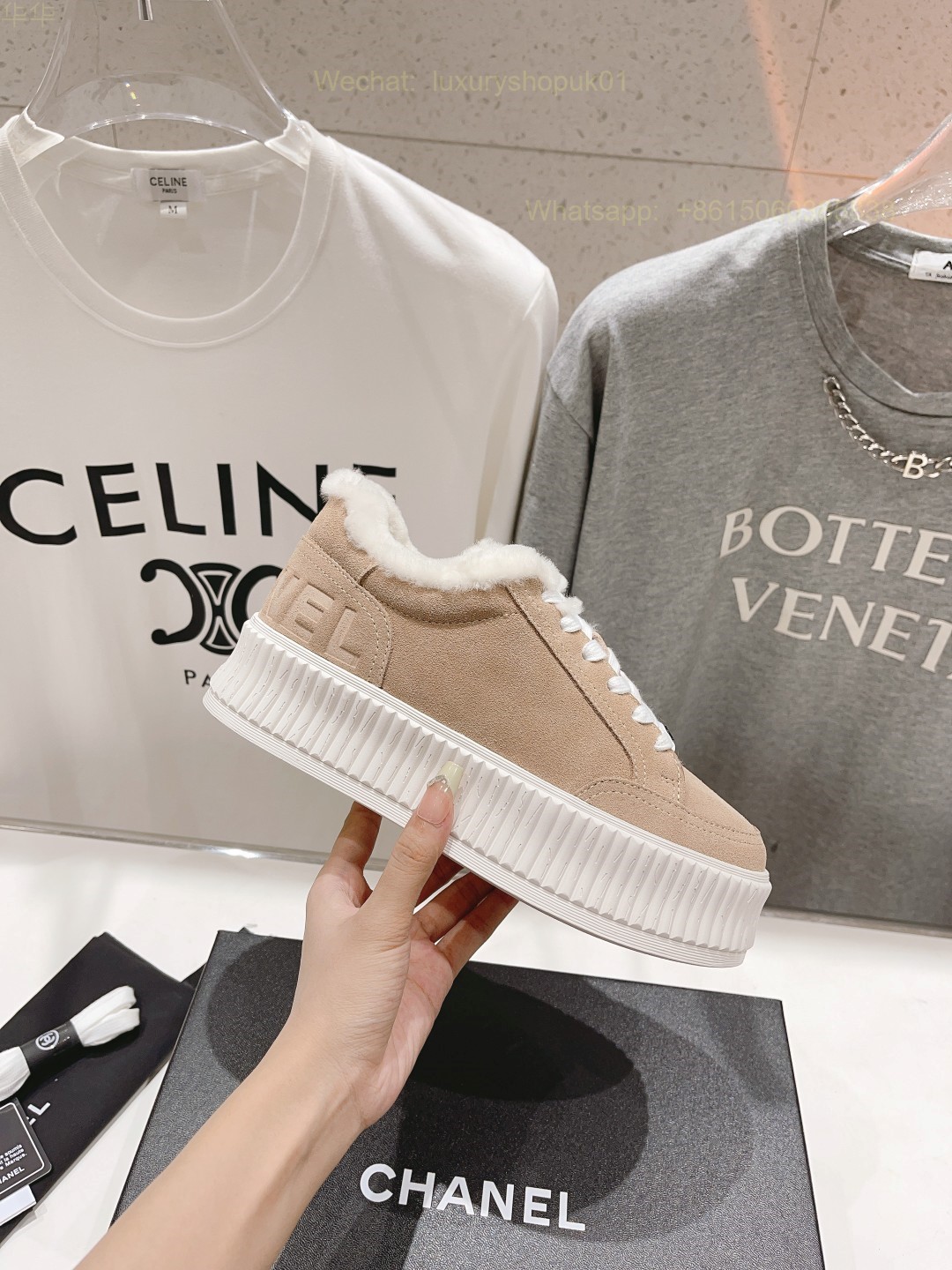 Chanel Fur Shearling Sneaker CC Logo Women Platform Shoes