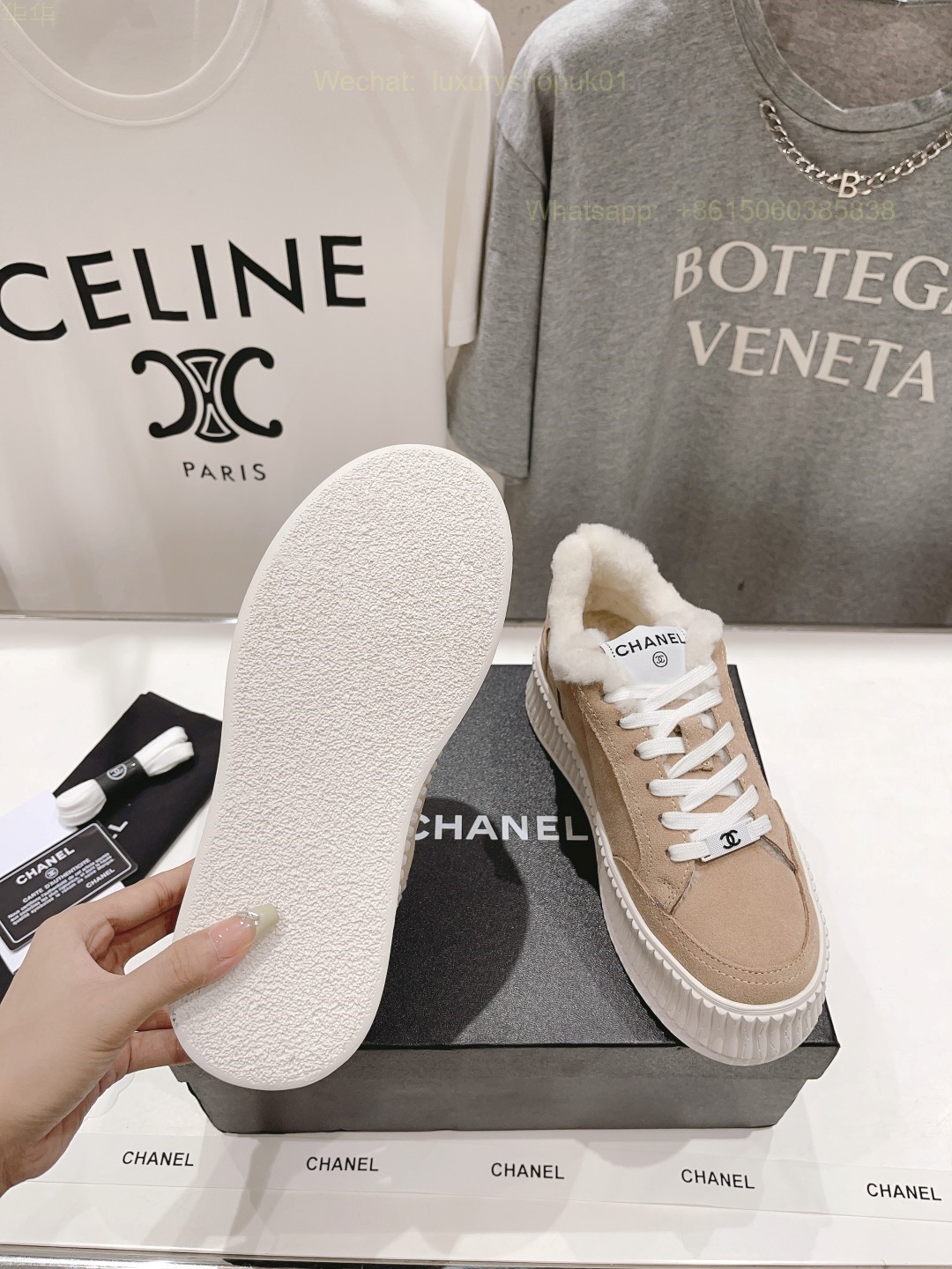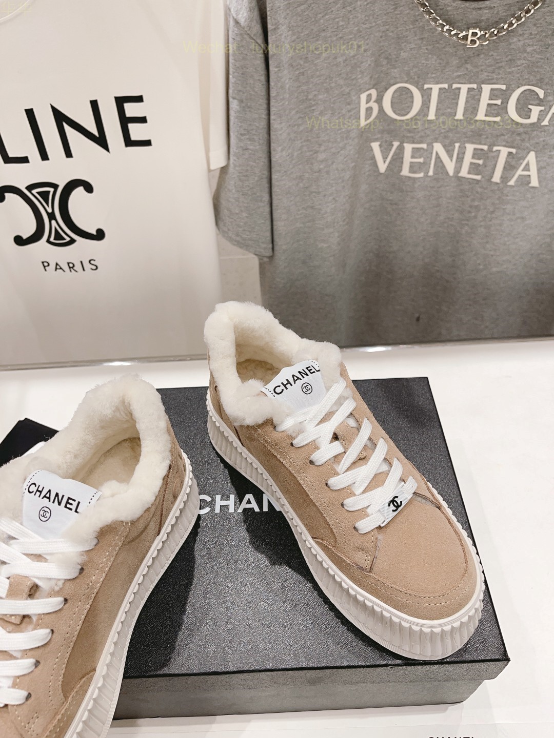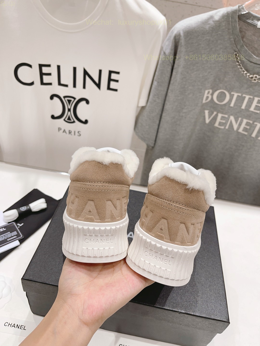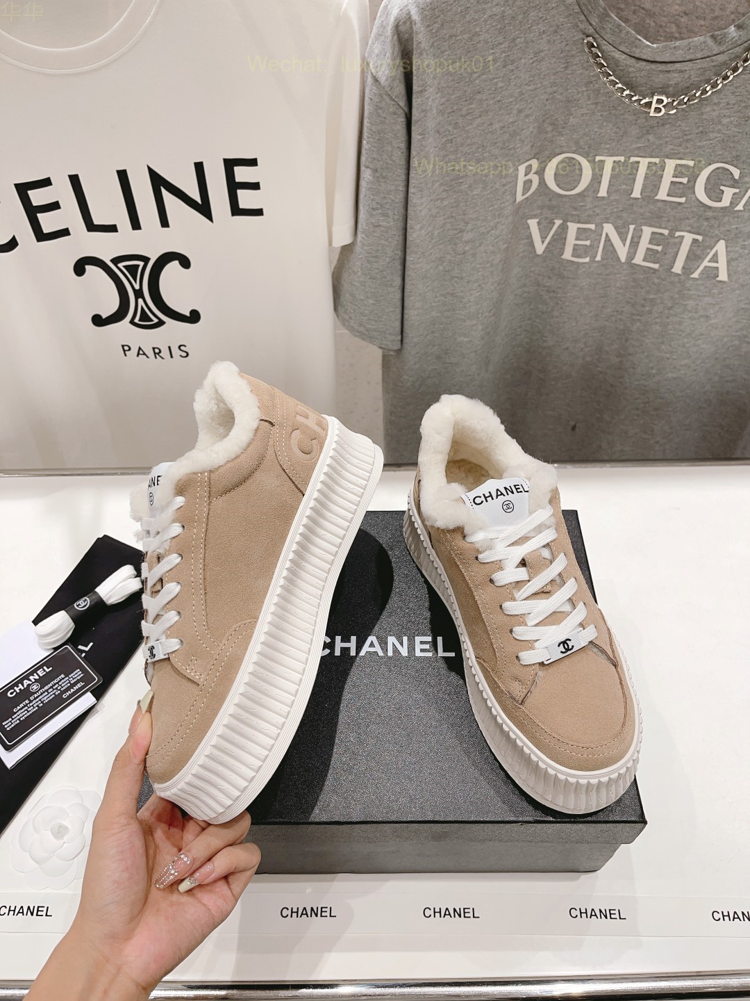 Chanel Fur Shearling Sneaker CC Logo Women Platform Shoes