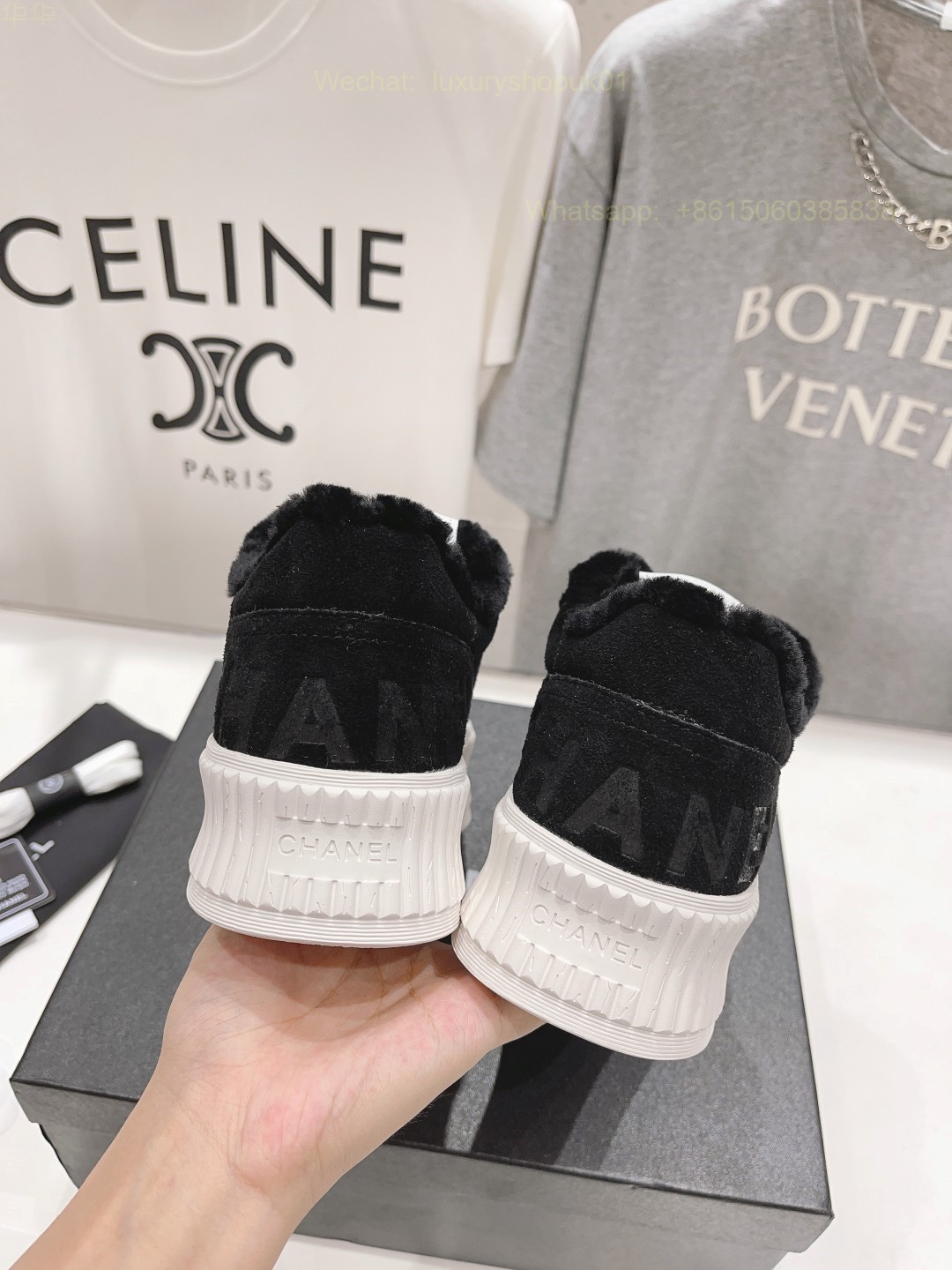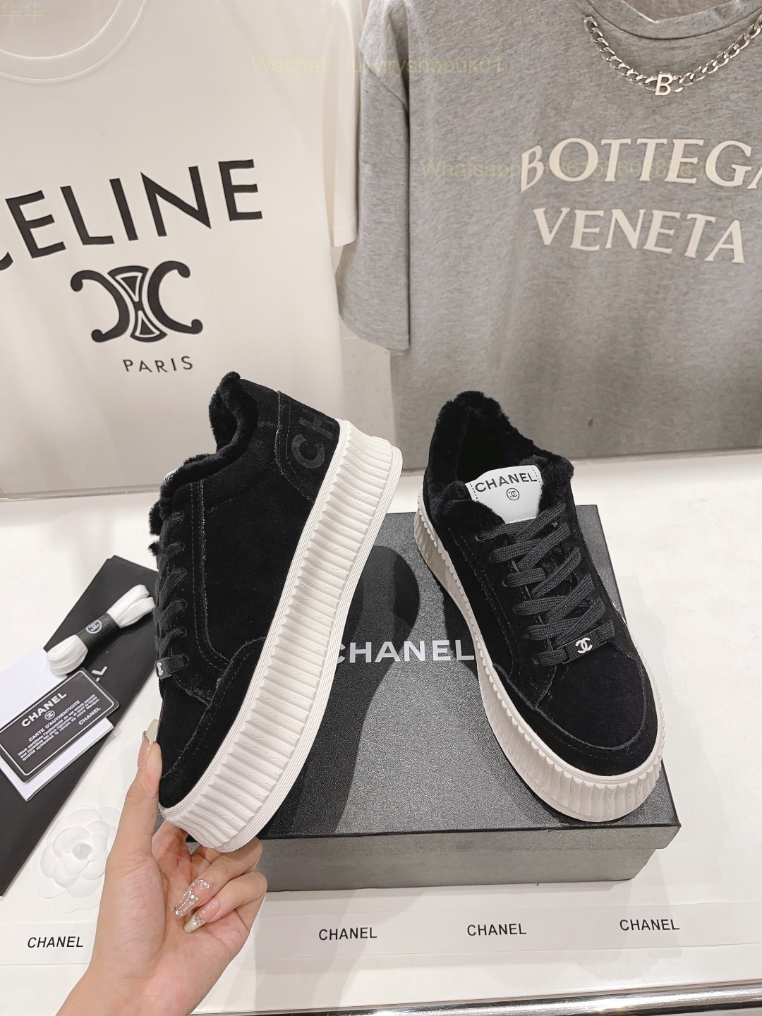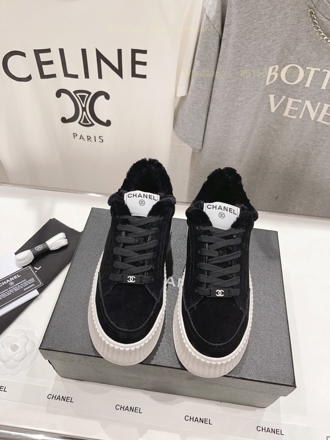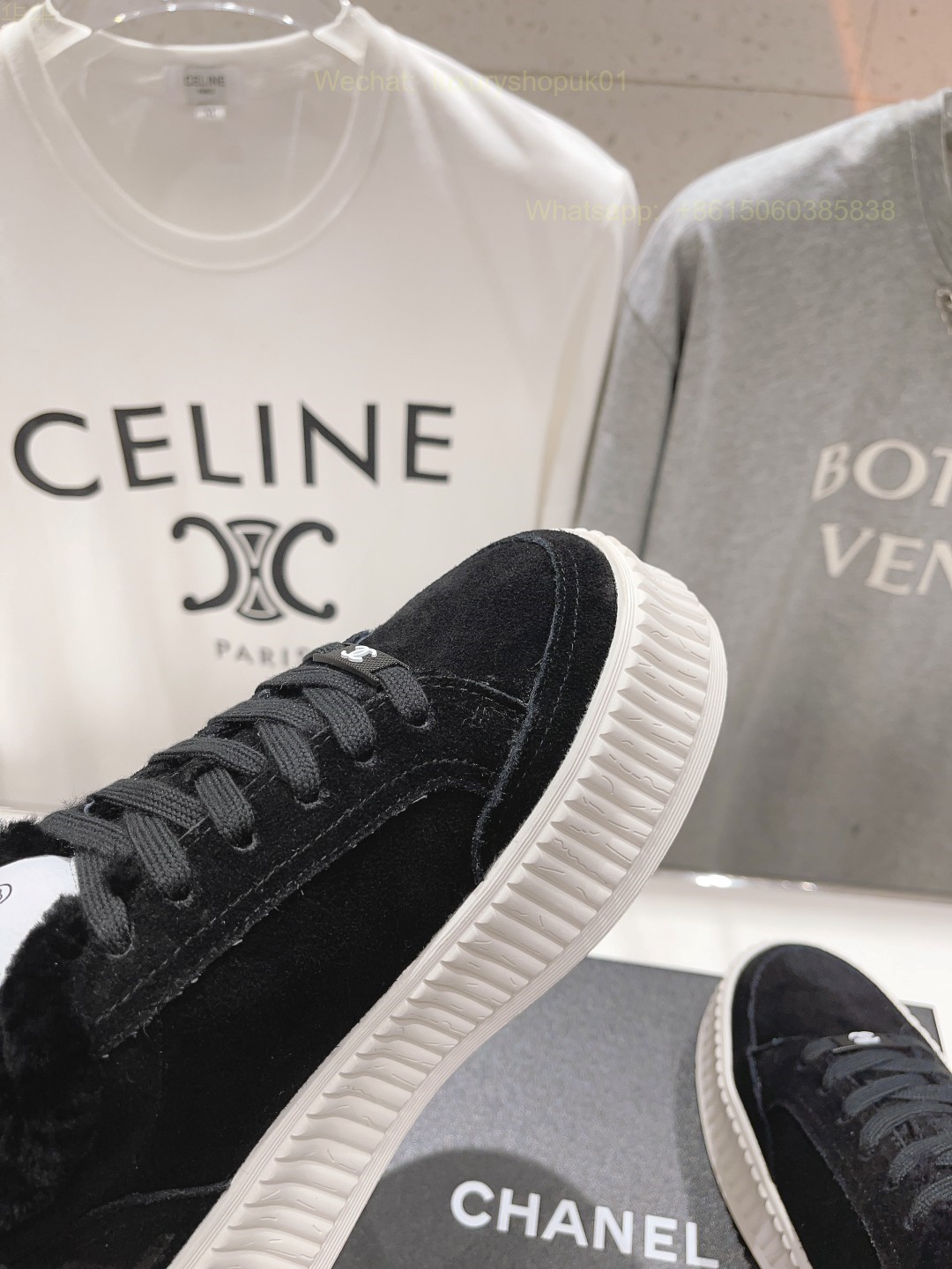 Chanel Fur Shearling Sneaker CC Logo Women Platform Shoes