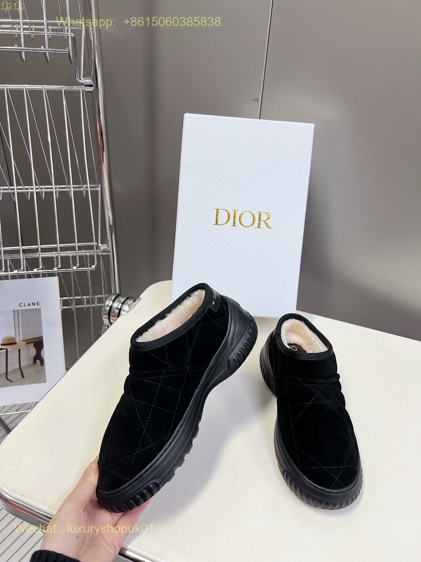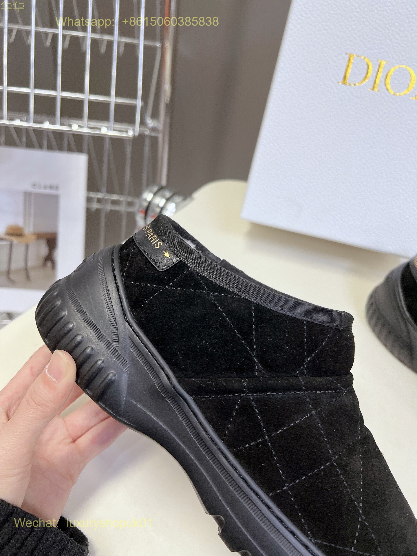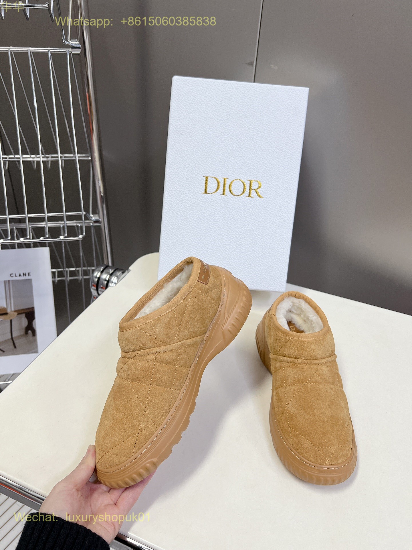 Dior Chez Moi Oblique Slip on fur shearling flat slipper Women snow Shoes