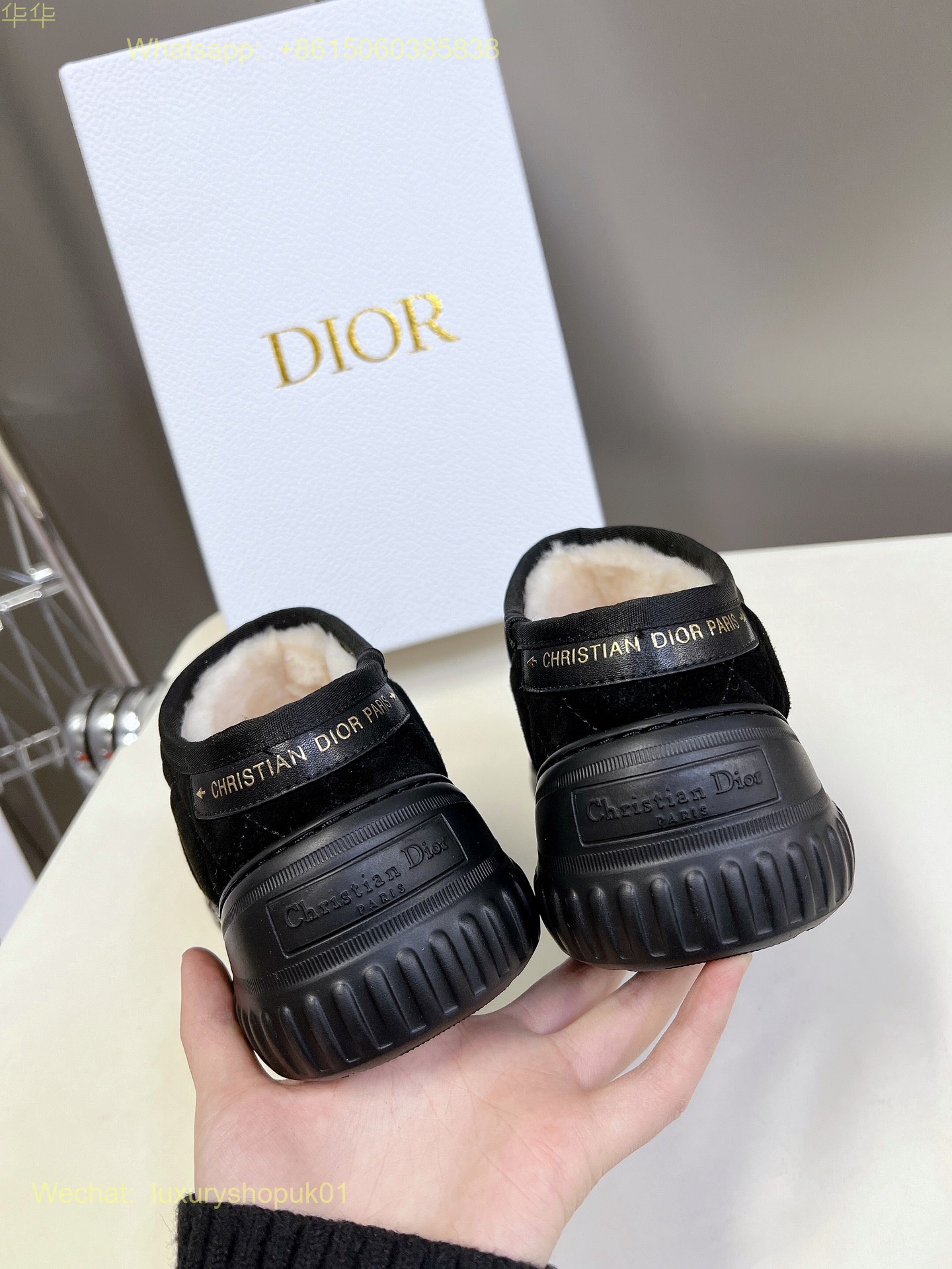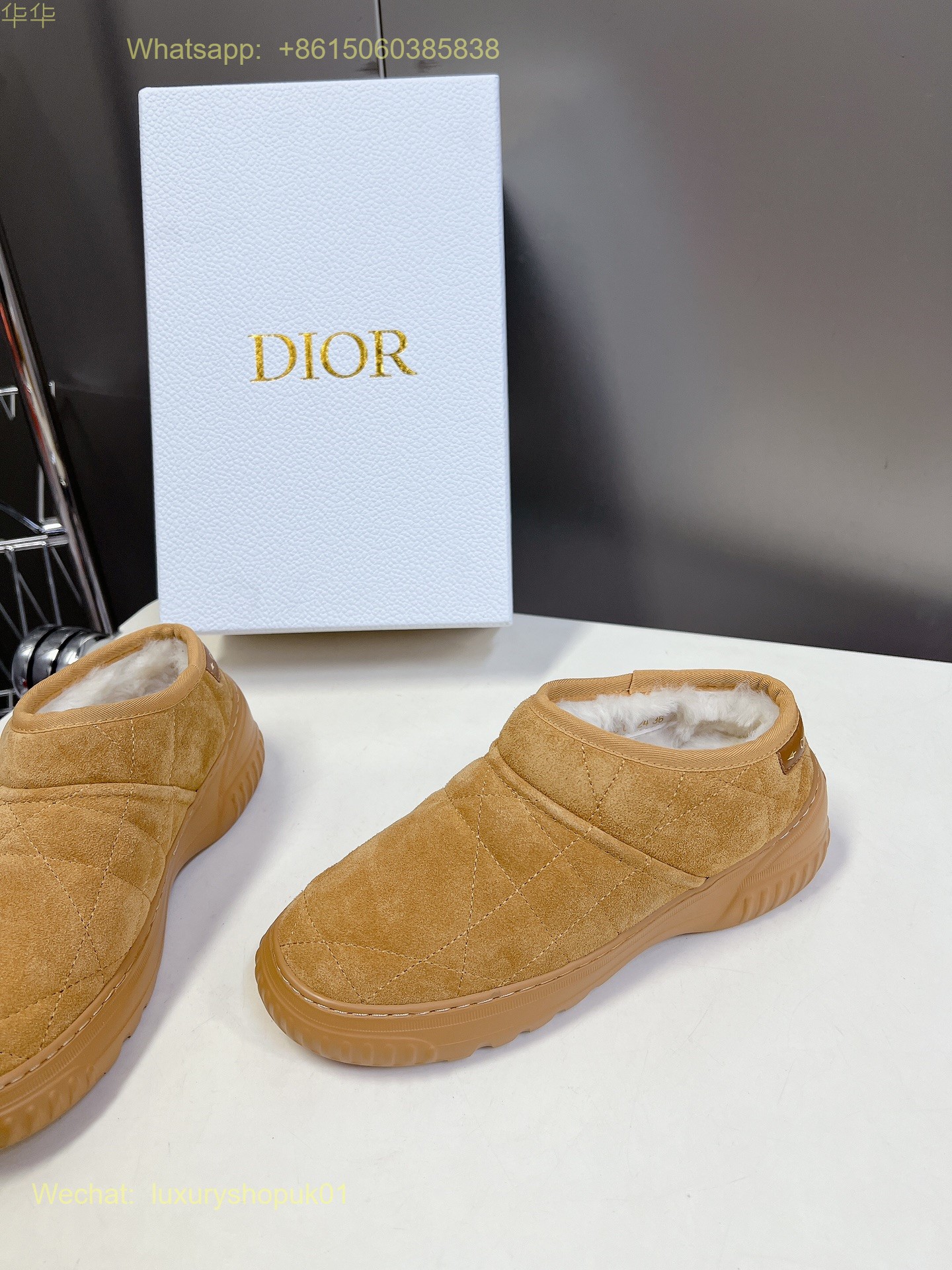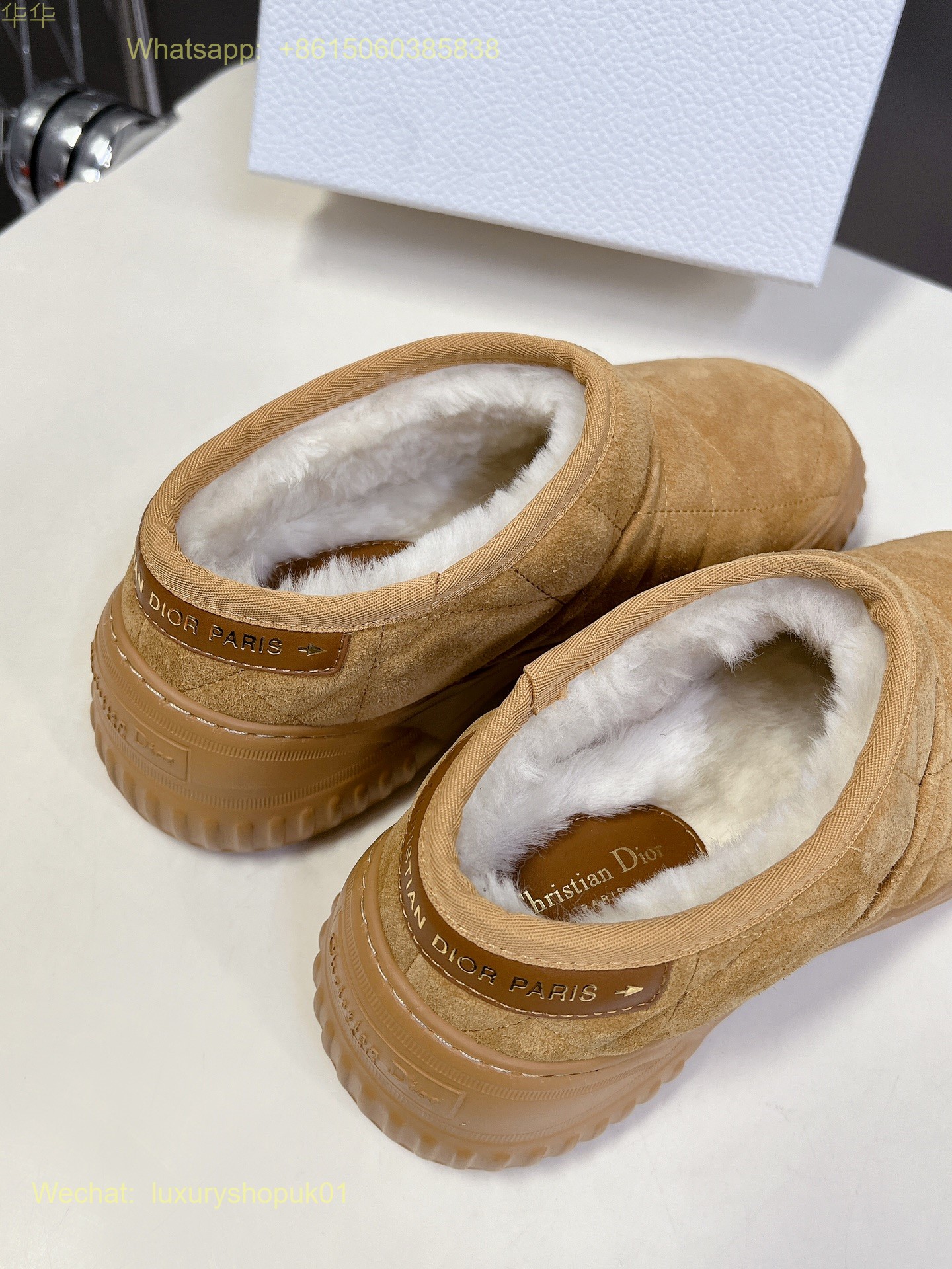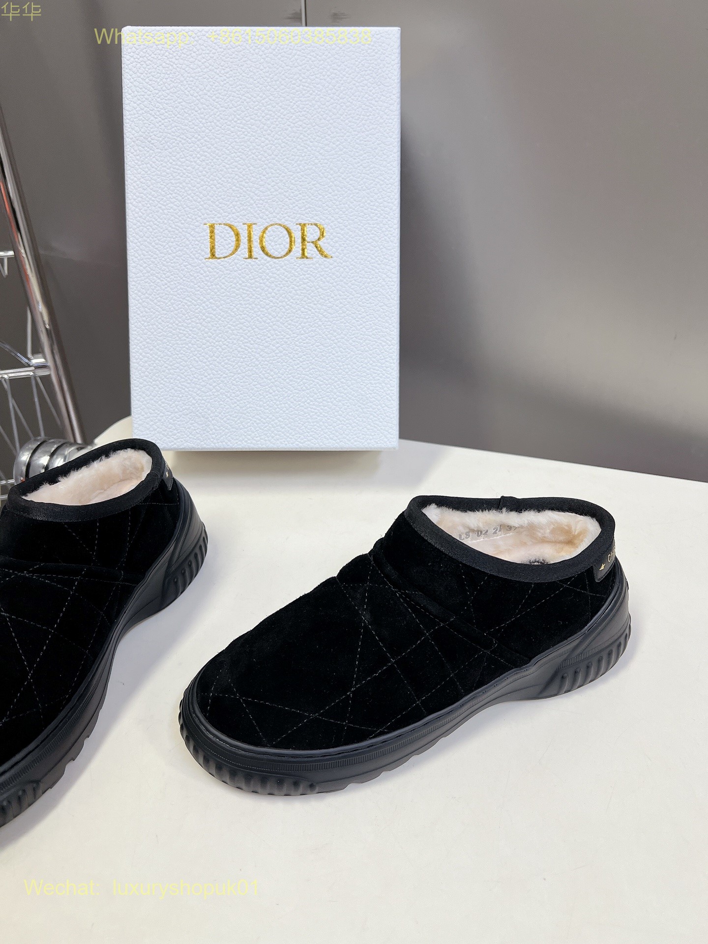 Dior Chez Moi Oblique Slip on fur shearling flat slipper Women snow Shoes