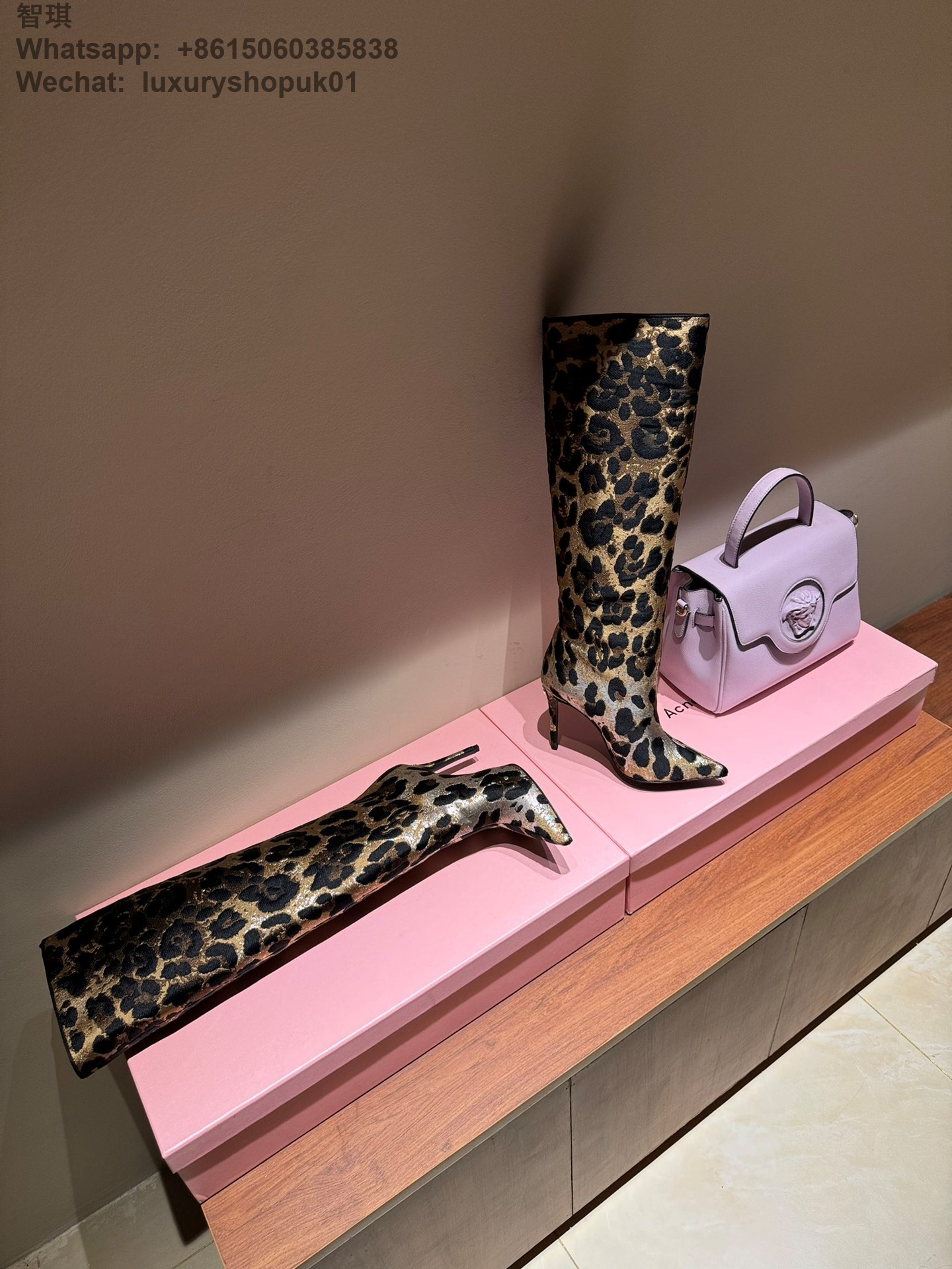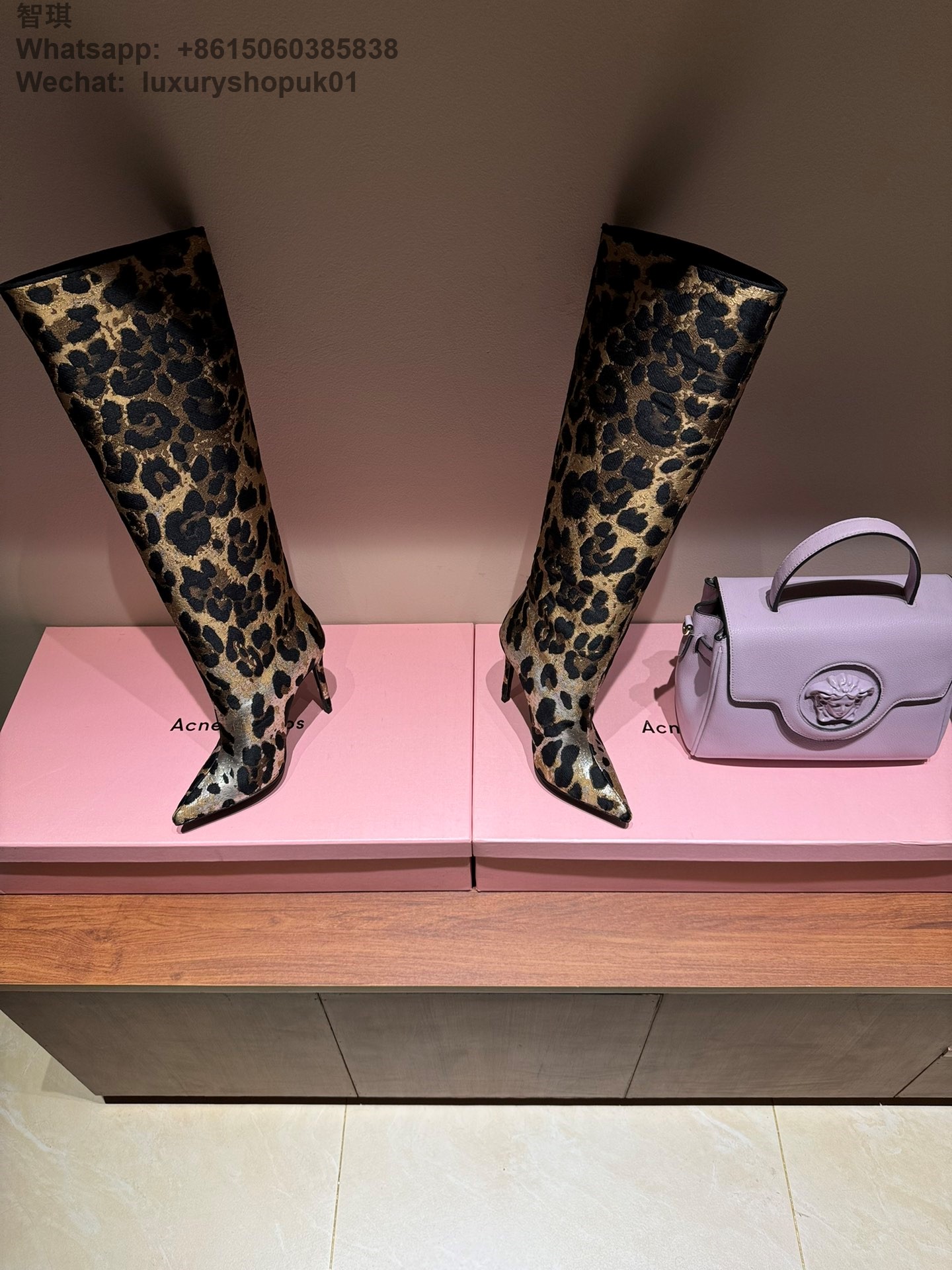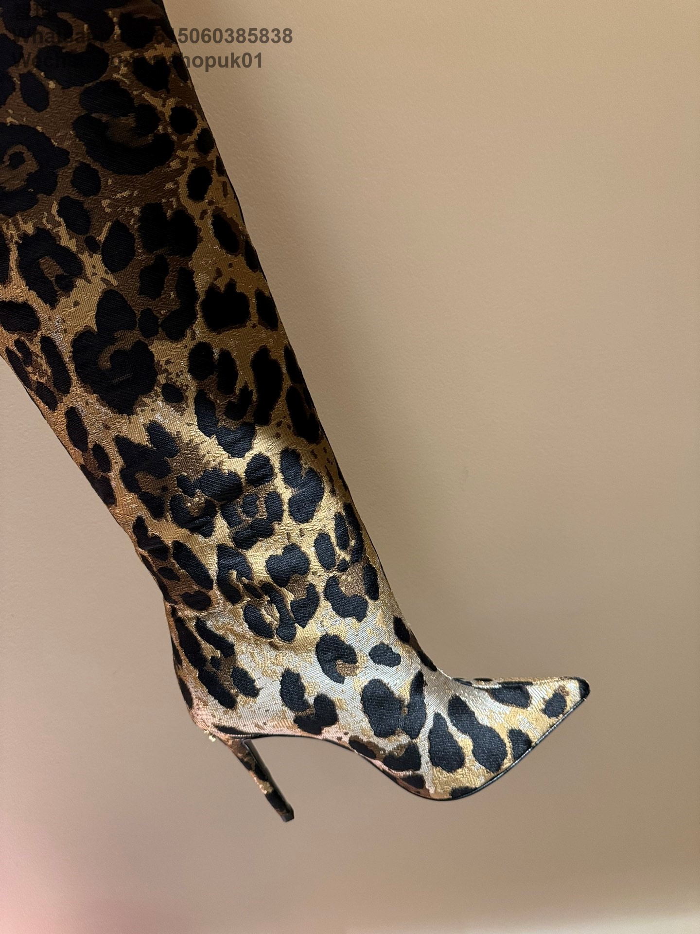 Dolce & Gabbana Leopard Jacquard Stiletto Knee-High Boot DG Women Shoes