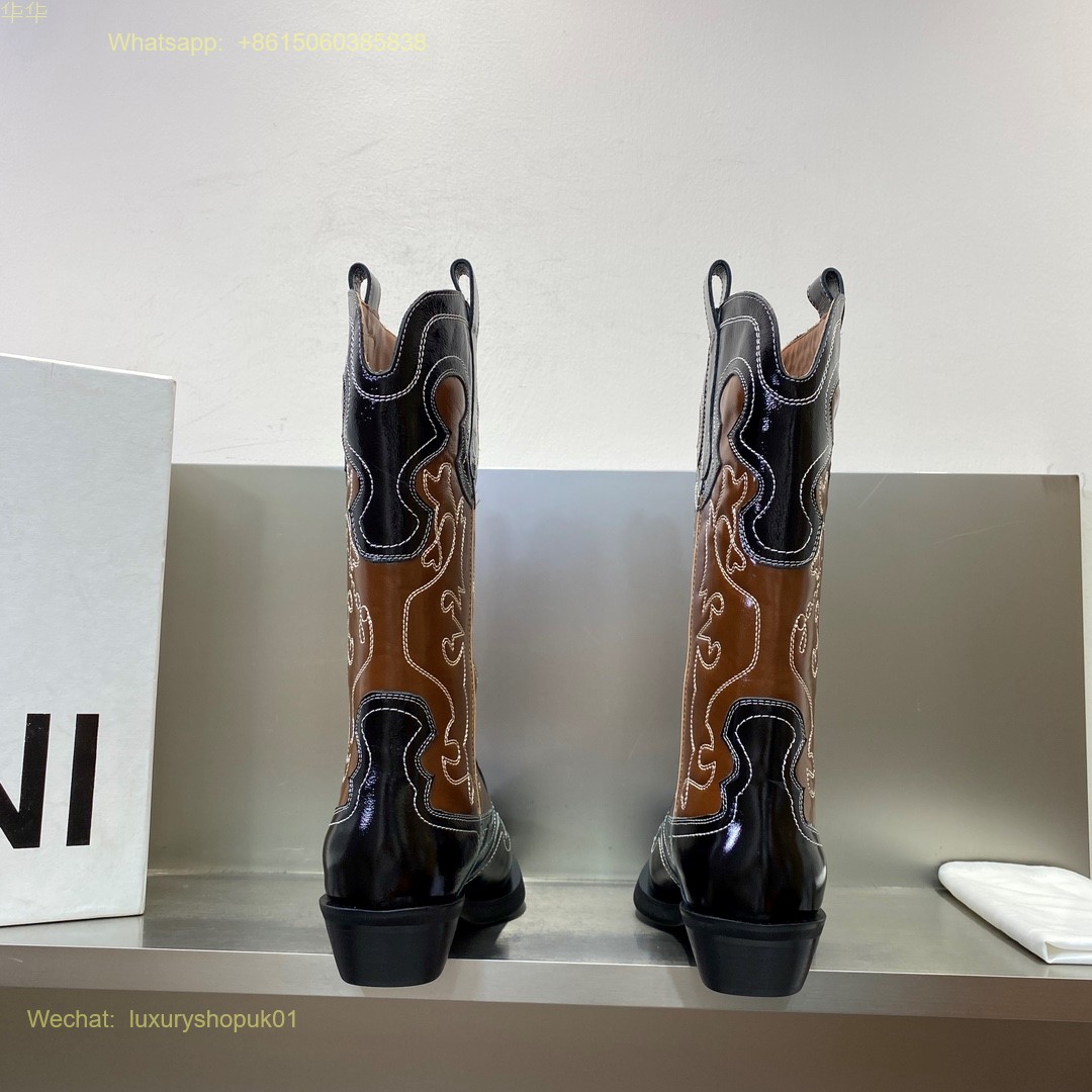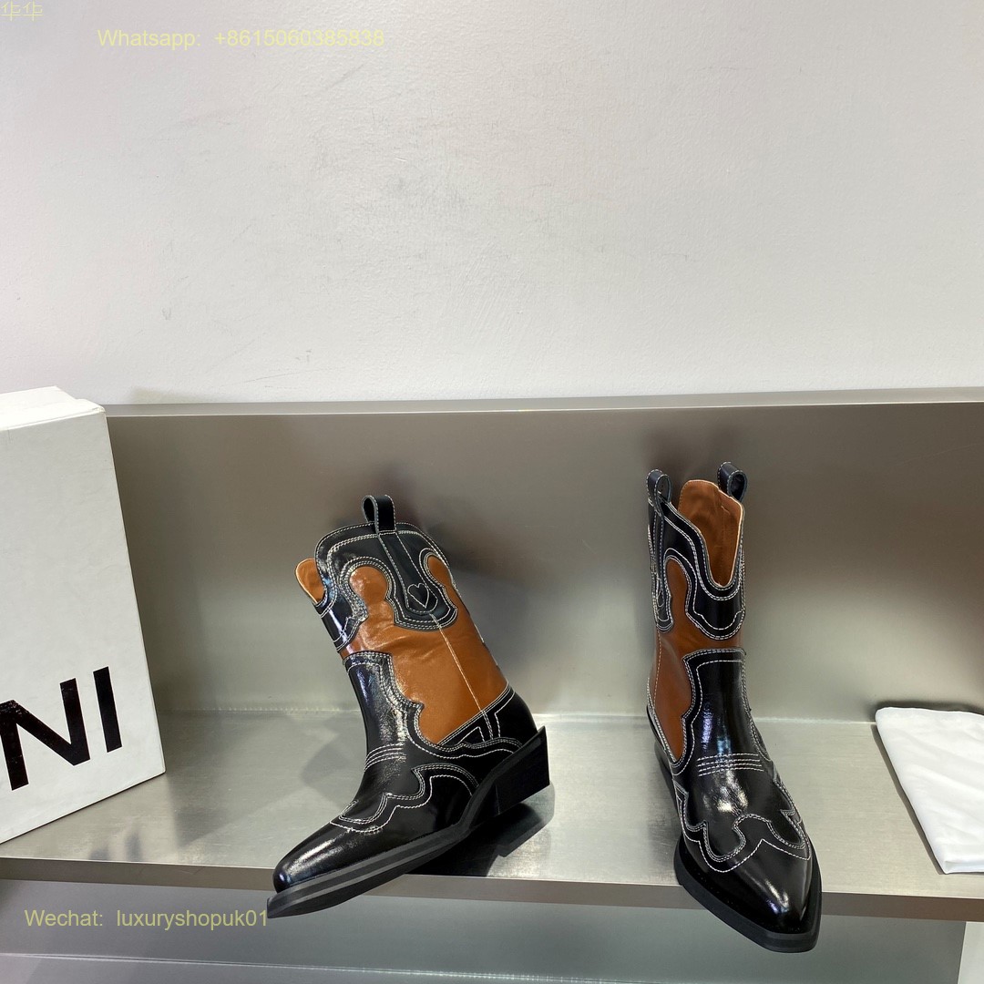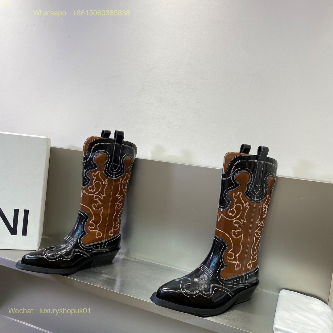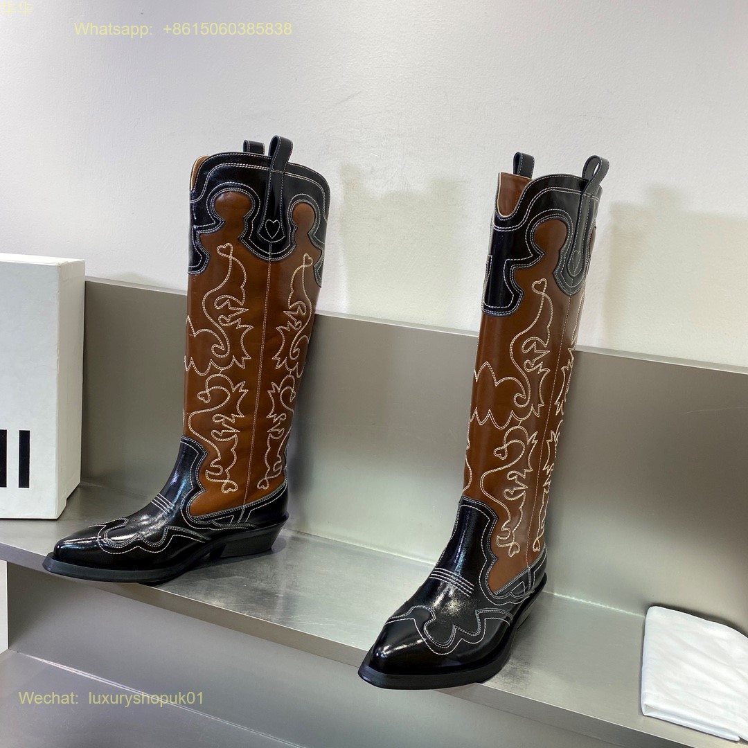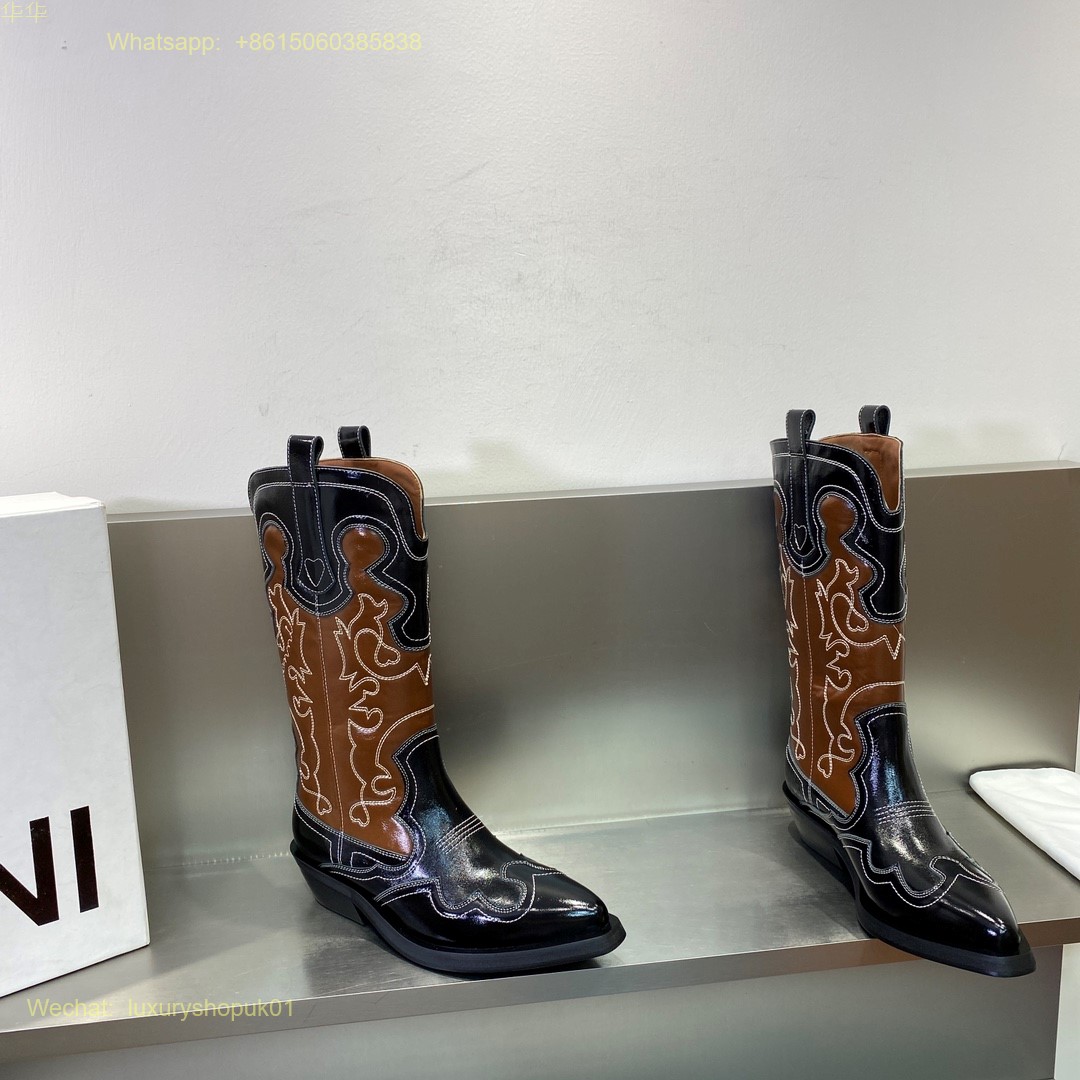 GANNI Leather cowboy boots pointed toe Women Shoes