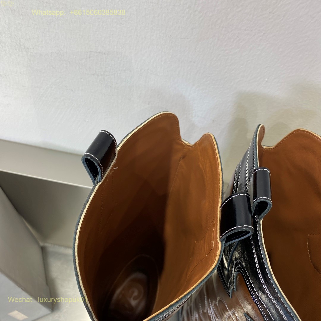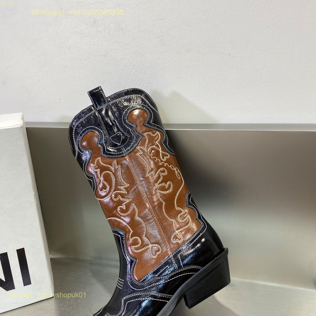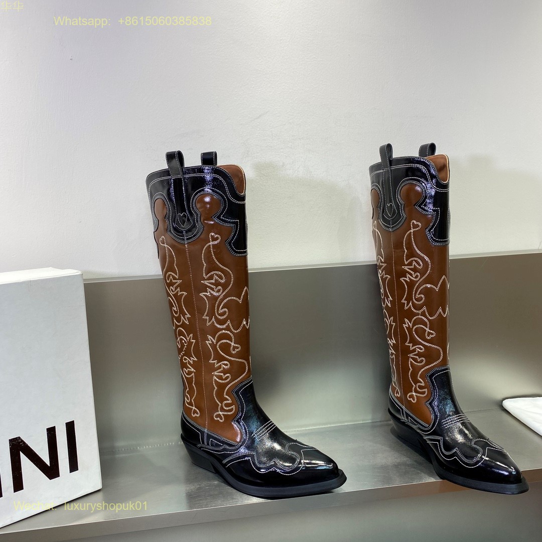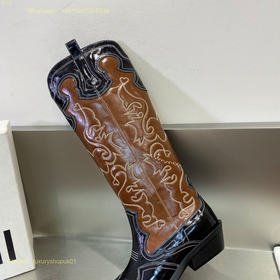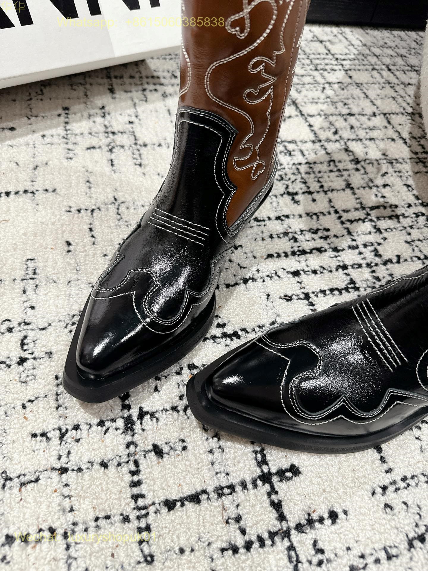 GANNI Leather cowboy boots pointed toe Women Shoes