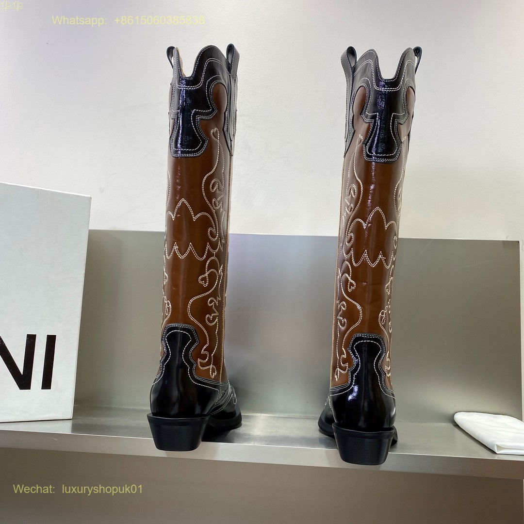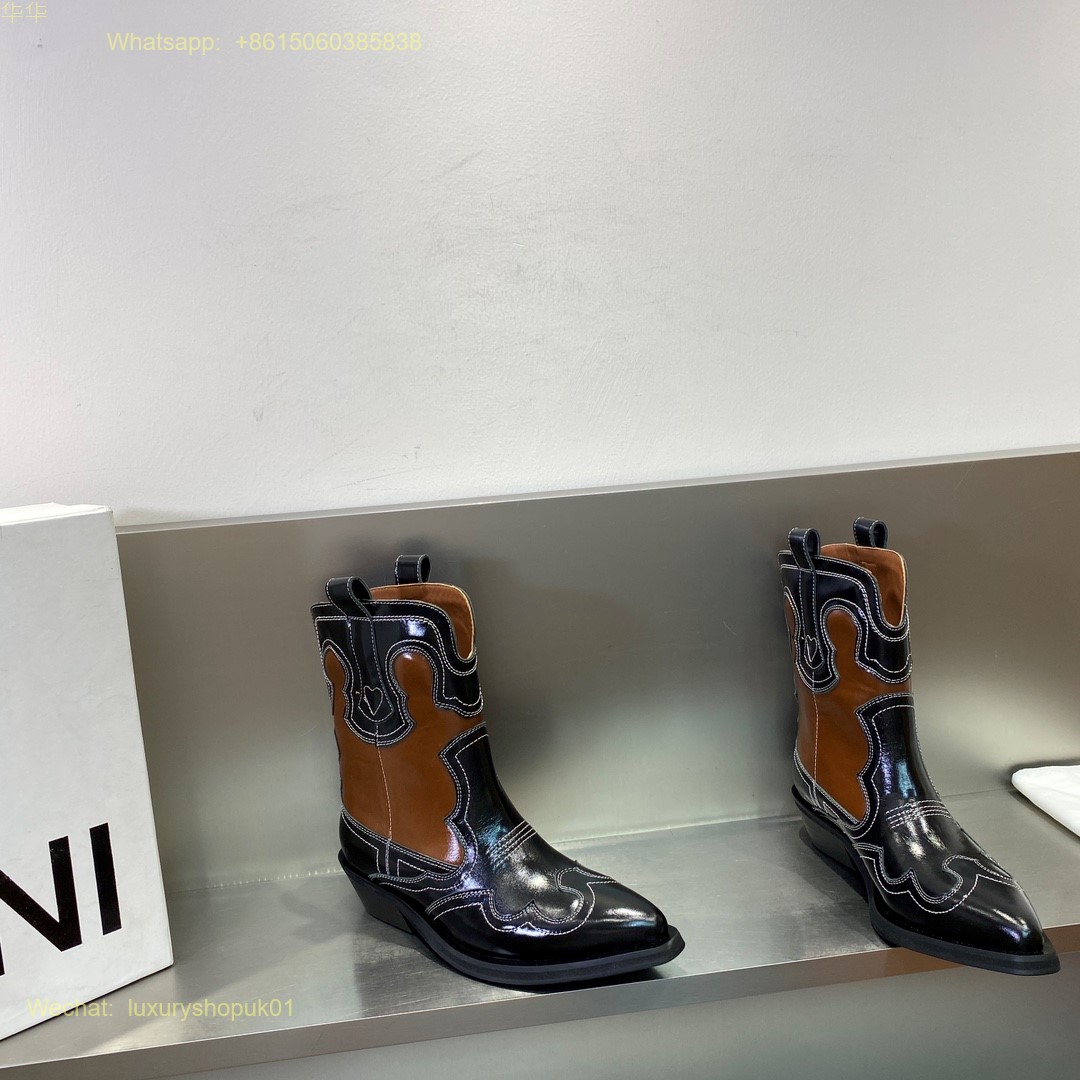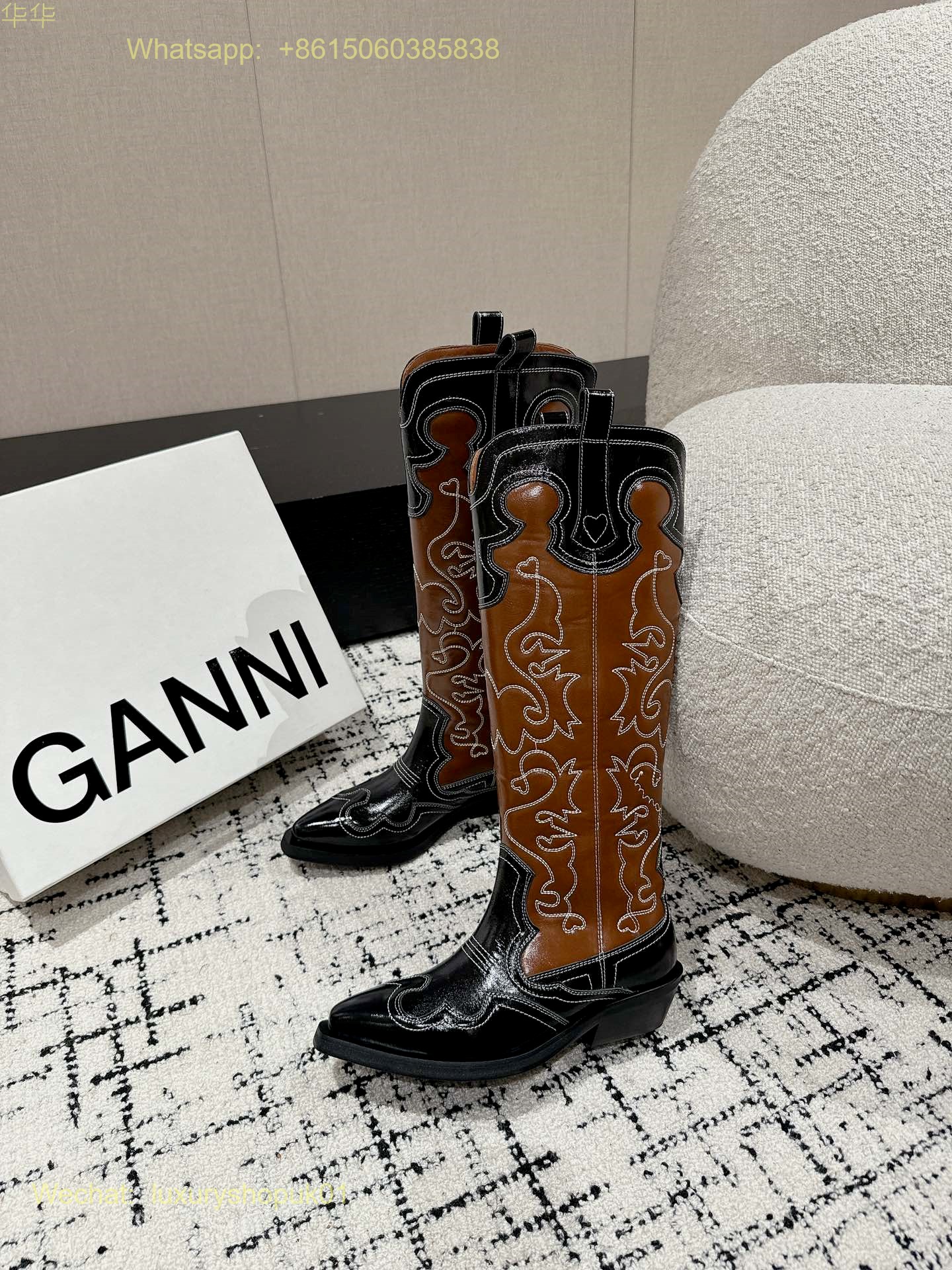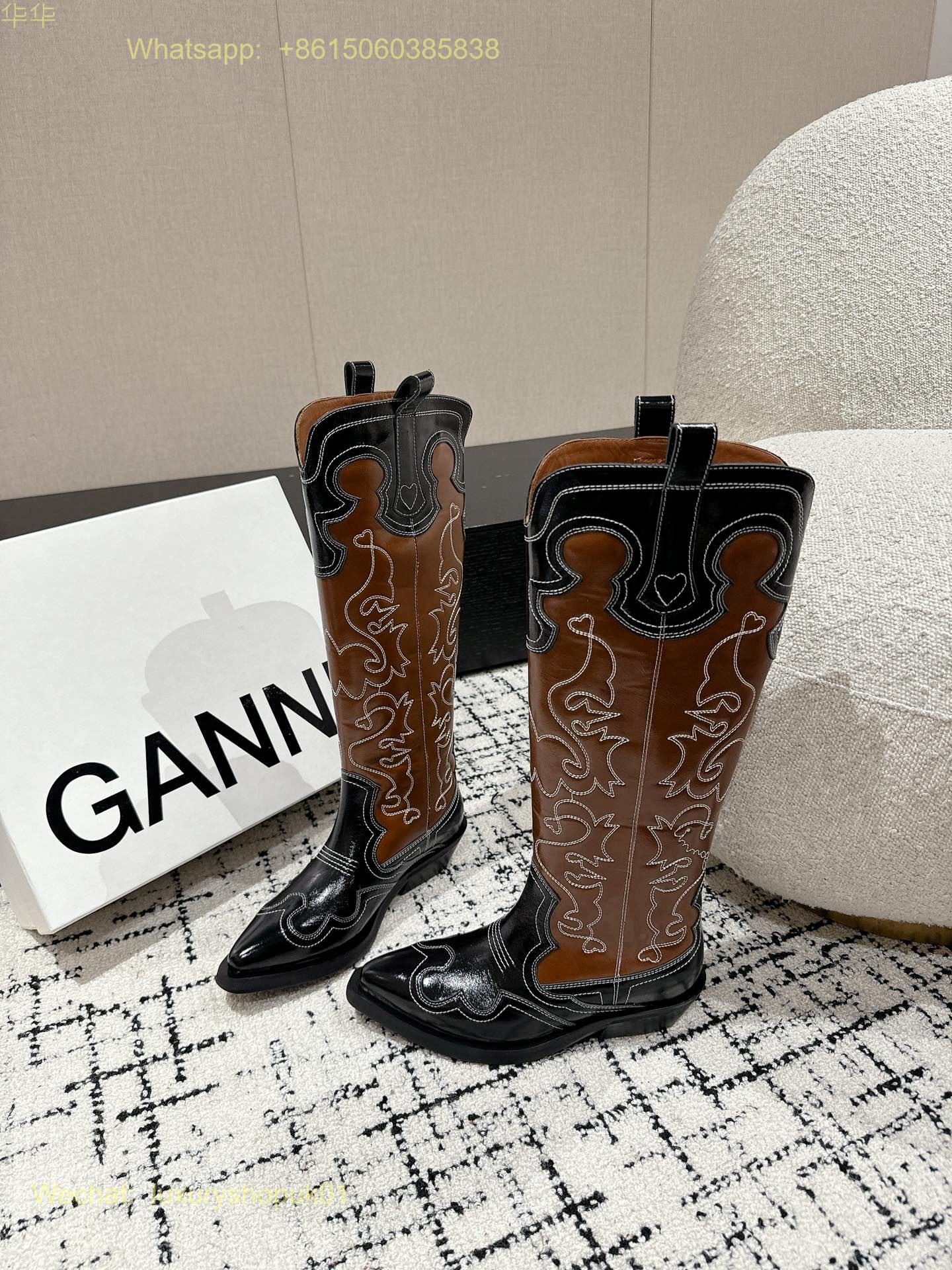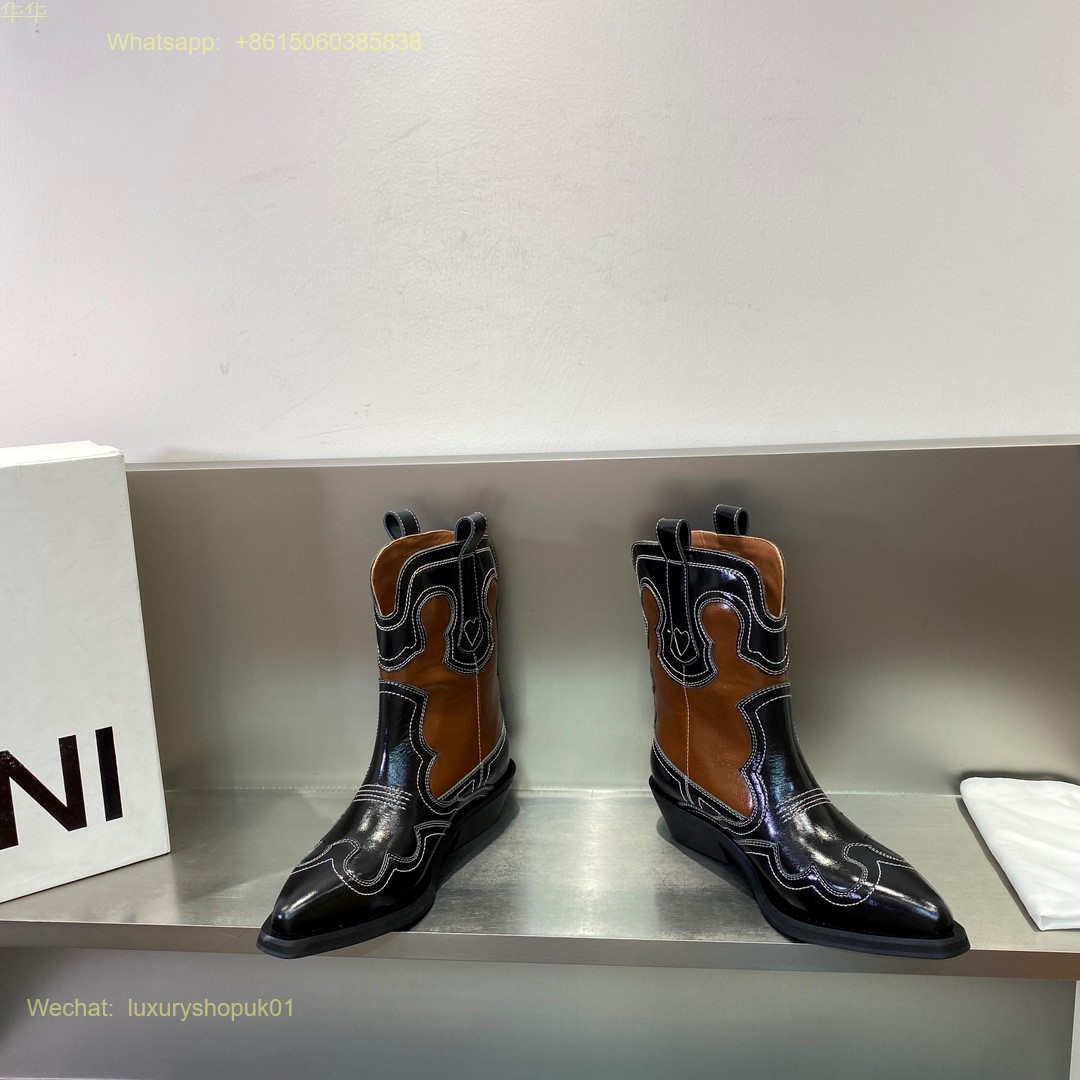 GANNI Leather cowboy boots pointed toe Women Shoes