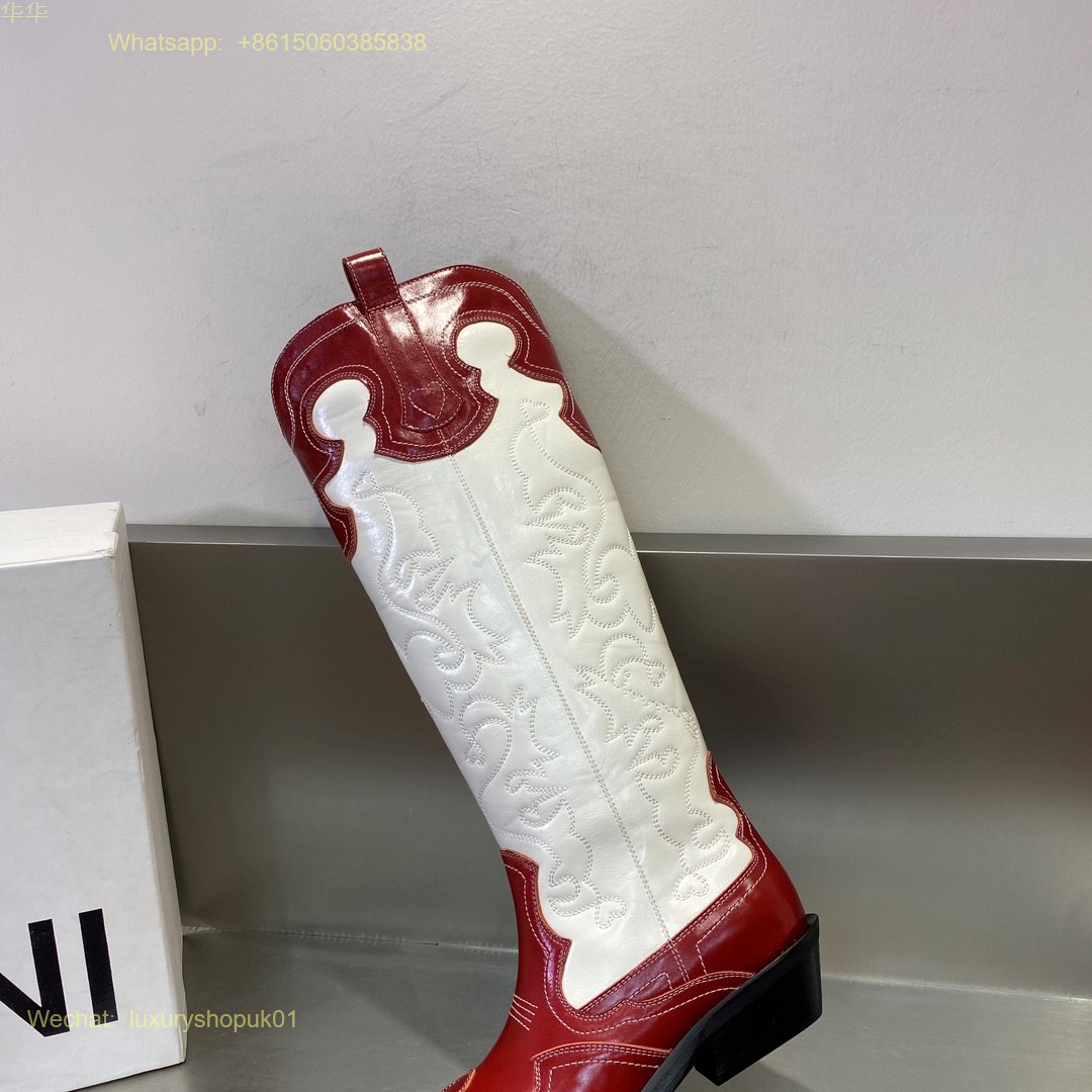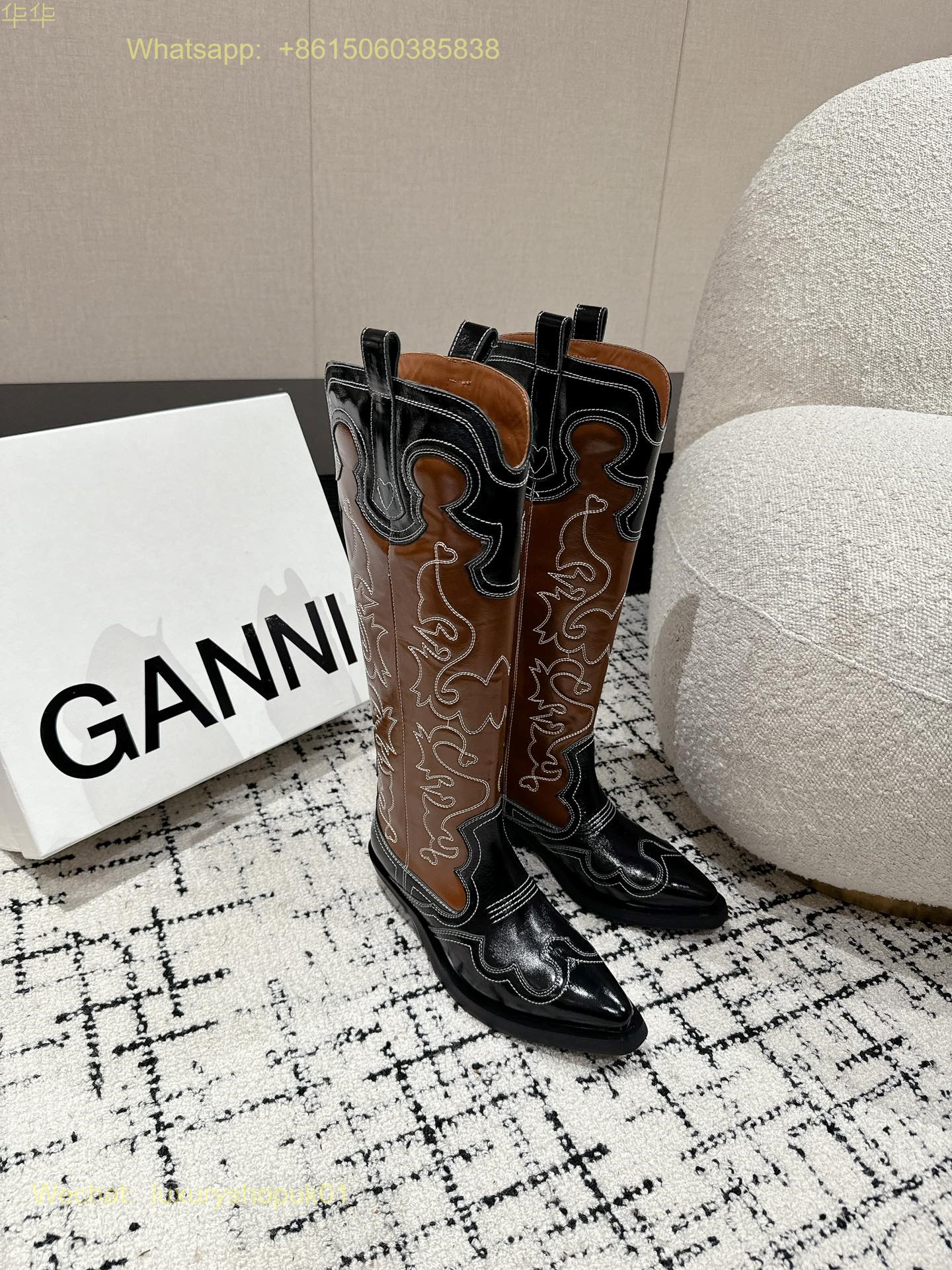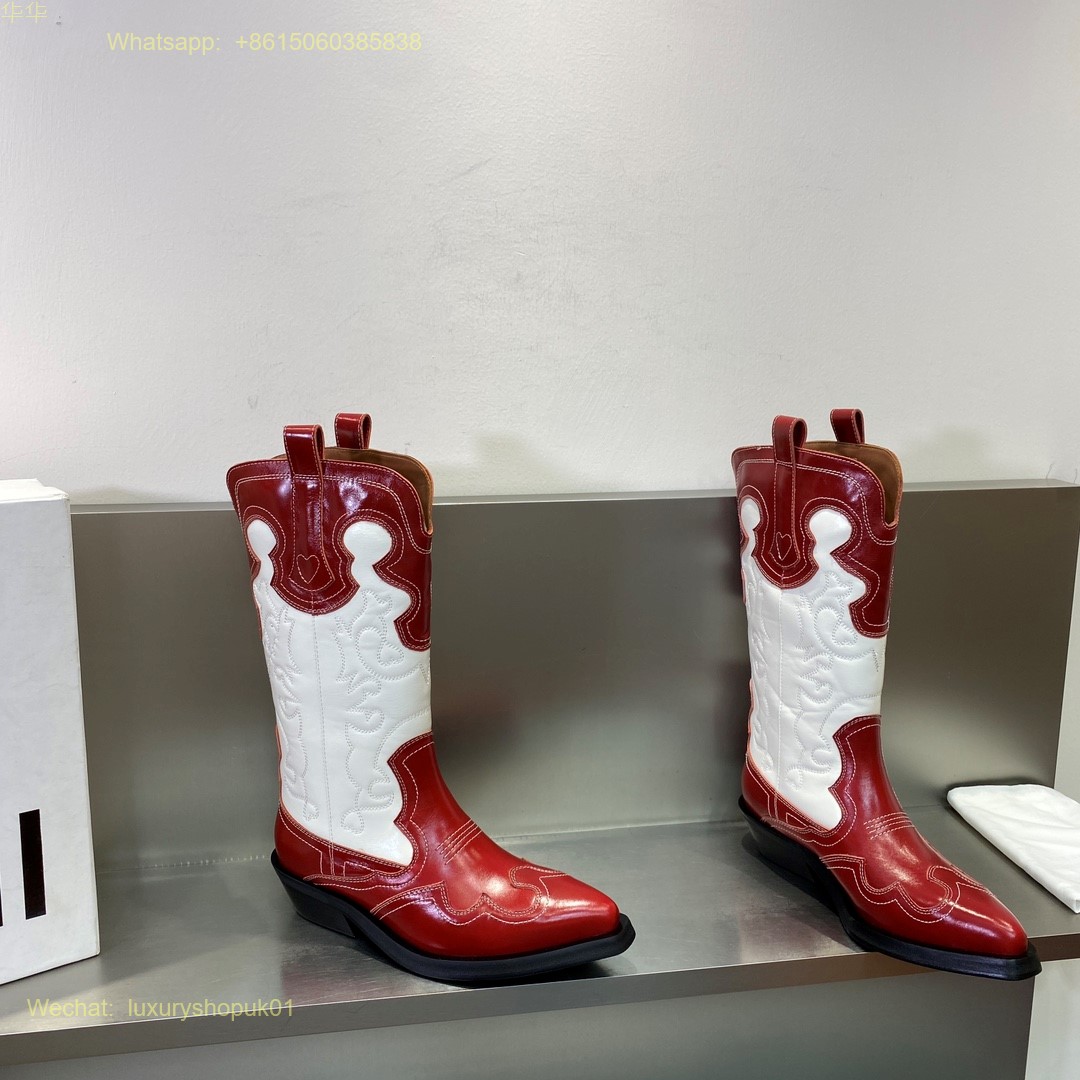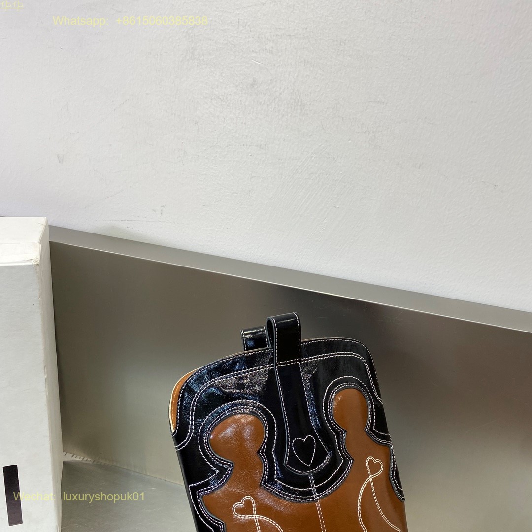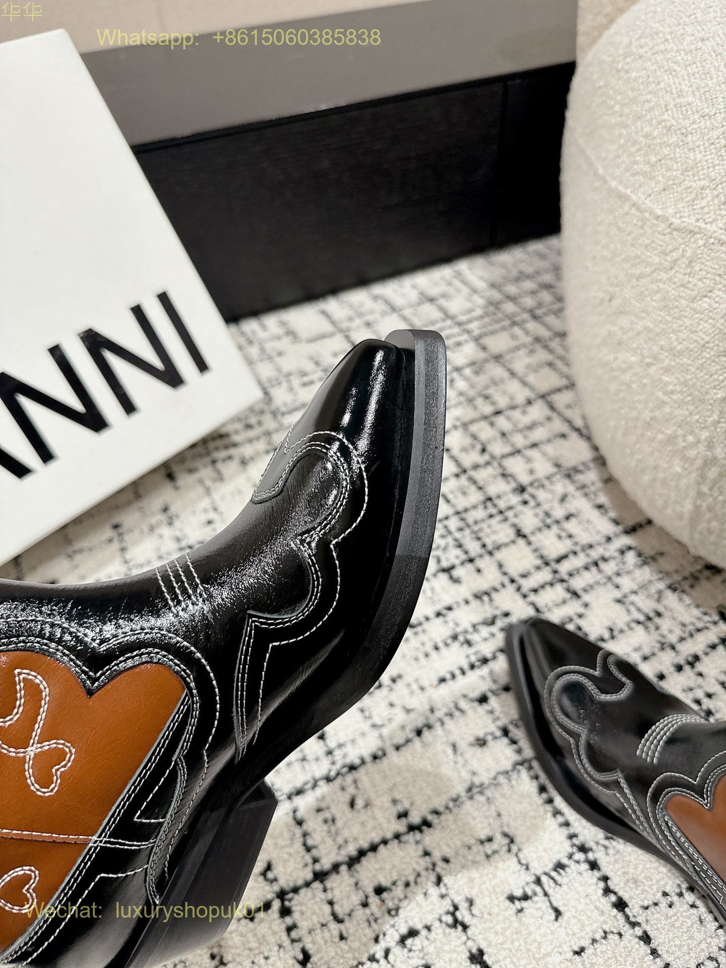 GANNI Leather cowboy boots pointed toe Women Shoes