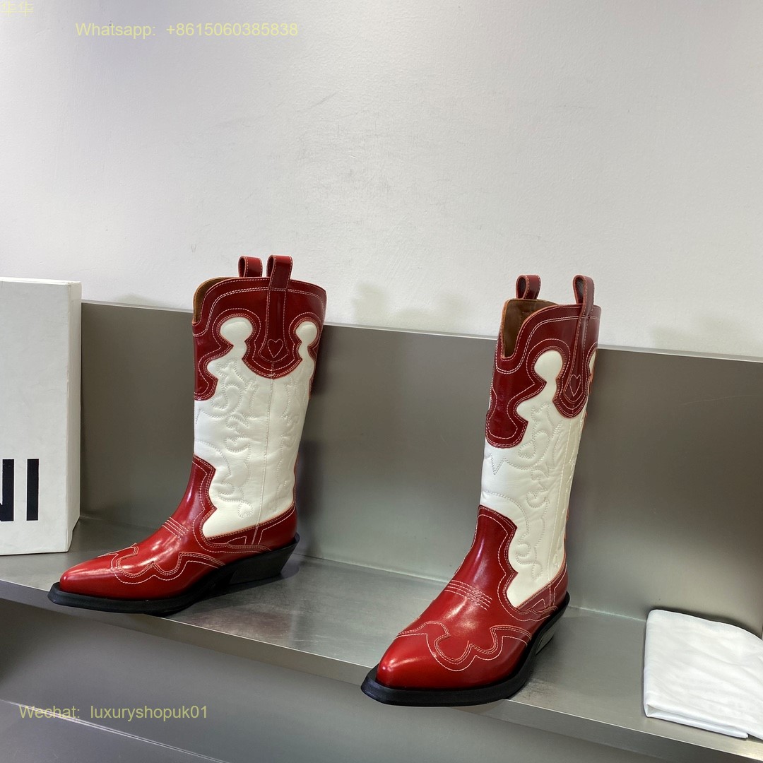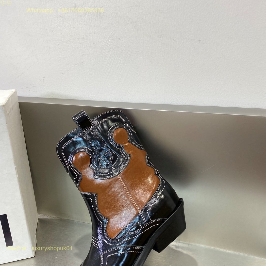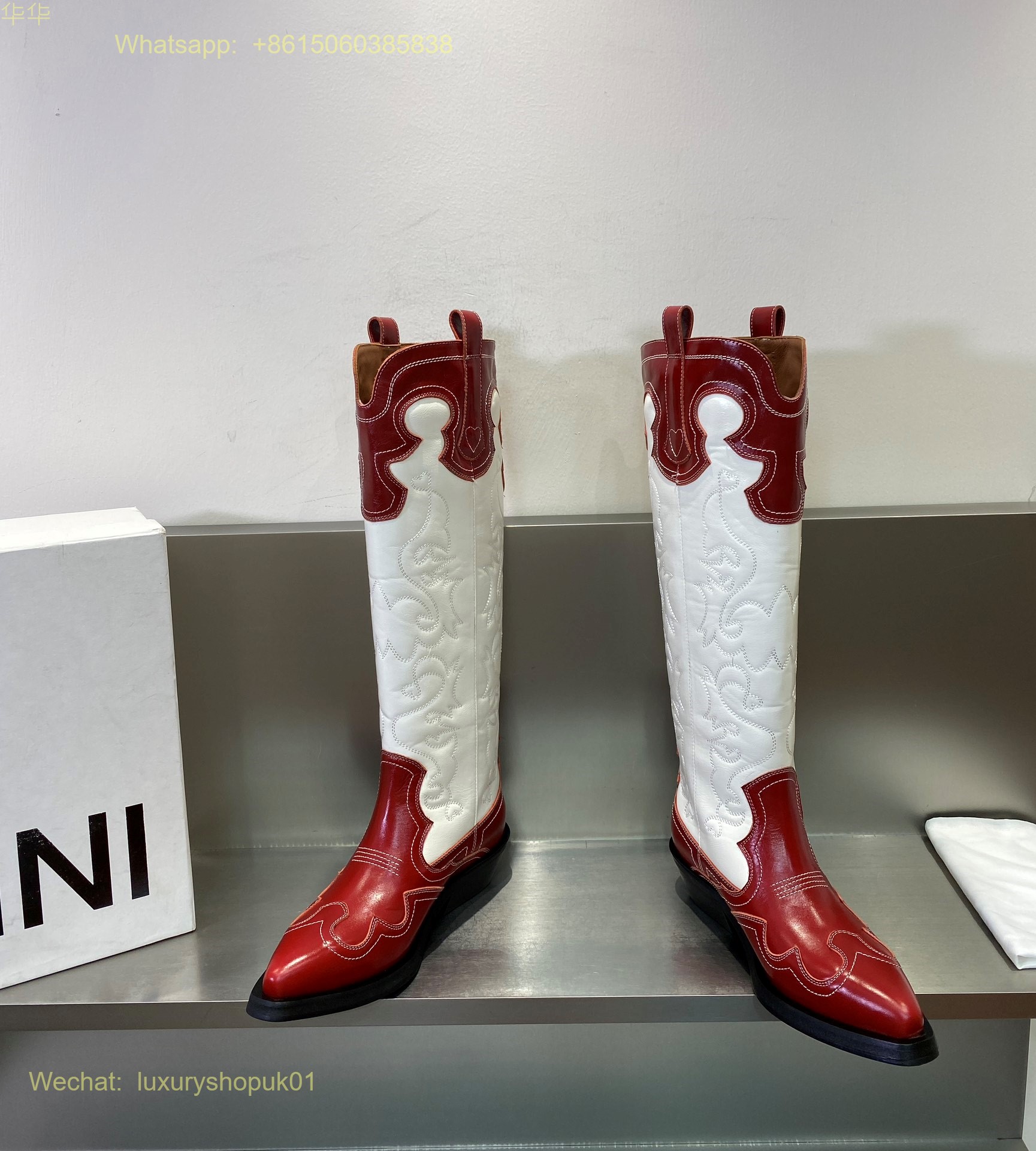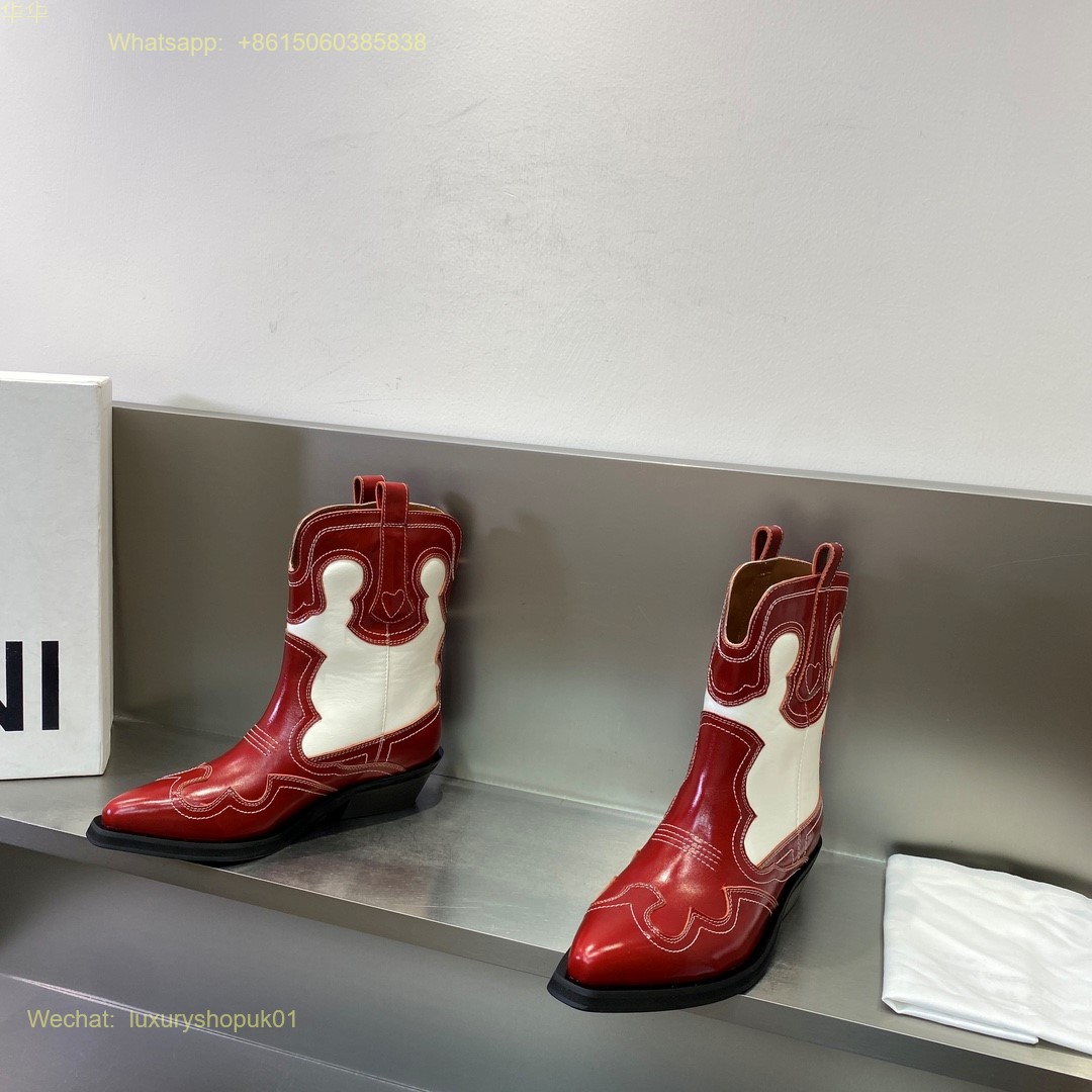 GANNI Leather cowboy boots pointed toe Women Shoes