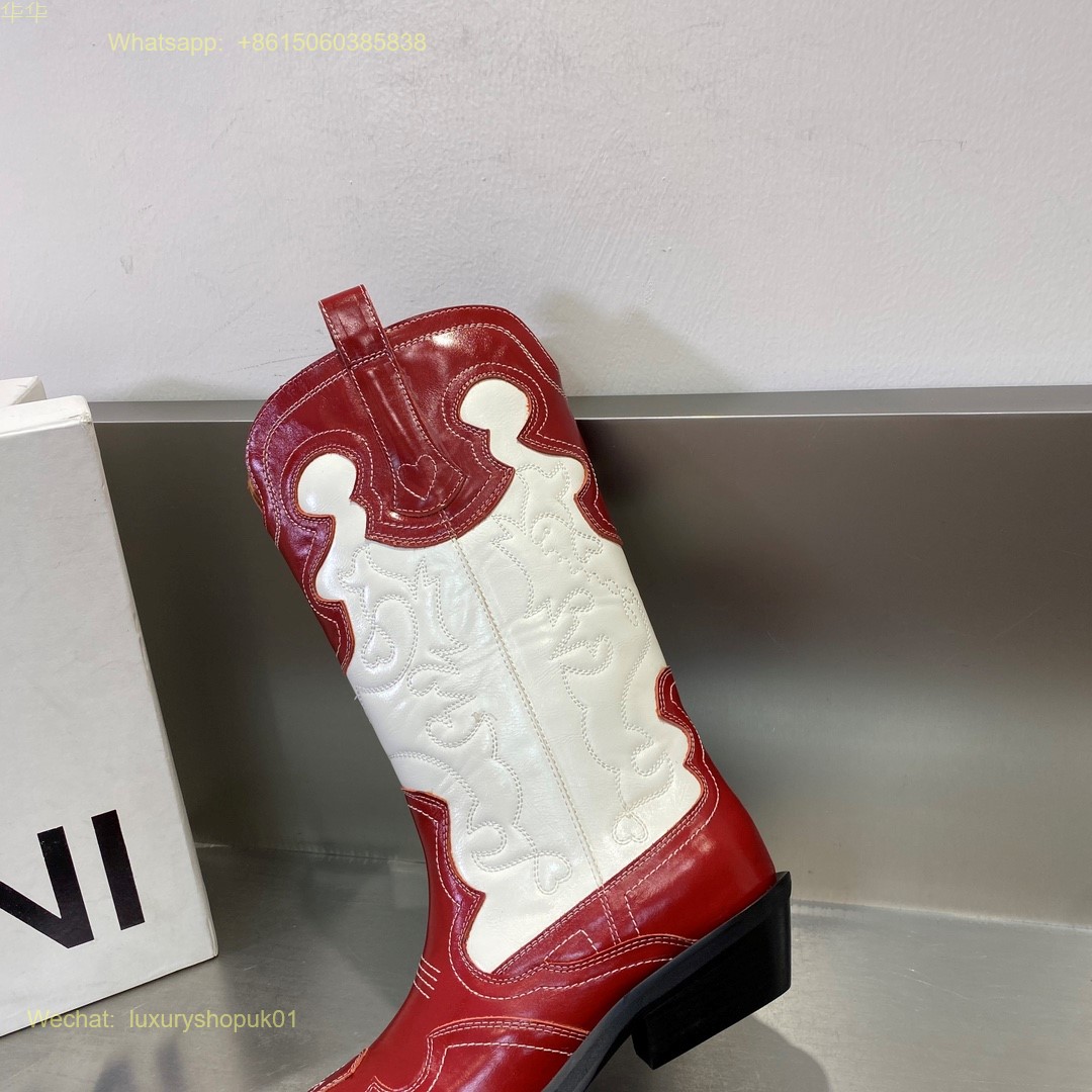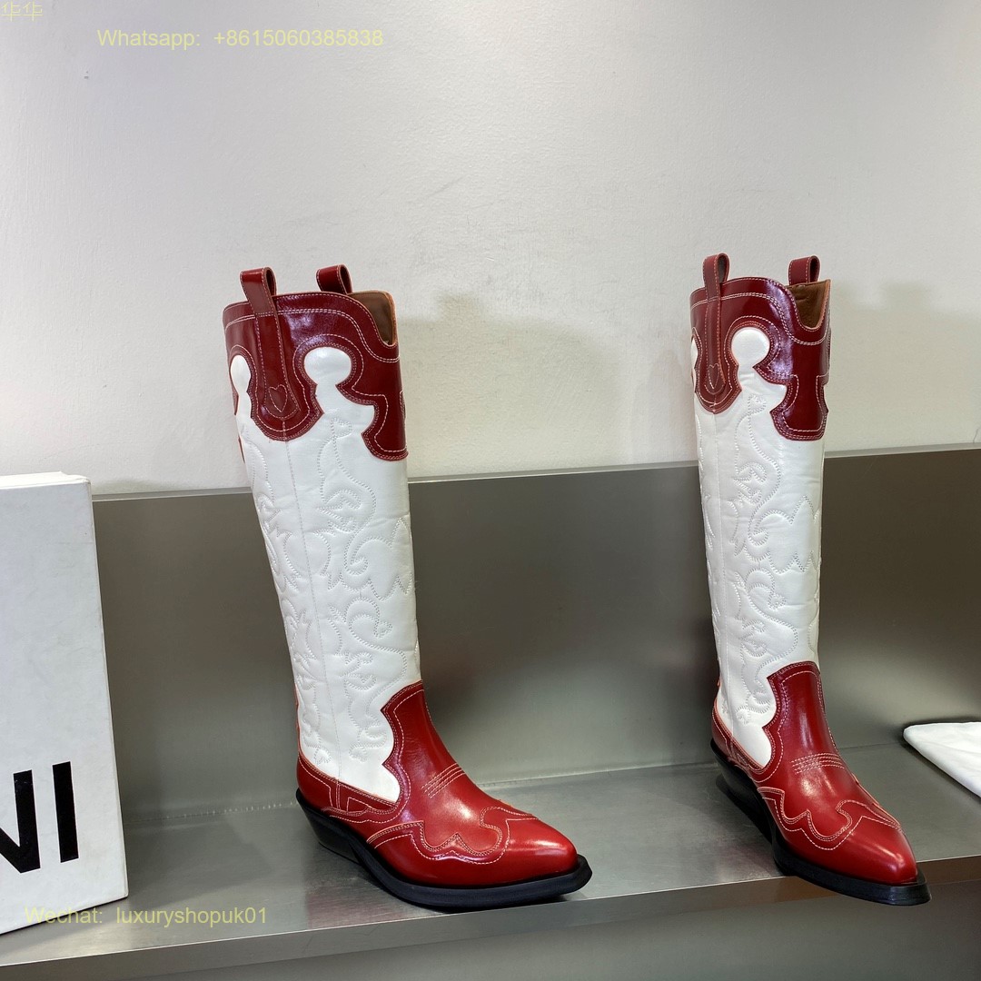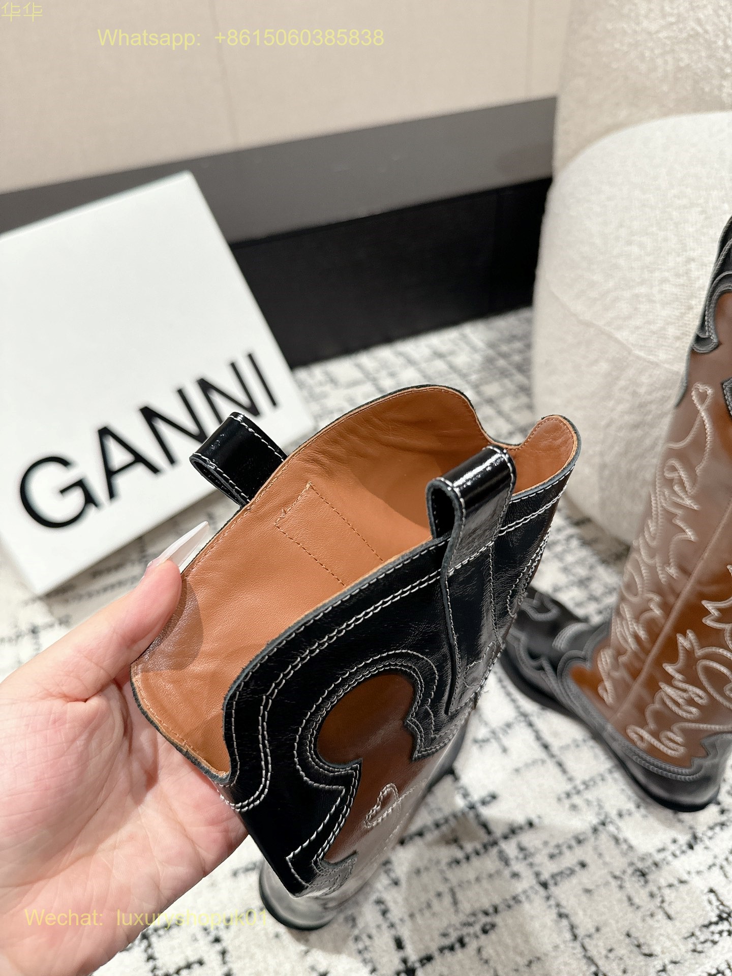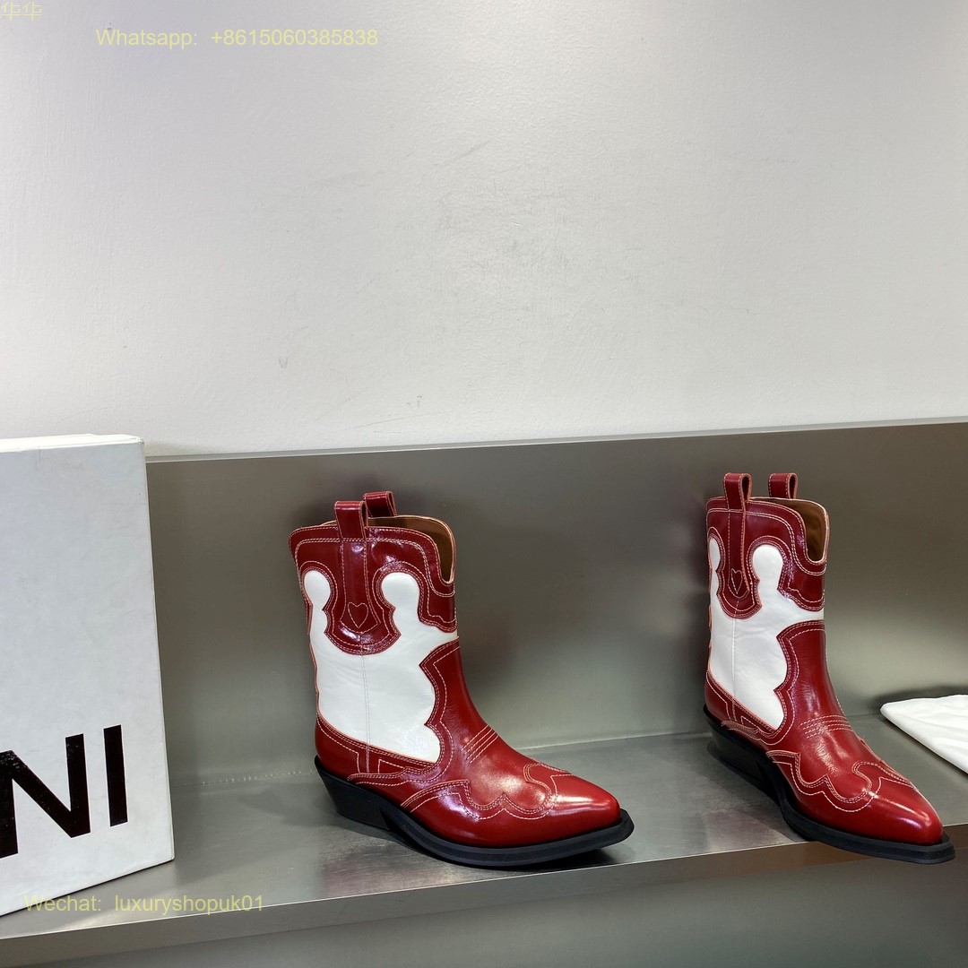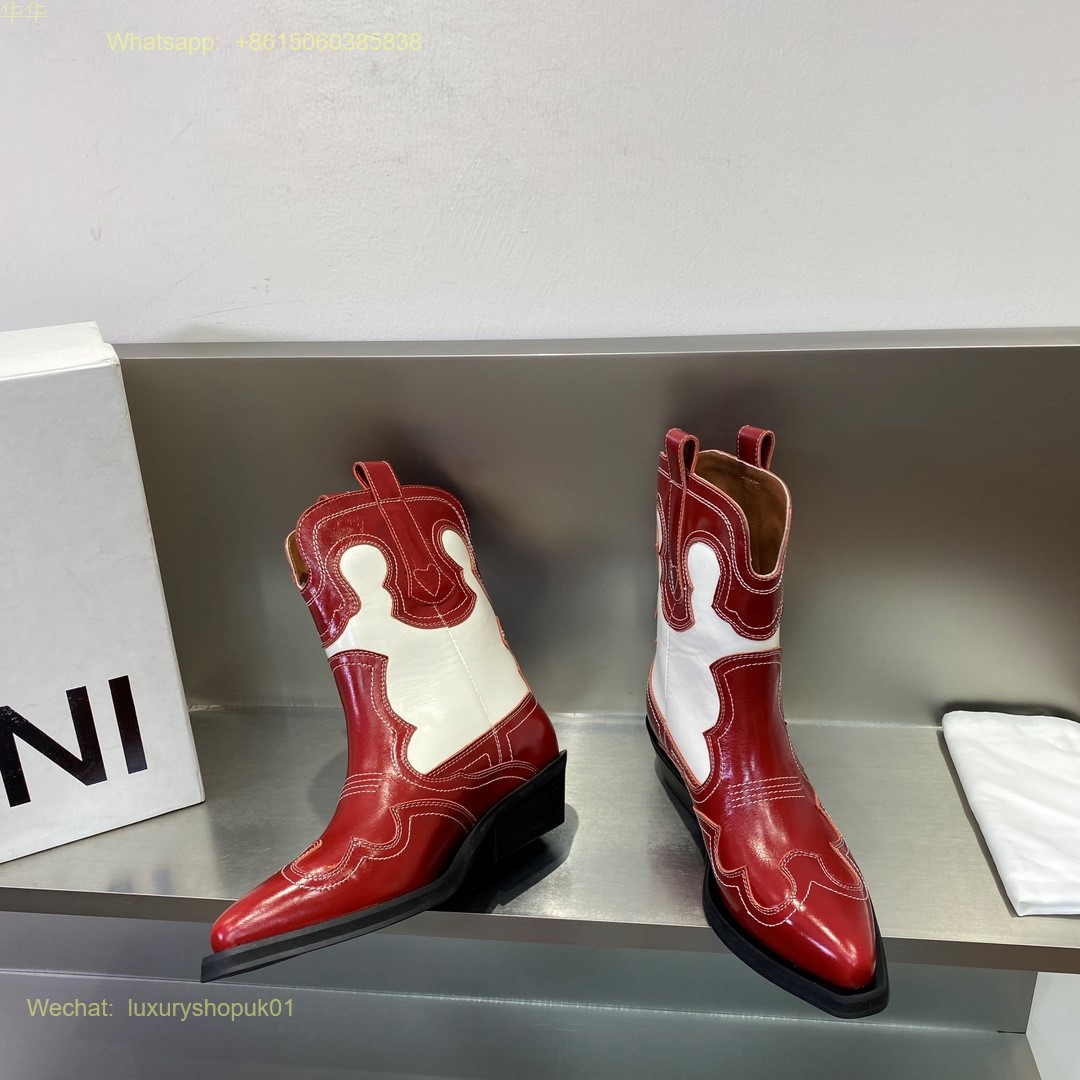 GANNI Leather cowboy boots pointed toe Women Shoes