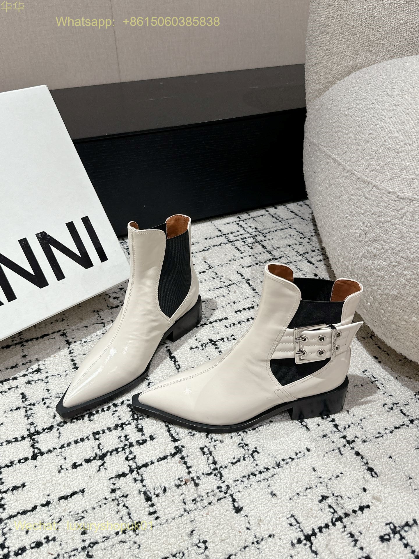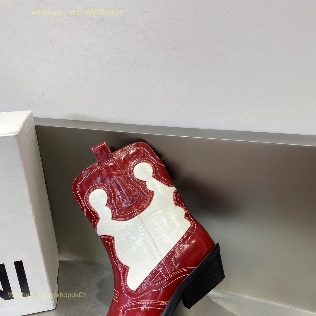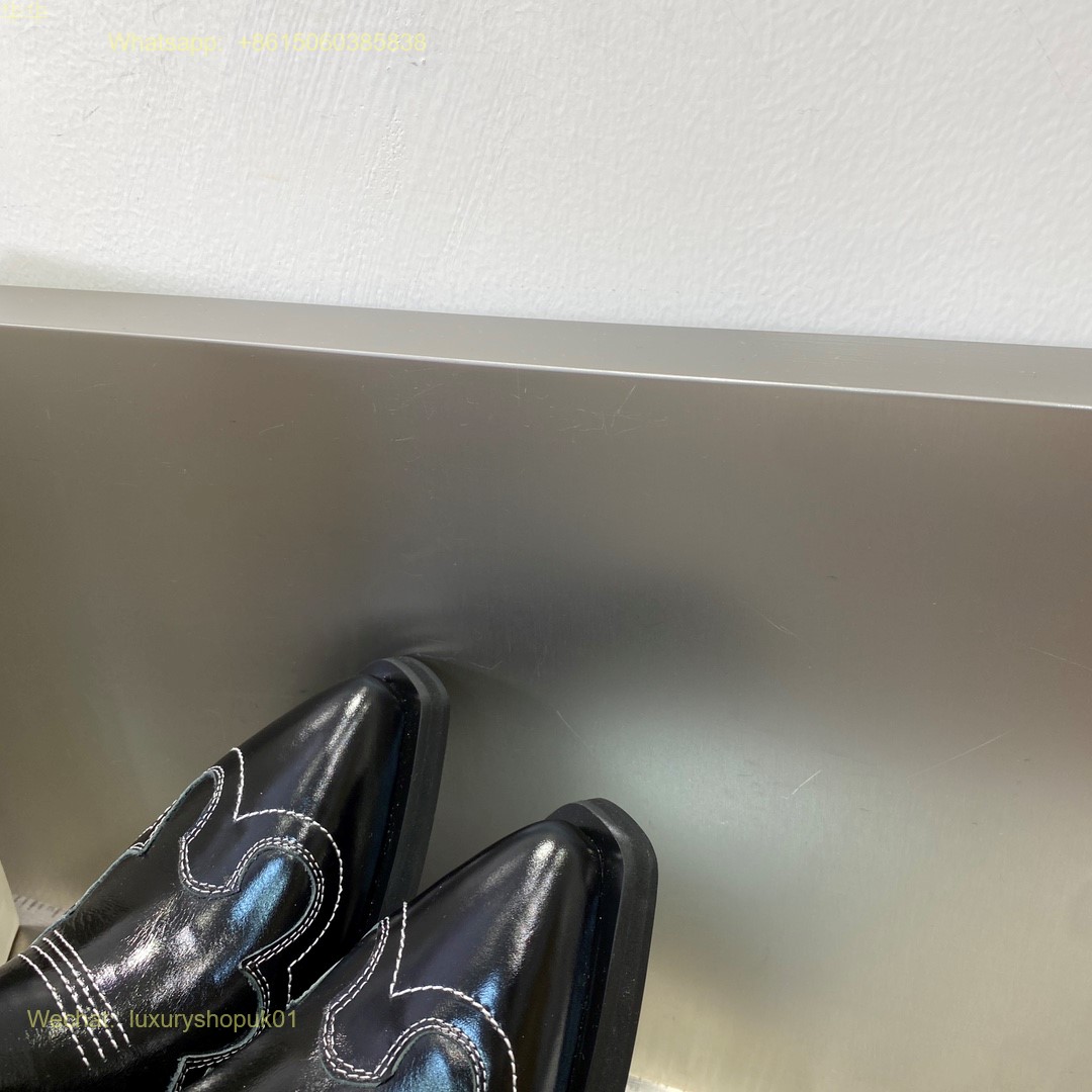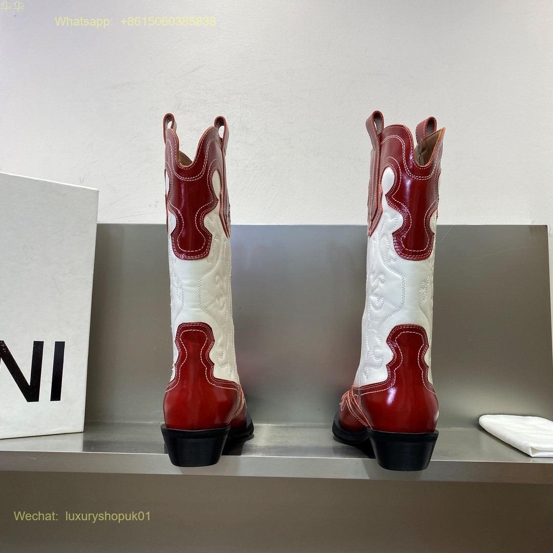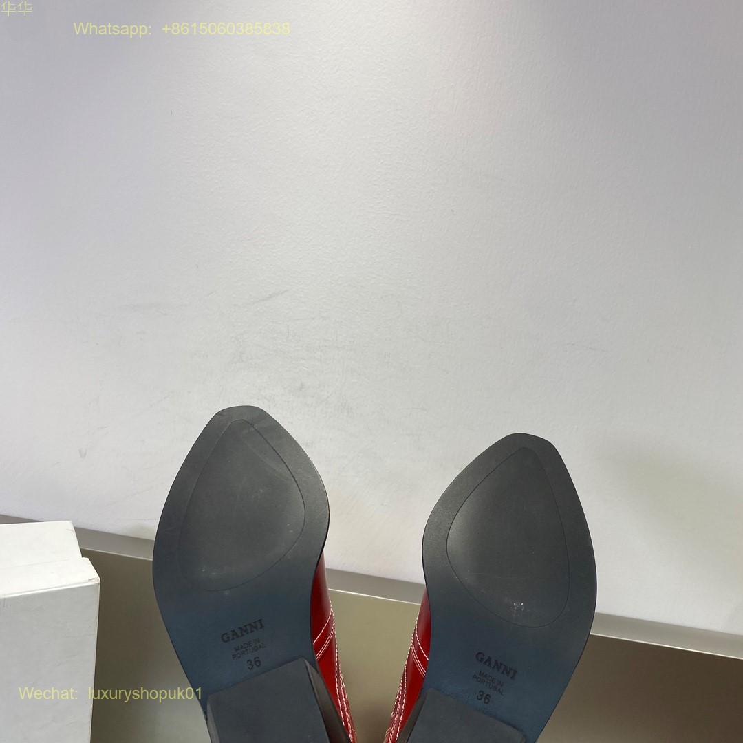 GANNI Leather cowboy boots pointed toe Women Shoes
