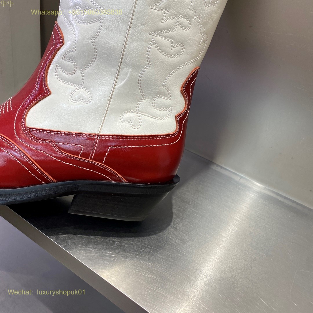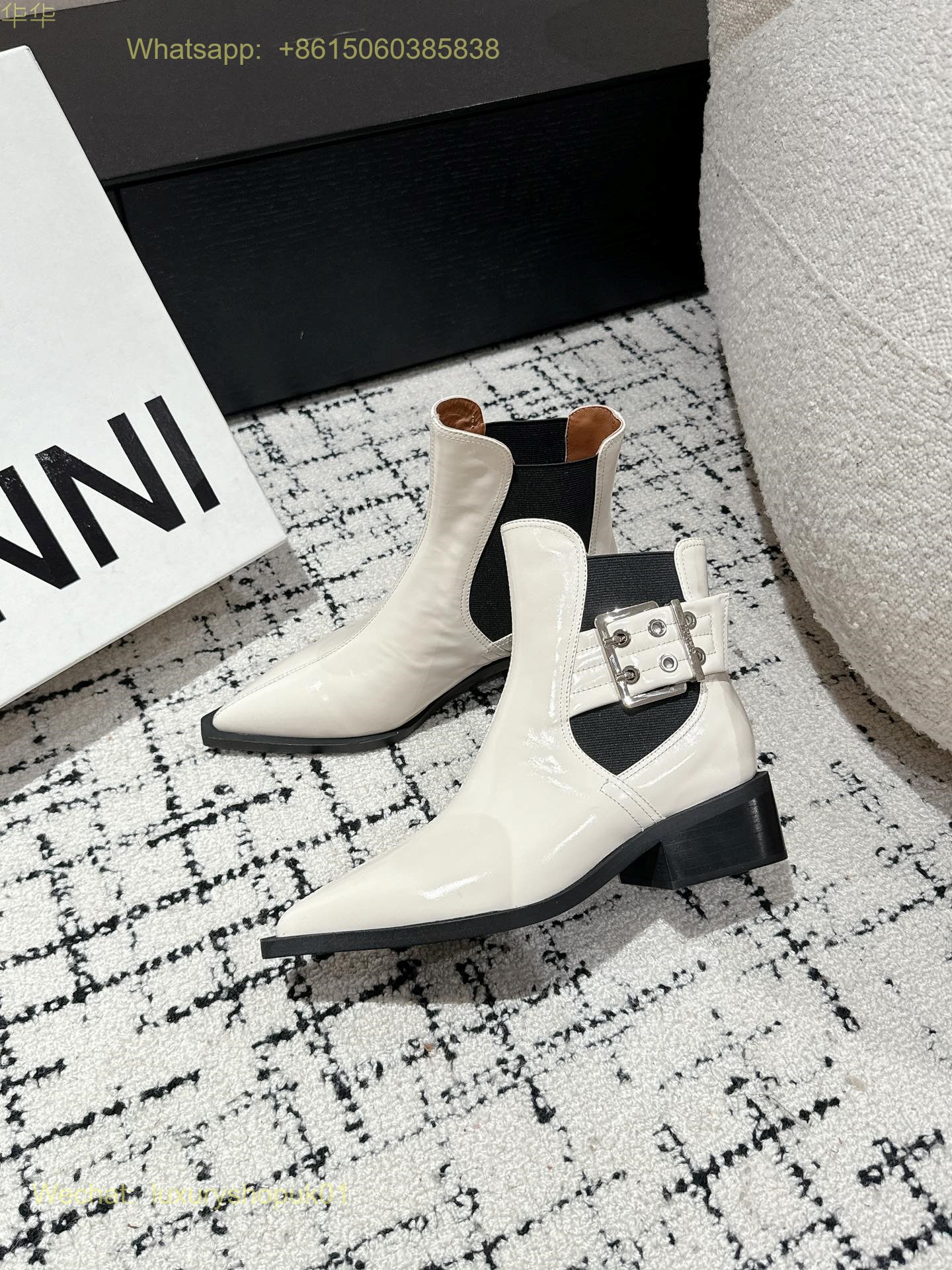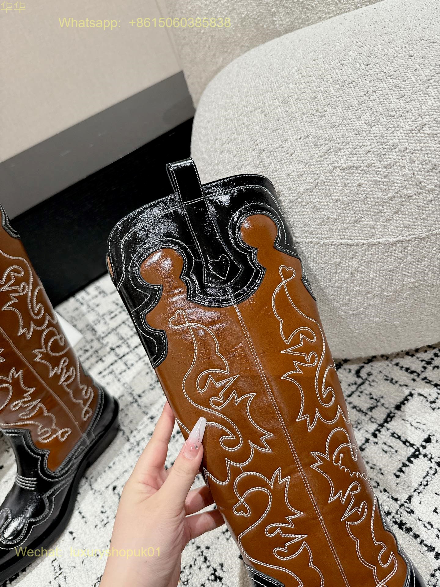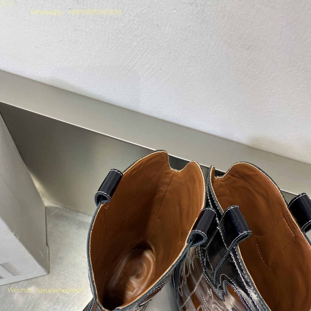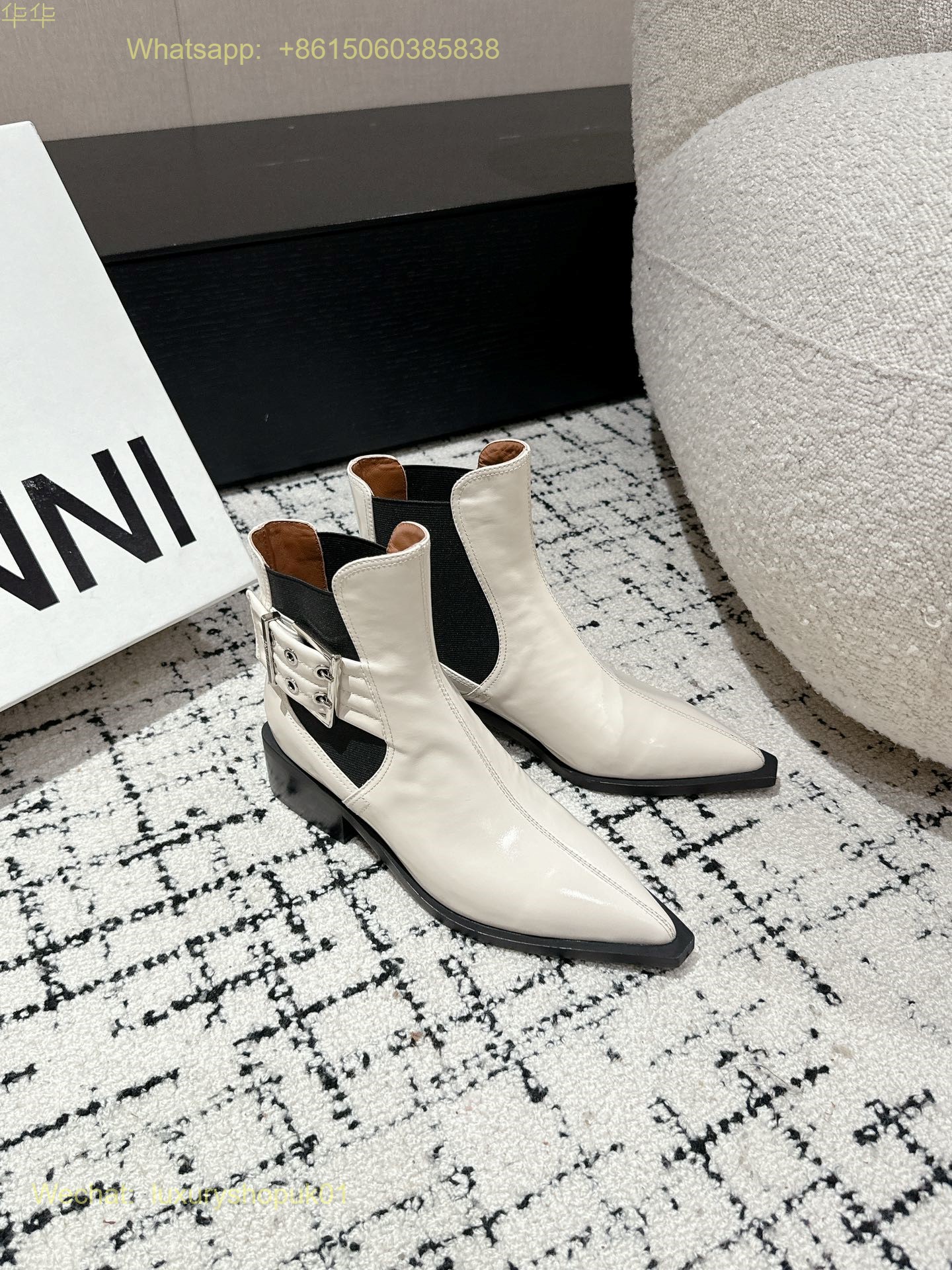 GANNI Leather cowboy boots pointed toe Women Shoes