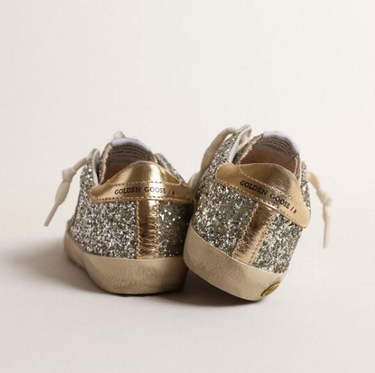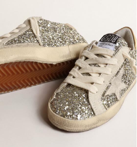 Kids Golden Goose GGDB Sneaker children youth Boy Girl Shoes Super-Star Young in glitter with a suede star and gold heel tab