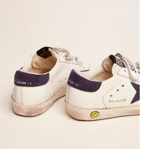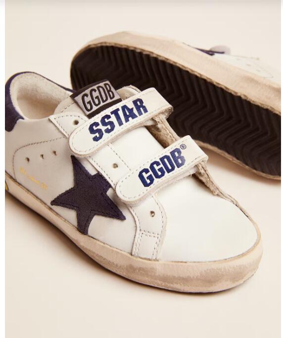 Kids Golden Goose GGDB Sneaker children youth Boy Girl Shoes Old School Young in white leather with blue suede star and heel tab