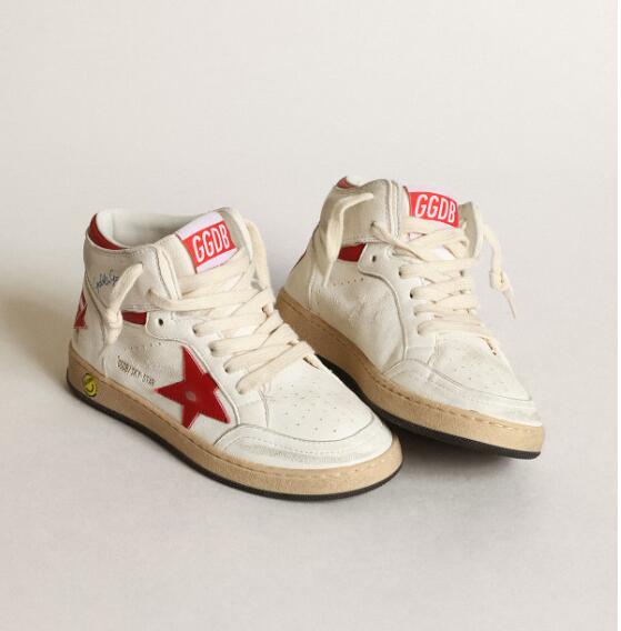 Kids Golden Goose GGDB Sneaker children youth Boy Girl Shoes Young Sky-Star in white nappa with red star and heel tab