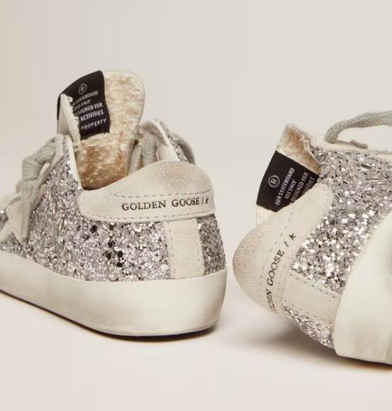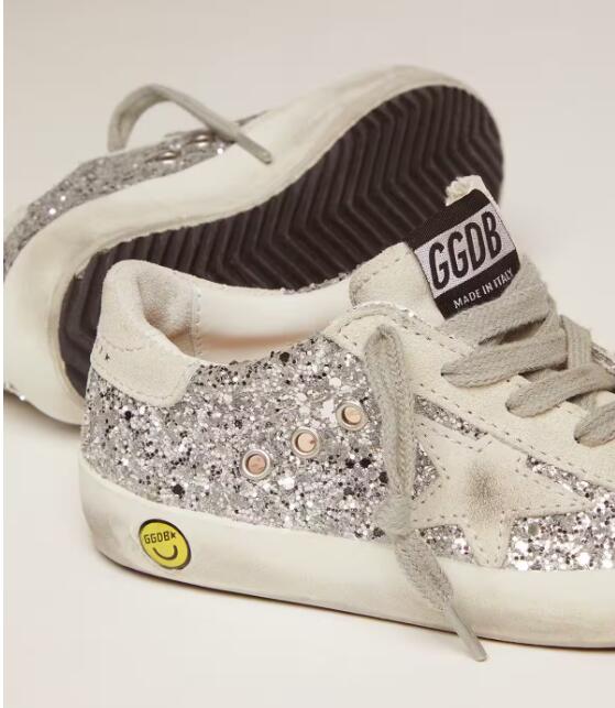 Kids Golden Goose GGDB Sneaker children youth Boy Girl Shoes Junior Super-Star with silver glitter and suede details