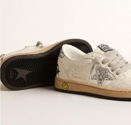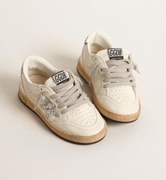 Kids Golden Goose GGDB Sneaker children youth Boy Girl Shoes Ball Star Junior in nappa with silver glitter star and heel tab