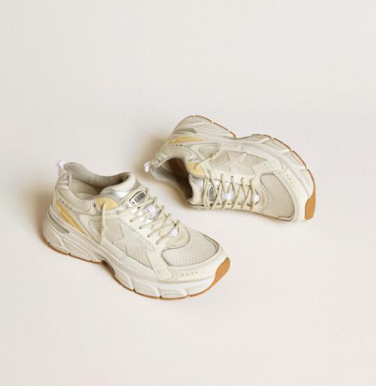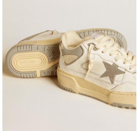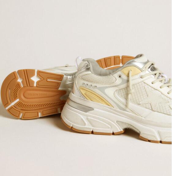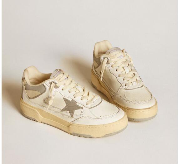 Golden Goose GGDB Mens Sneaker Shoes Lightstar in white leather and mesh with worn-white star