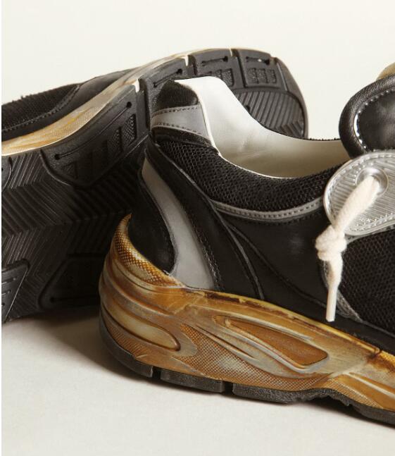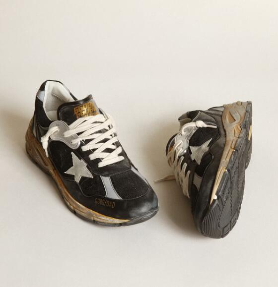 Golden Goose GGDB Mens Sneaker Shoes Dad-Star in black mesh and nappa with ice-colored star