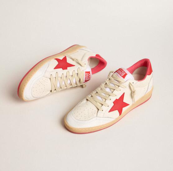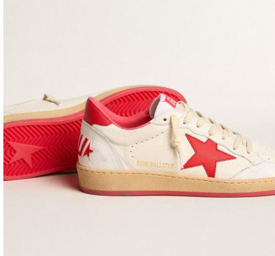 Golden Goose GGDB Mens Sneaker Shoes Ball Star Wishes in white leather with a red star and heel tab