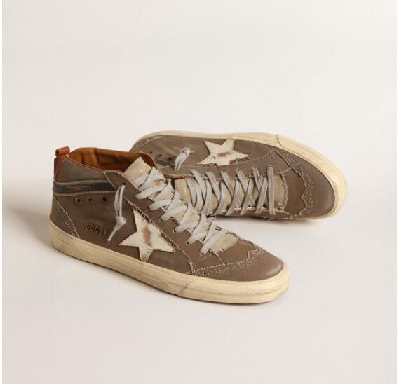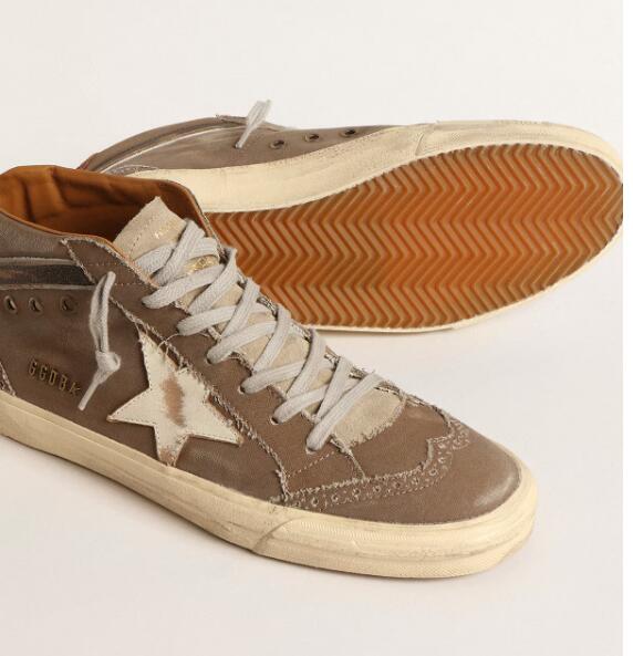 Golden Goose GGDB Mens Sneaker Shoes Mid Star in green canvas with leather star and black flash