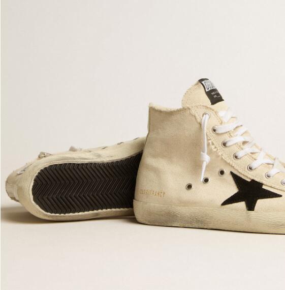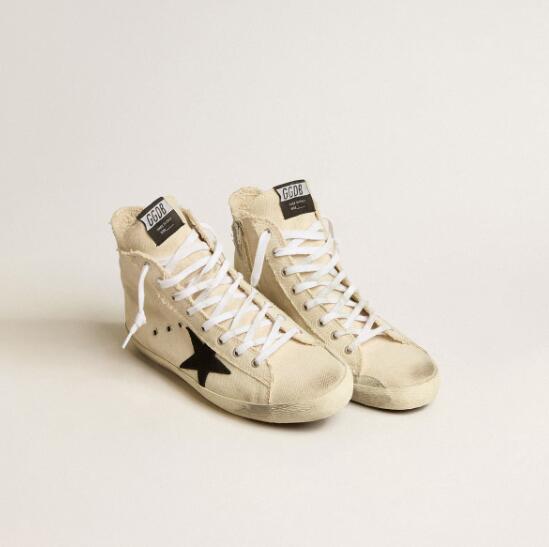 Golden Goose GGDB Mens Sneaker Shoes Francy Penstar in canvas with black suede star and leather heel tab