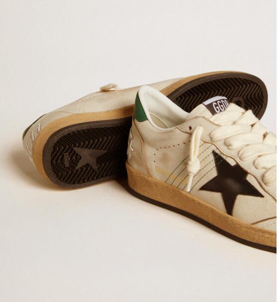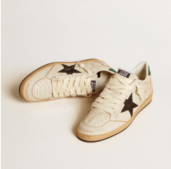 Golden Goose GGDB Mens Sneaker Shoes Ball Star with black leather star and green leather heel tab