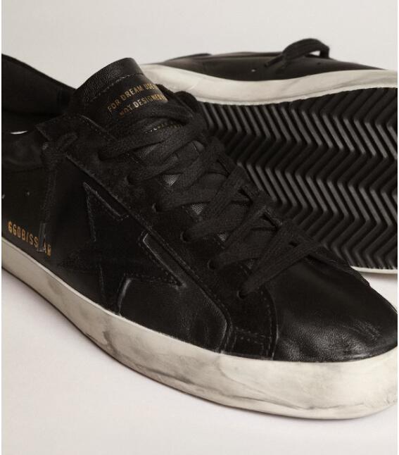 Golden Goose GGDB Mens Sneaker Shoes Super-Star in black nappa with black suede star and heel tab