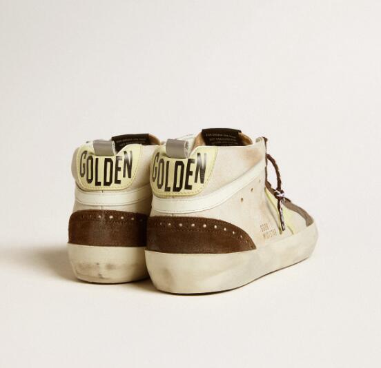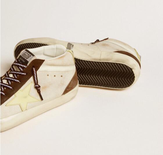 Golden Goose GGDB Mens Sneaker Shoes Mid Star in beige glitter with yellow suede star and cotton flash