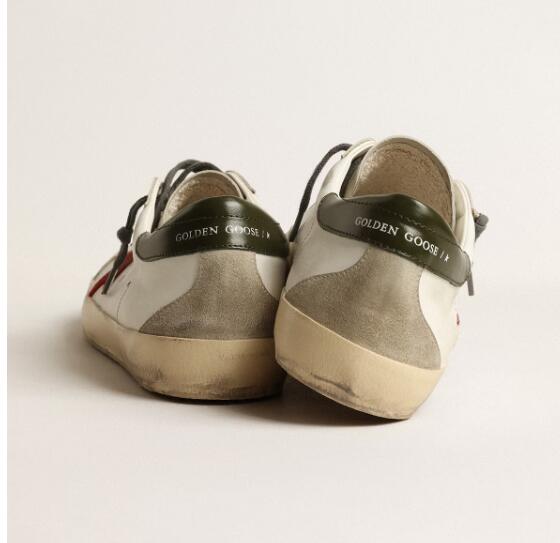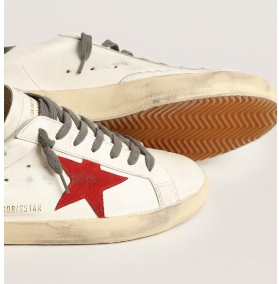 Golden Goose GGDB Mens Sneaker Shoes Super-Star with red suede star and green leather heel tab