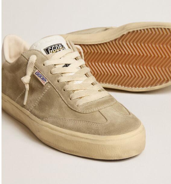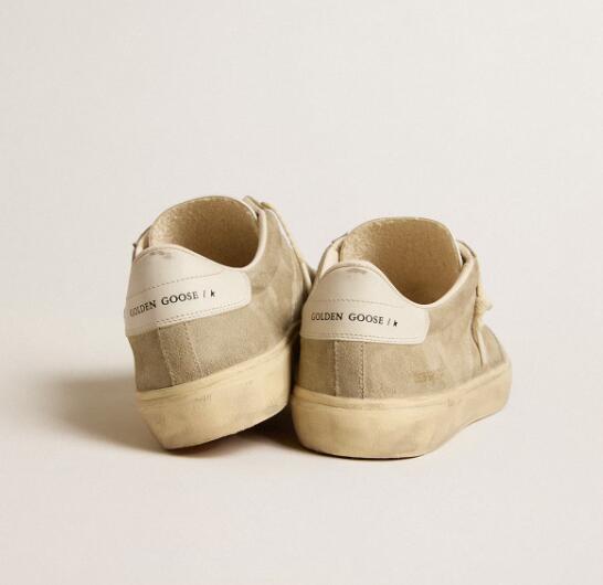 Golden Goose GGDB Mens Sneaker Shoes Soul Star in dove-gray suede with white leather heel tab and tongue