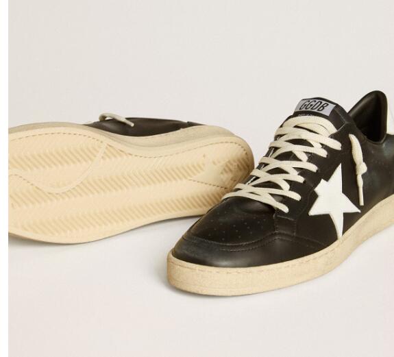Golden Goose GGDB Mens Sneaker Shoes Ball Star in black nappa with white leather star and heel tab