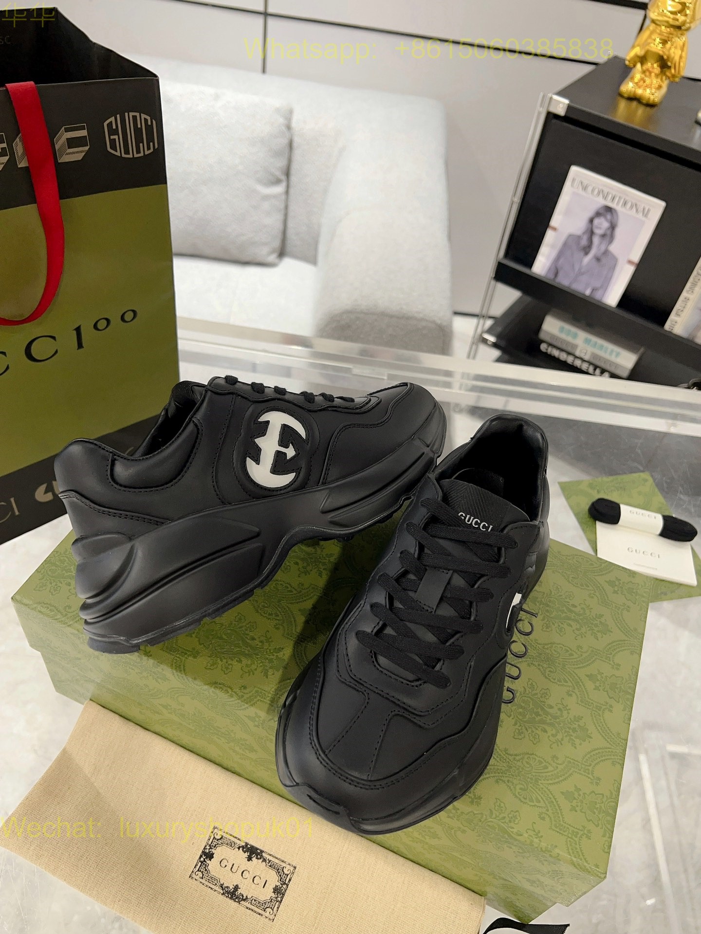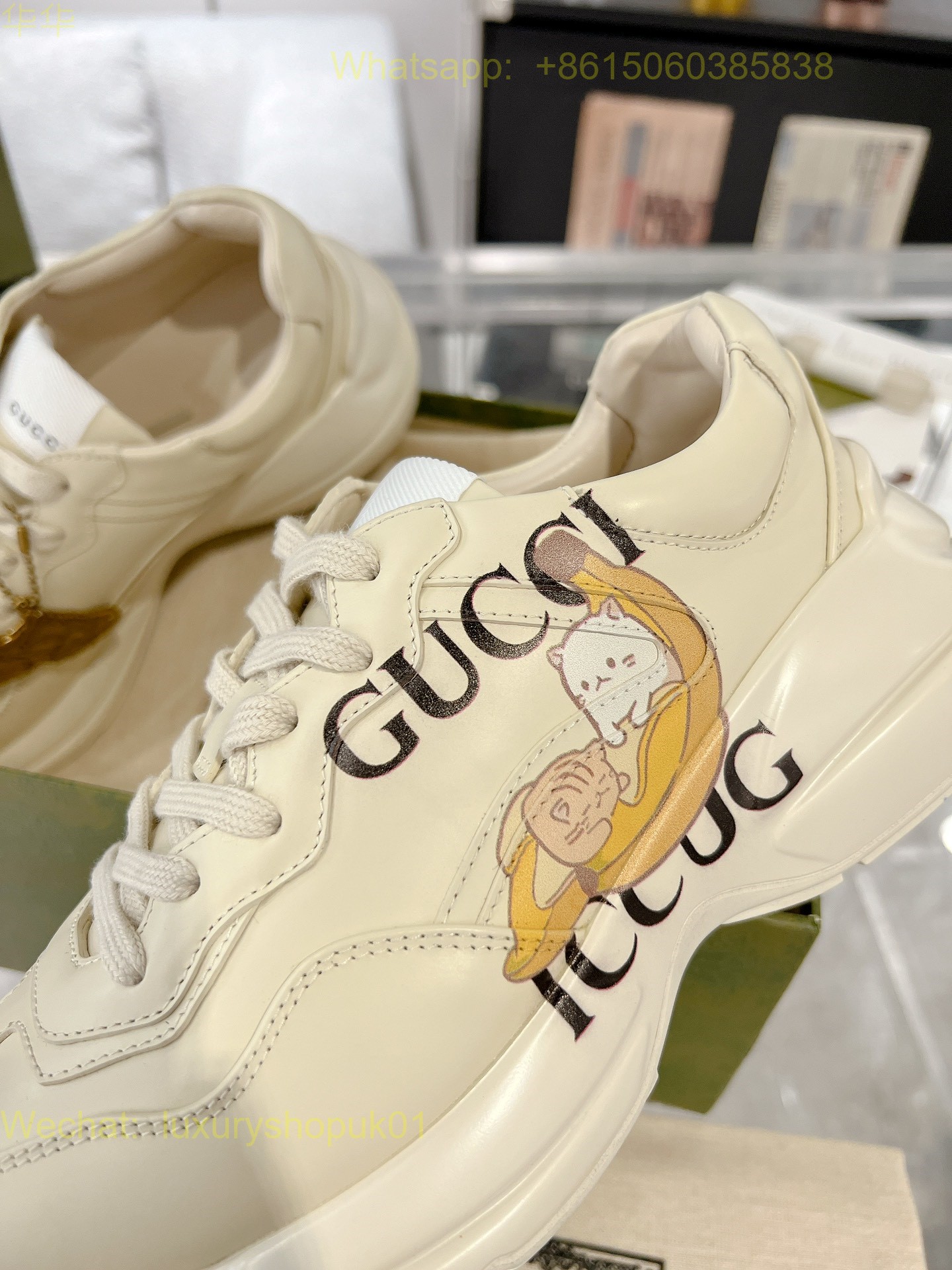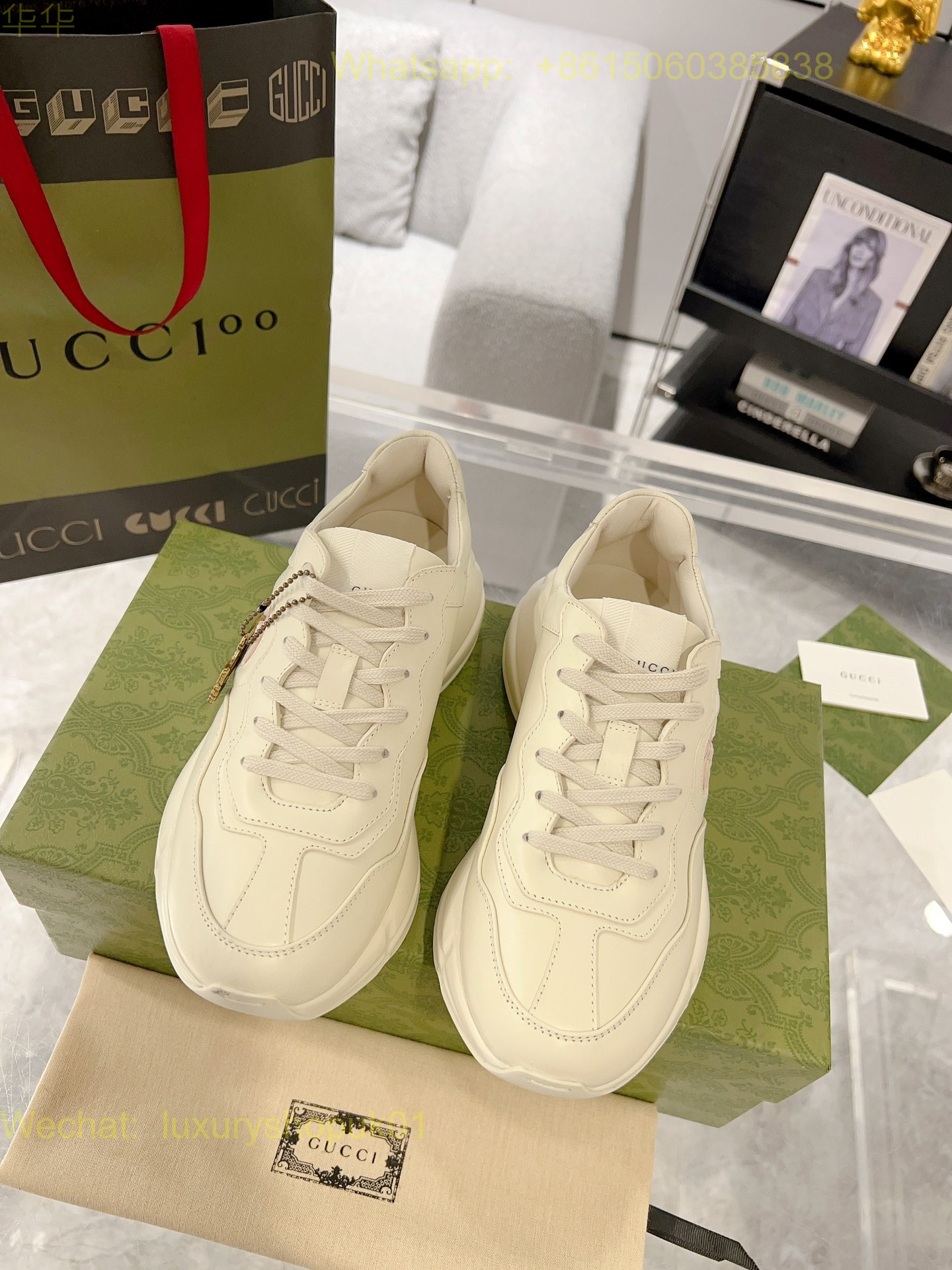 Gucci Rhyton Leather Vintage Sneaker Mens Women Shoes