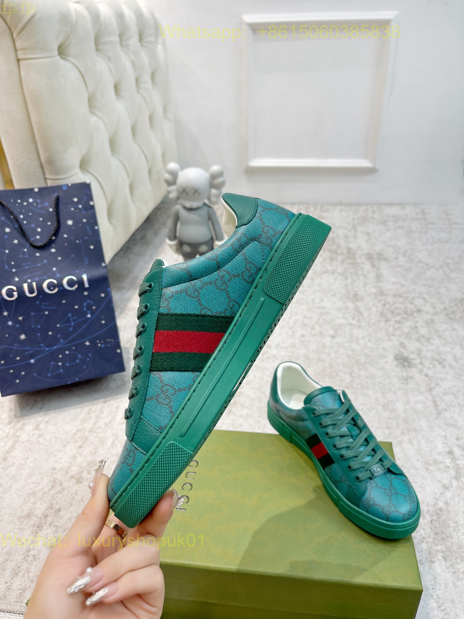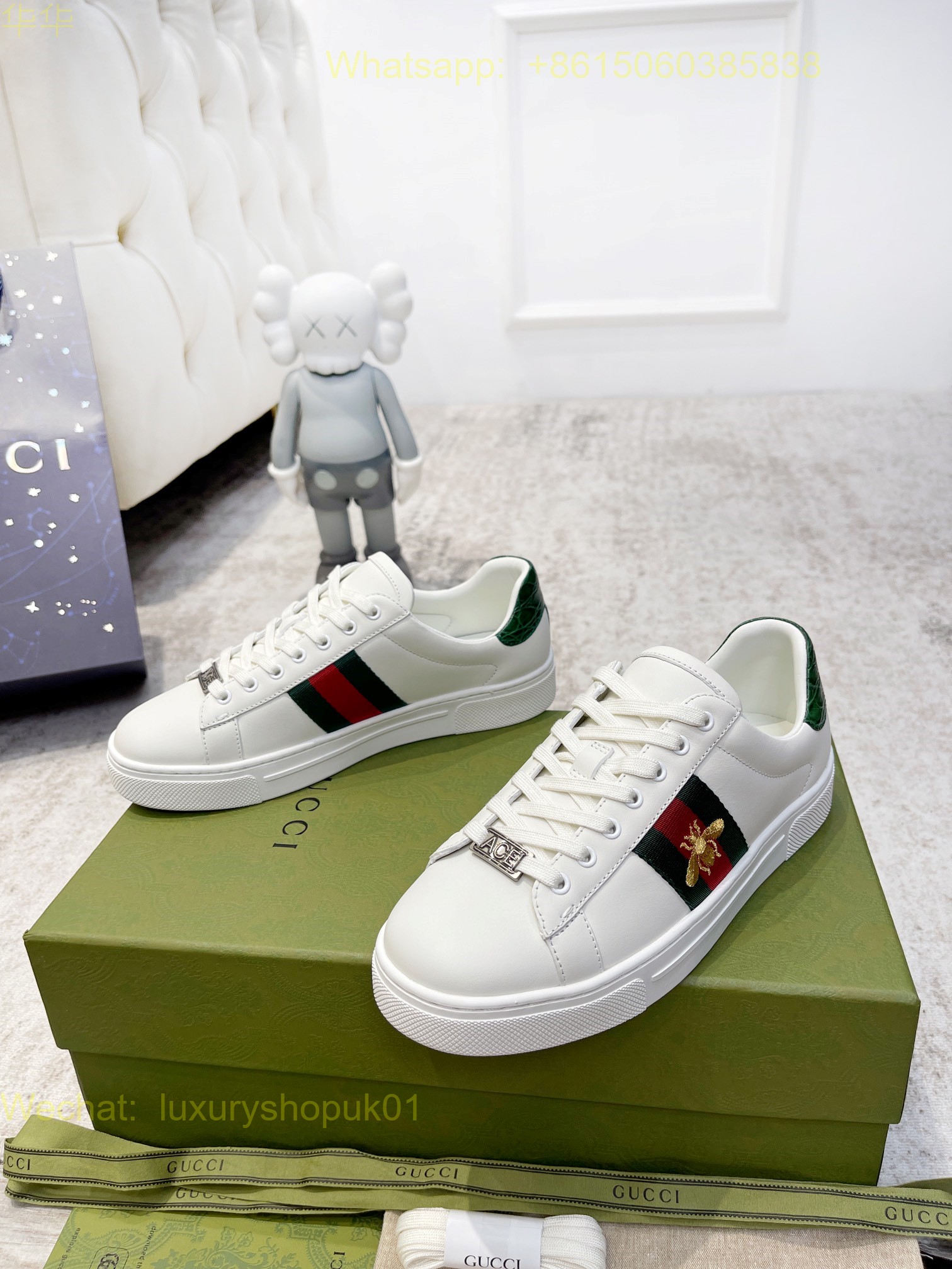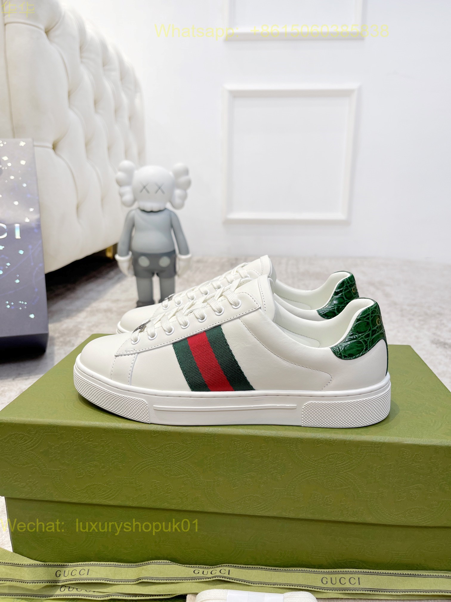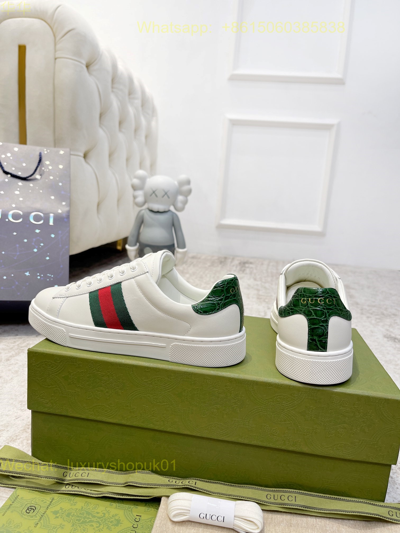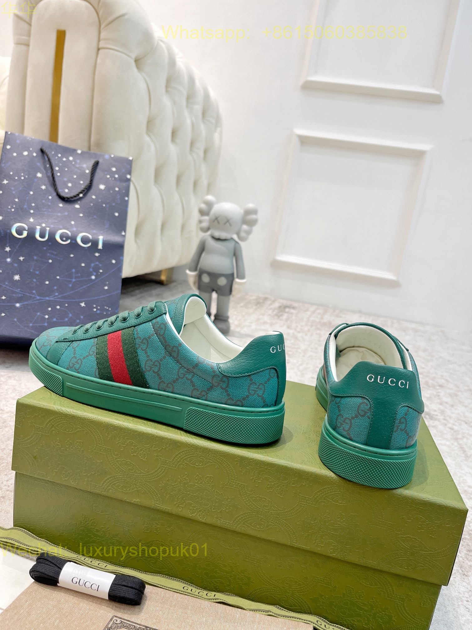 Gucci Web Leather GG Canvas Sneakers Women Mens Shoes