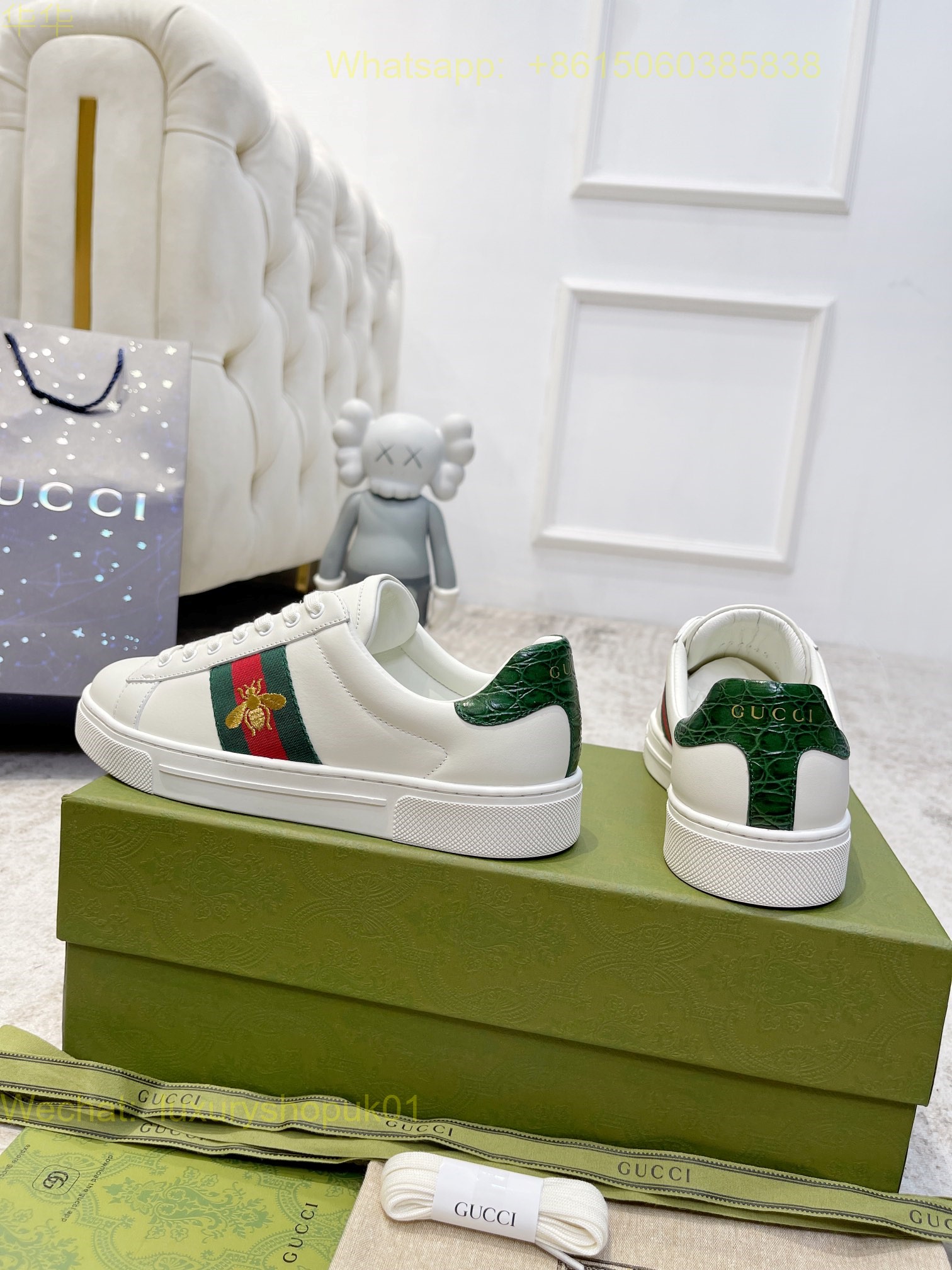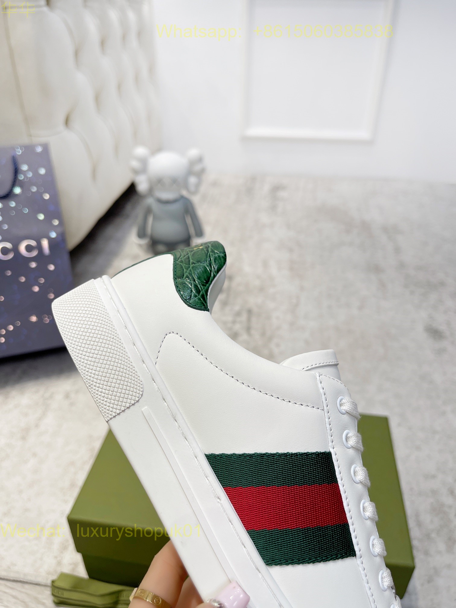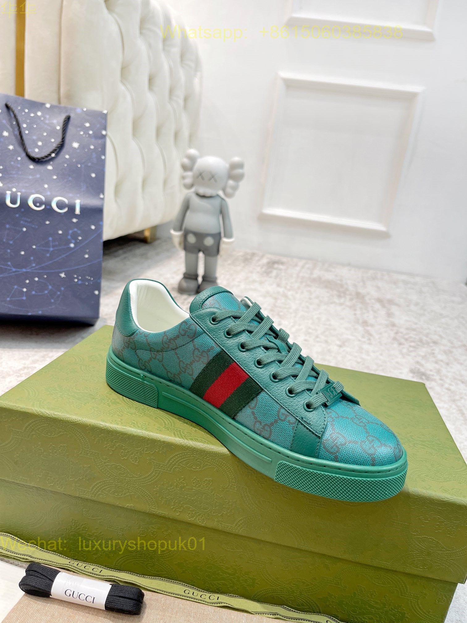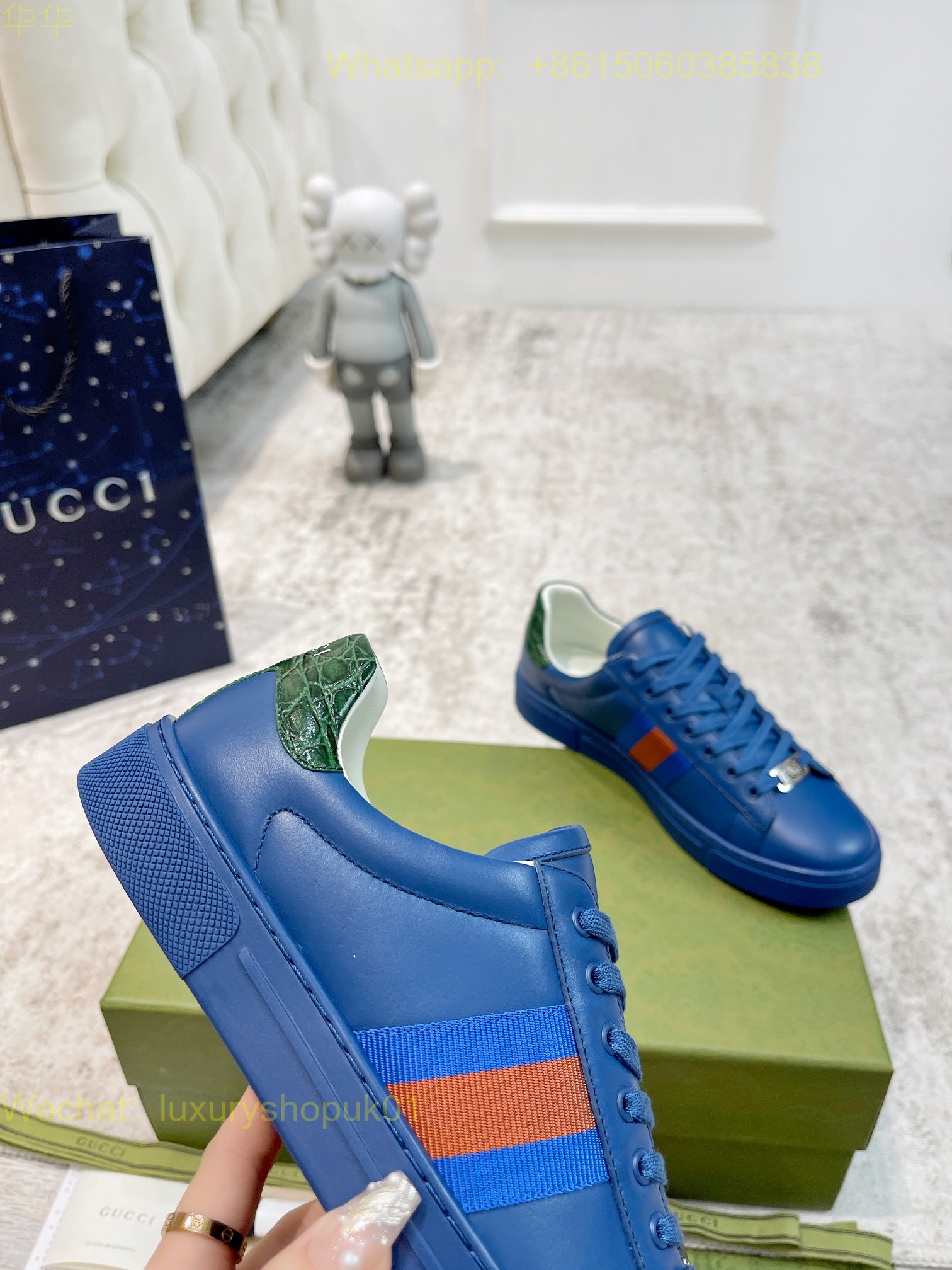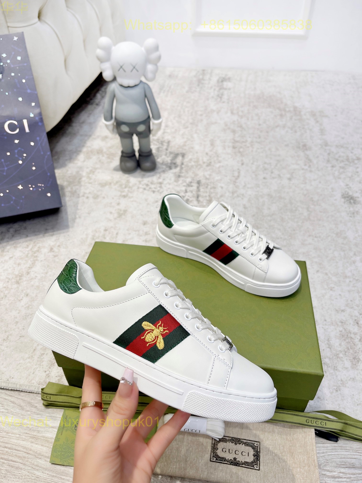 Gucci Web Leather GG Canvas Sneakers Women Mens Shoes