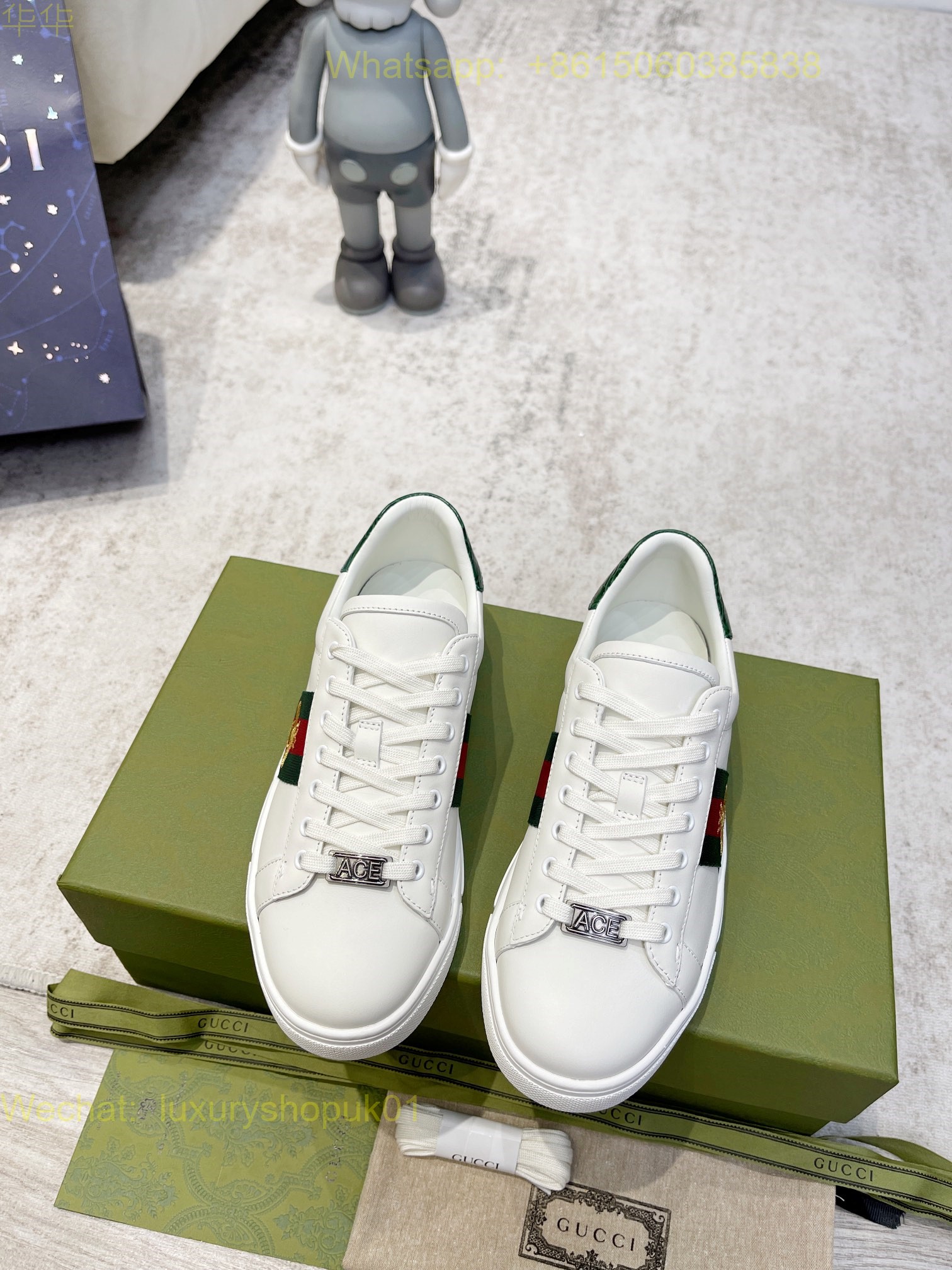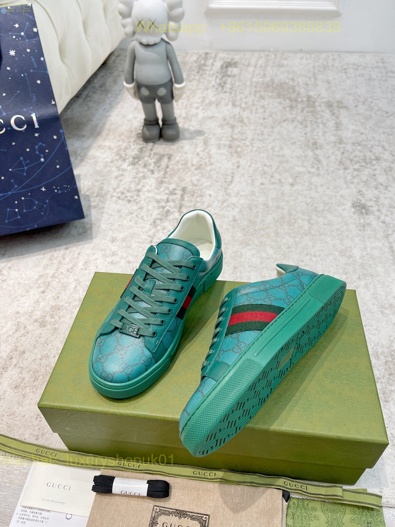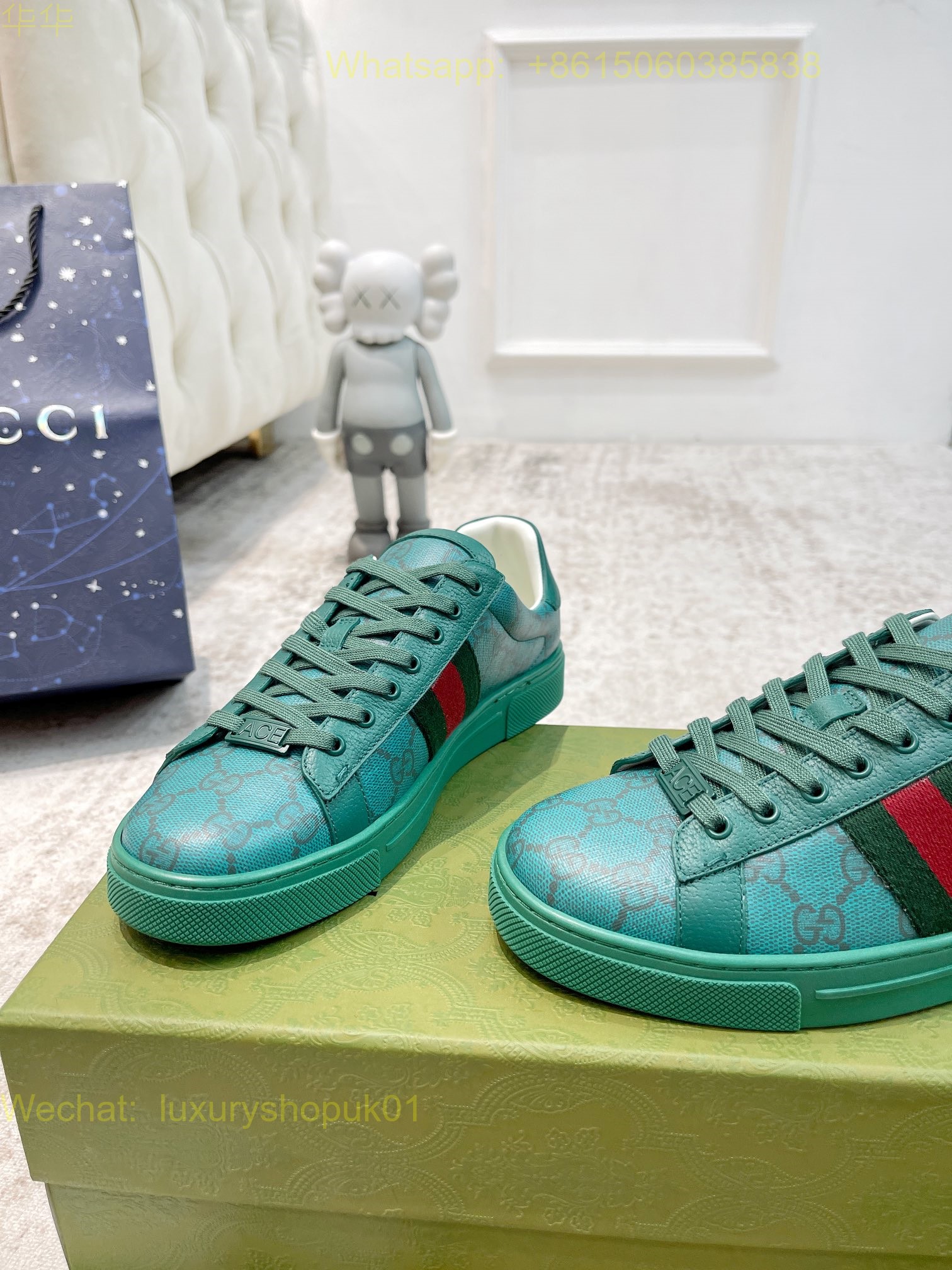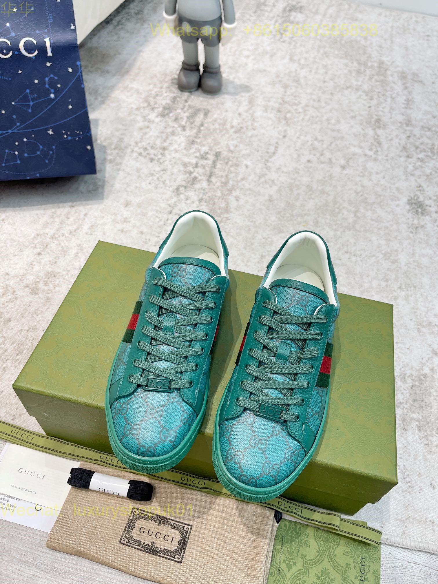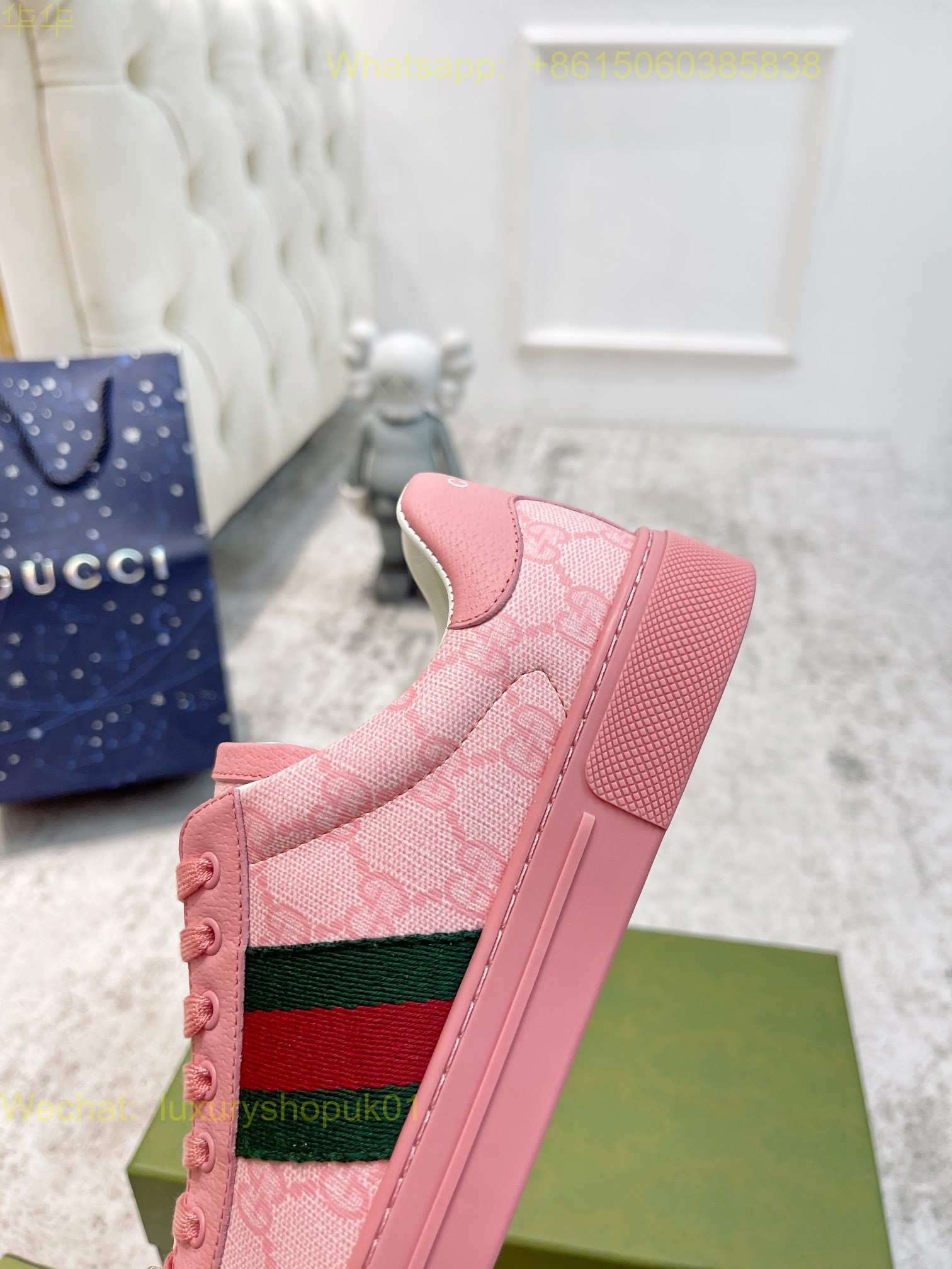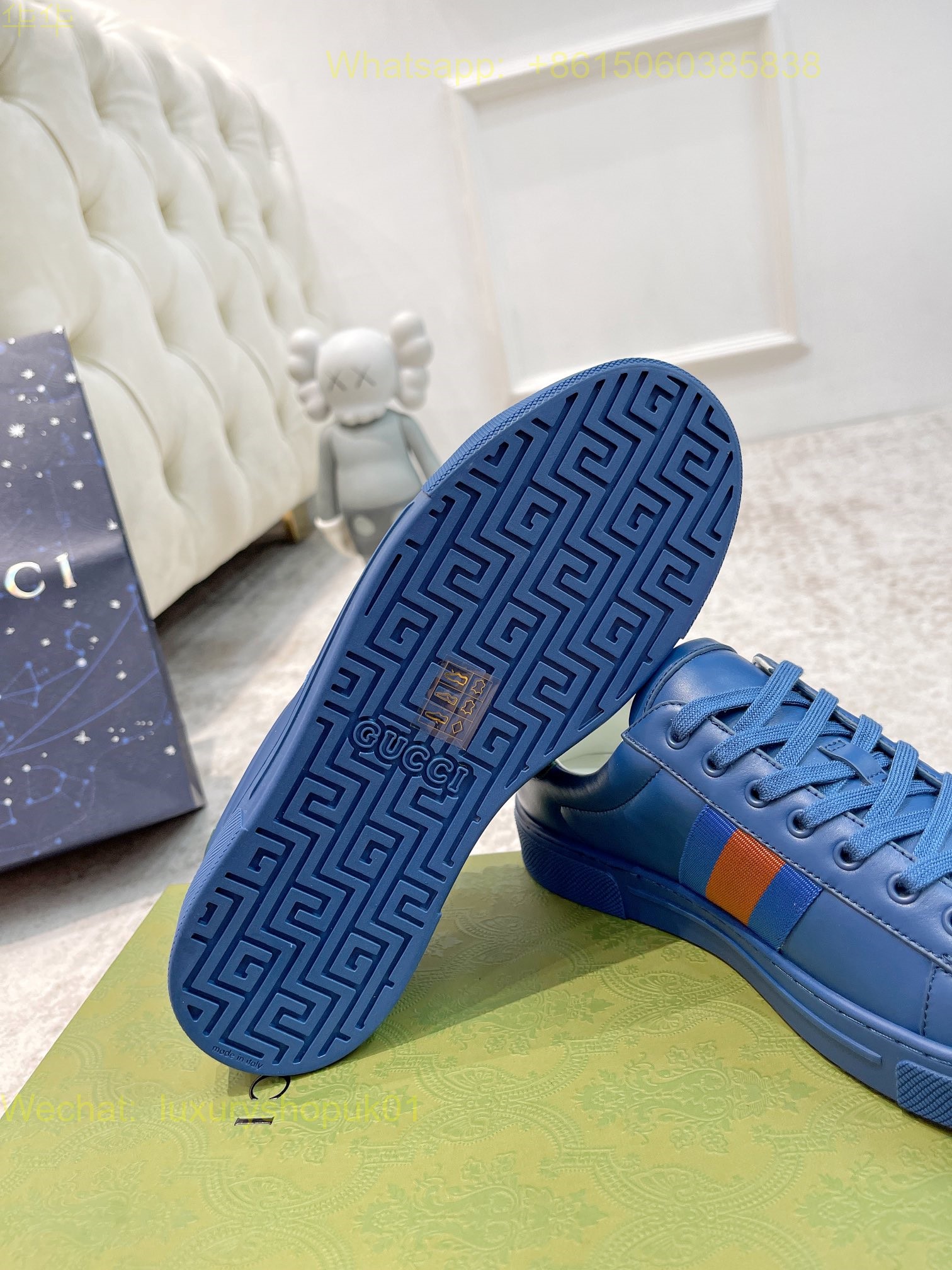 Gucci Web Leather GG Canvas Sneakers Women Mens Shoes