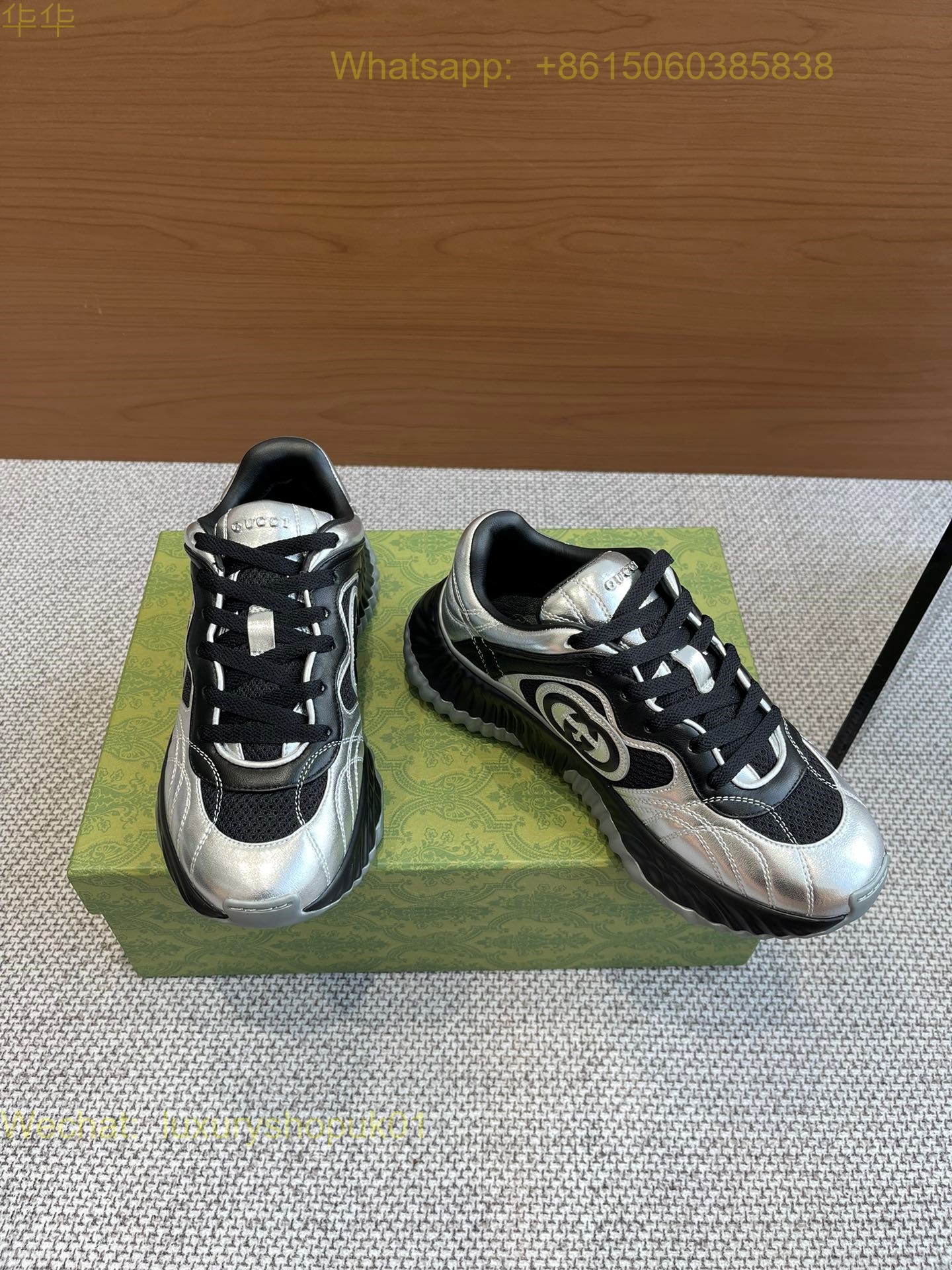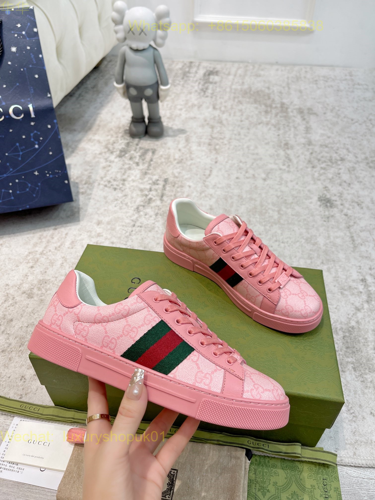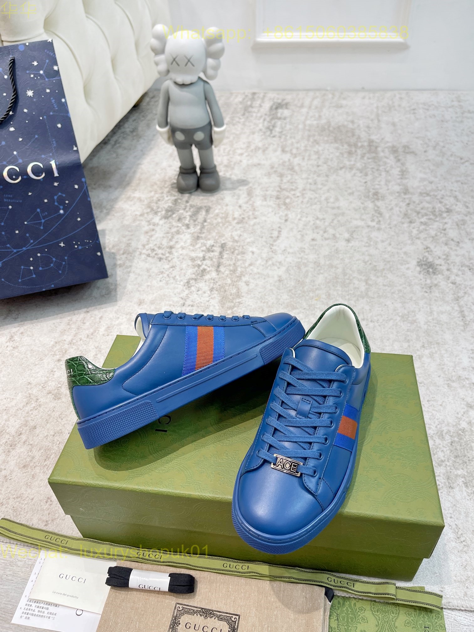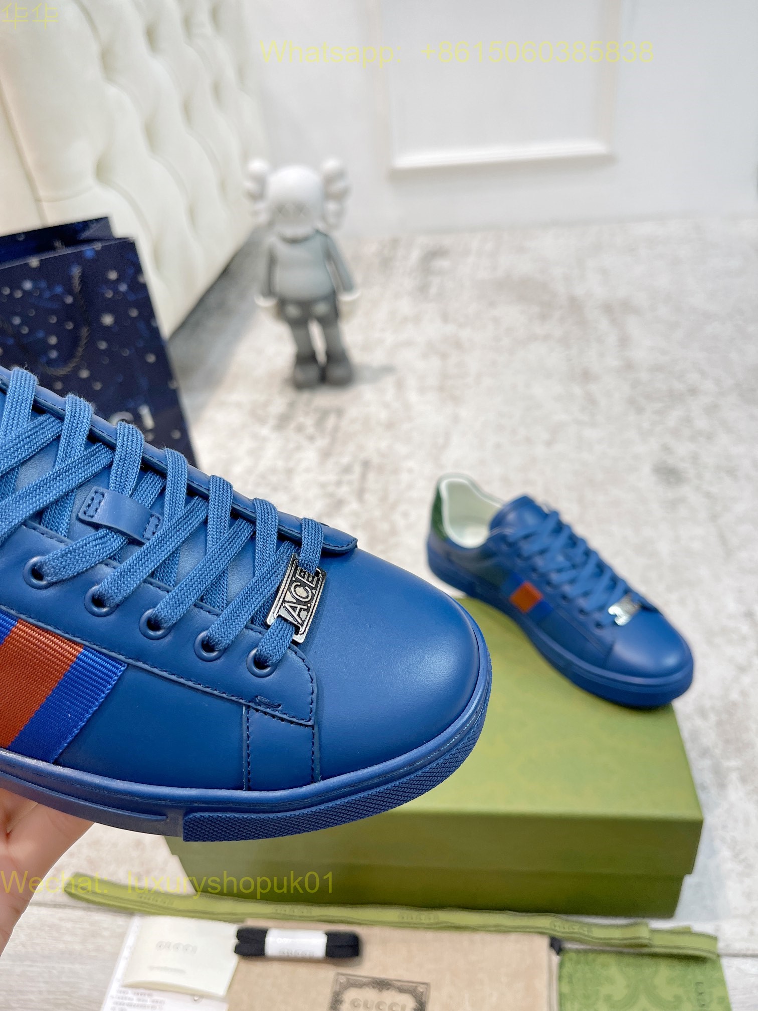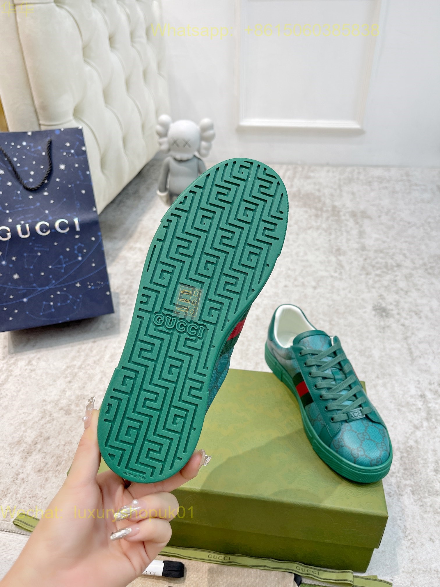 Gucci Web Leather GG Canvas Sneakers Women Mens Shoes